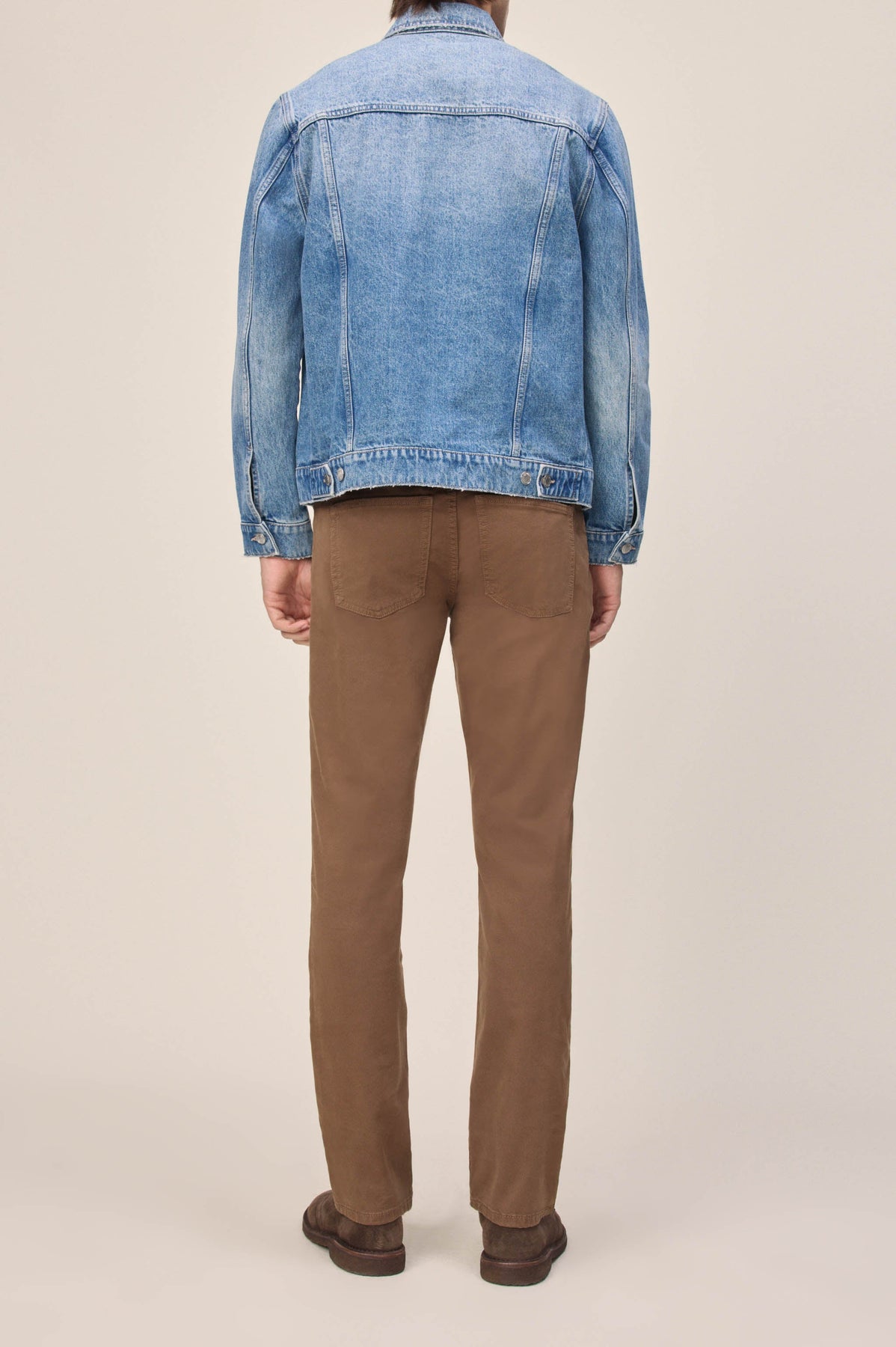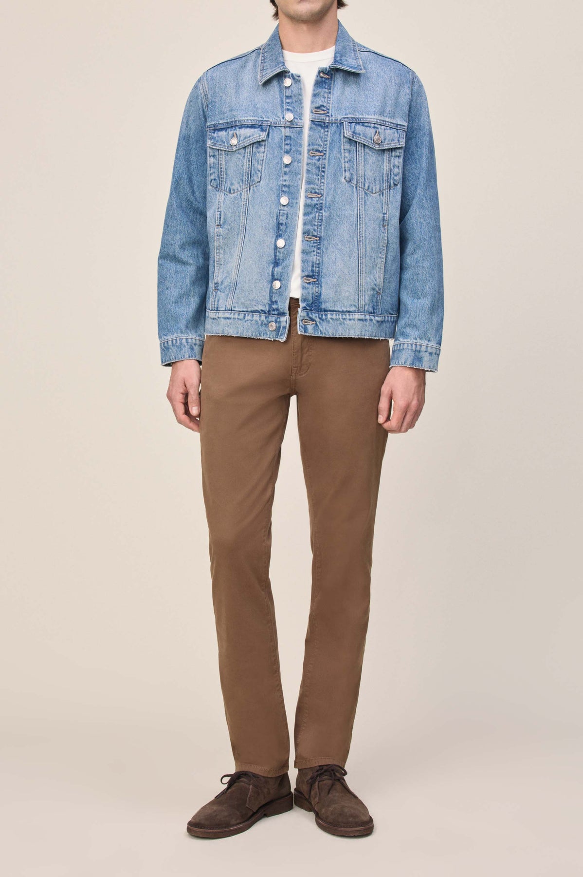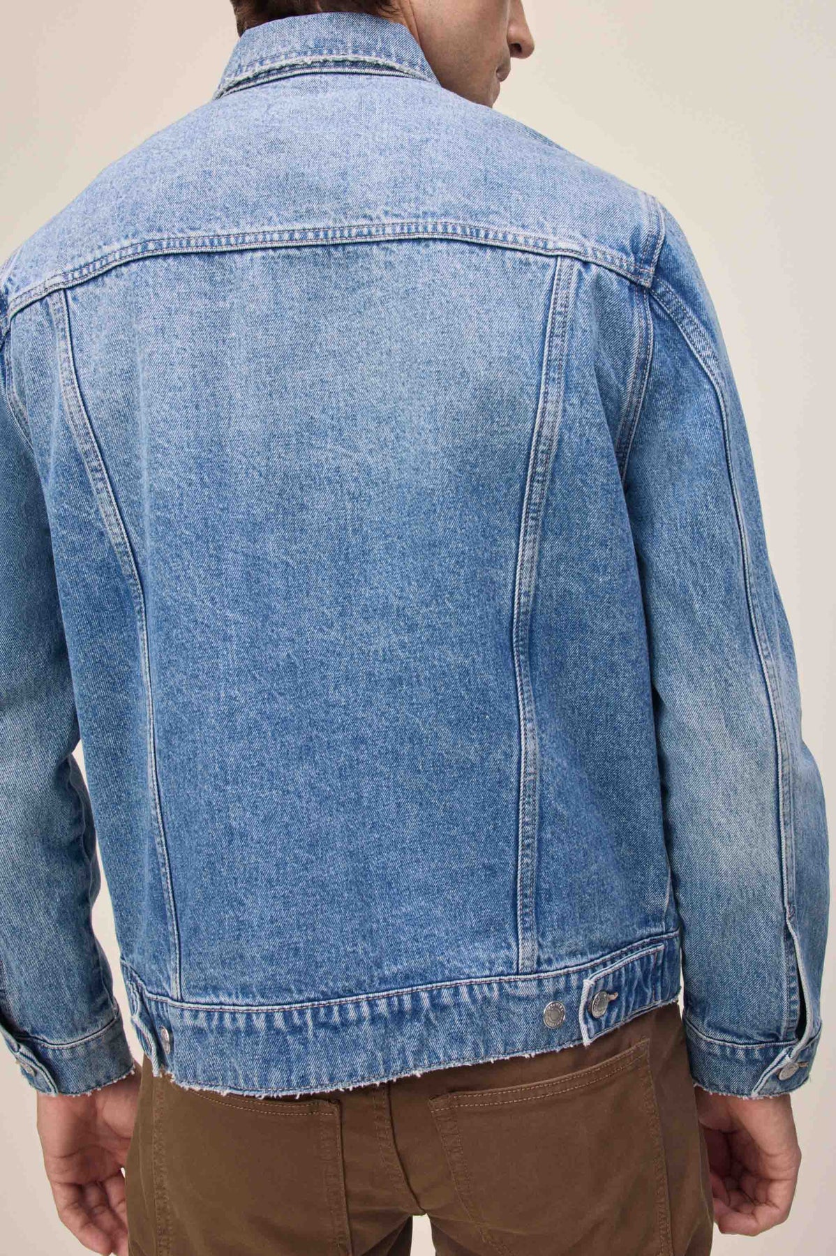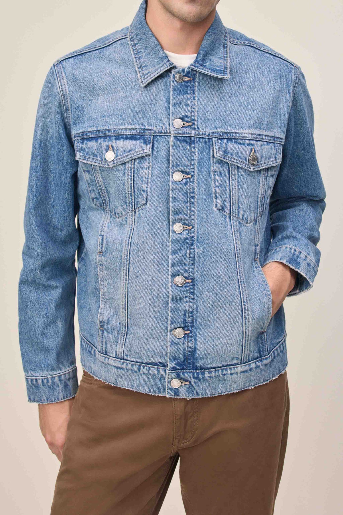 With a nod to Seattle and its legendary grunge scene, SEA is the denim jacket of our dreams. Perfectly detailed with classic styling and updated in our innovative performance denim with a modern fit, this year-round jean jacket is absolutely essential. Fairfax is a vintage inspired, chatty mid-indigo wash with fading and character throughout. It features classic trucker-style seam detailing, dual front chest pockets, silver button-front closure and a clean hem.