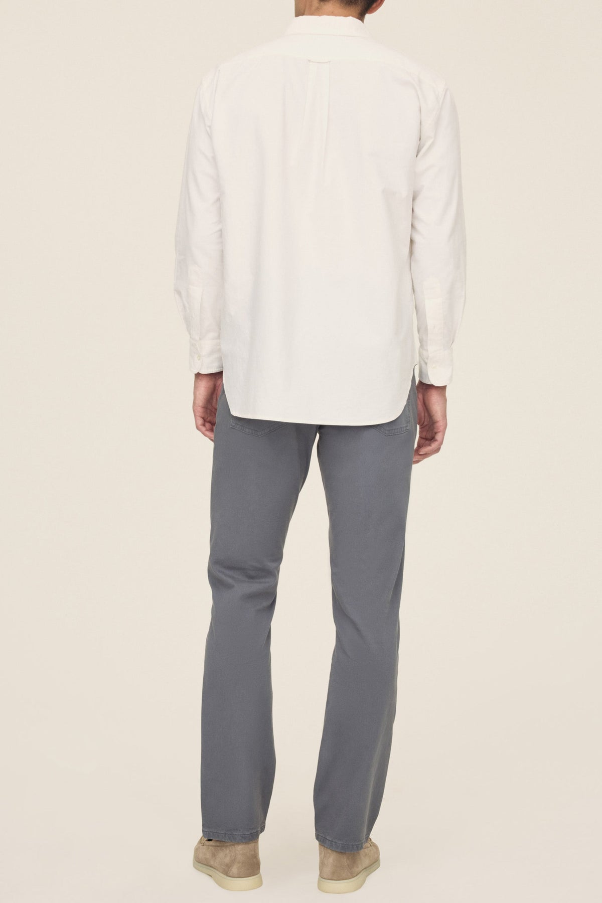 Architecturally minded yet understated - just like its namesake, Chicago - with a classic straight fit and a hint of stretch. Cut roomier through the legs and calves in a high retention fabric that never loses its shape, these essential jeans are easy to wear and always looks fresh. Stormy Weather is a blue-toned grey twill. It features a horn button, tonal stitching and a clean hem.