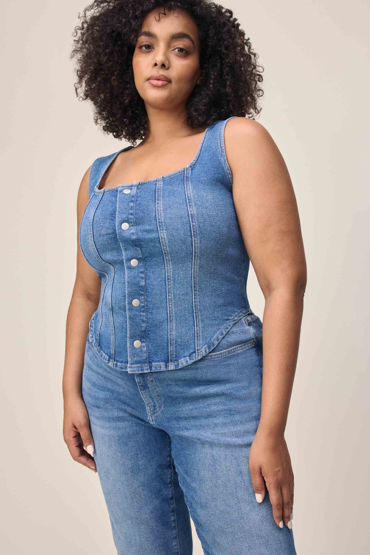 Created at the crossroads of bespoke tailoring and classic denim details, the JNB Vest has the perfect, contoured fit with statement-making hardware. It features metal buckles at the shoulders, center front button closure and denim-inspired double seam detailing.Varsity Blues is a classic mid-indigo wash with seam detailing and a center front button opening. It features silver logo snaps, khaki stitching and a clean hem.
