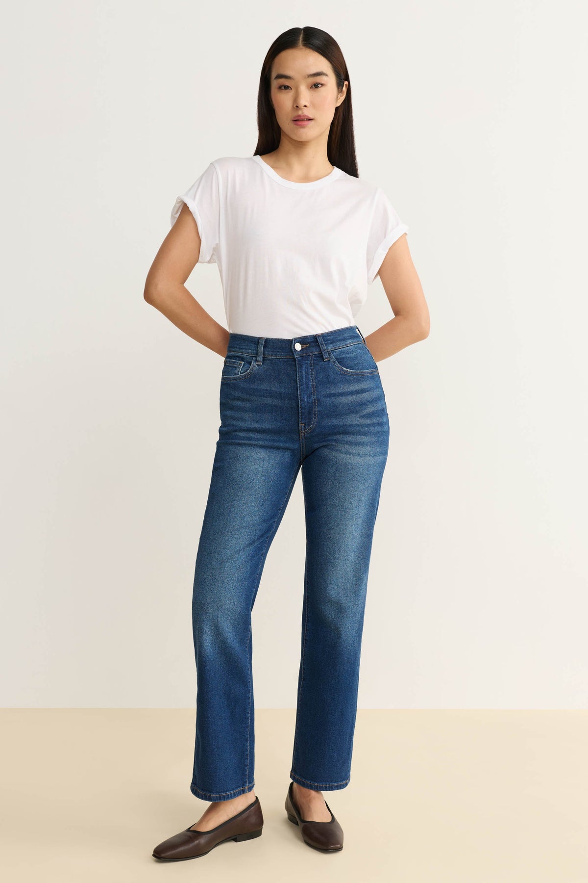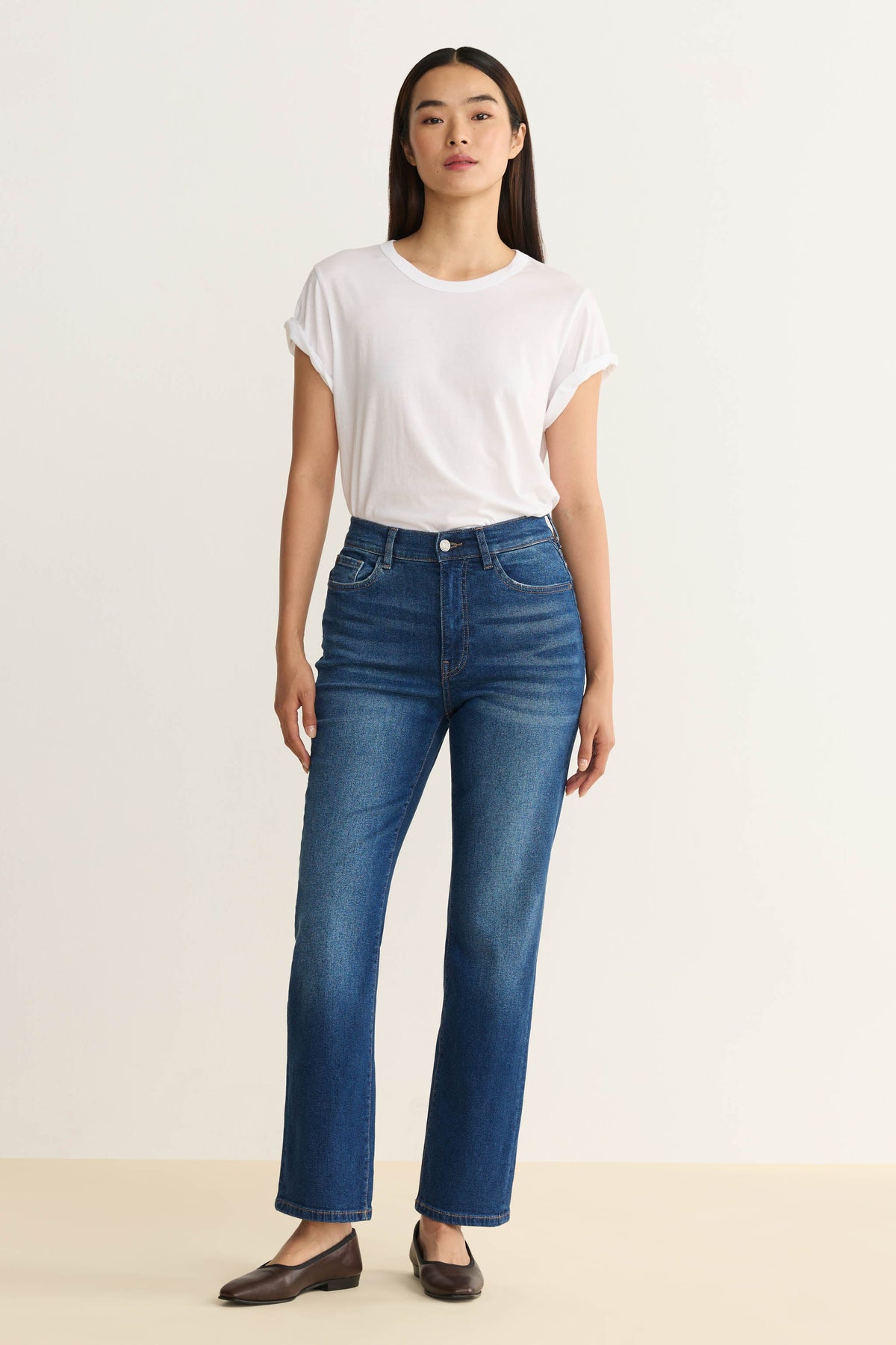 We've perfected the high-rise, vintage-inspired straight-leg jean. ASE flows straight from the thigh for maximum flattery and features a straight waistband, making it the perfect companion to your favorite crop tops and bodysuits.