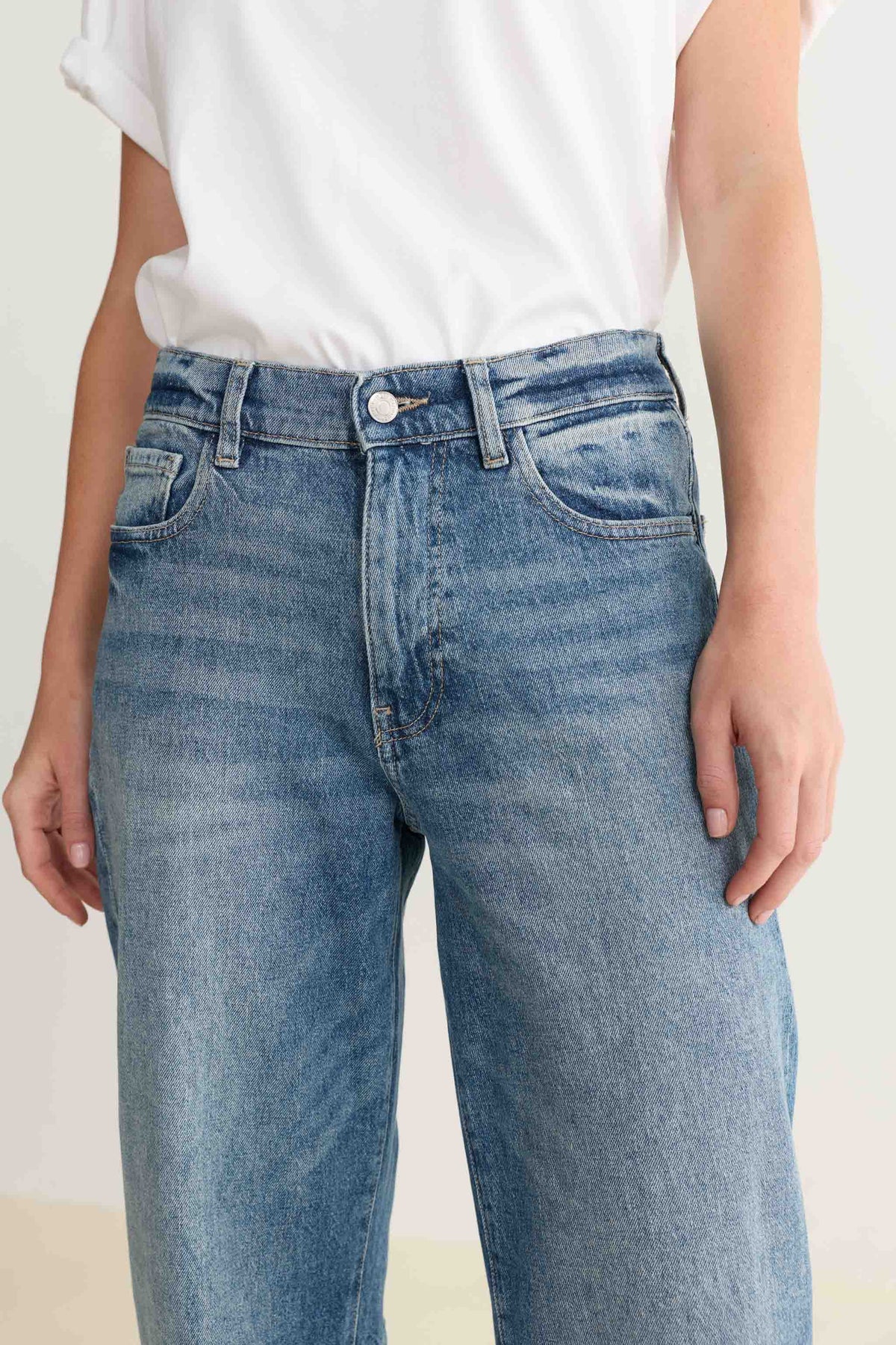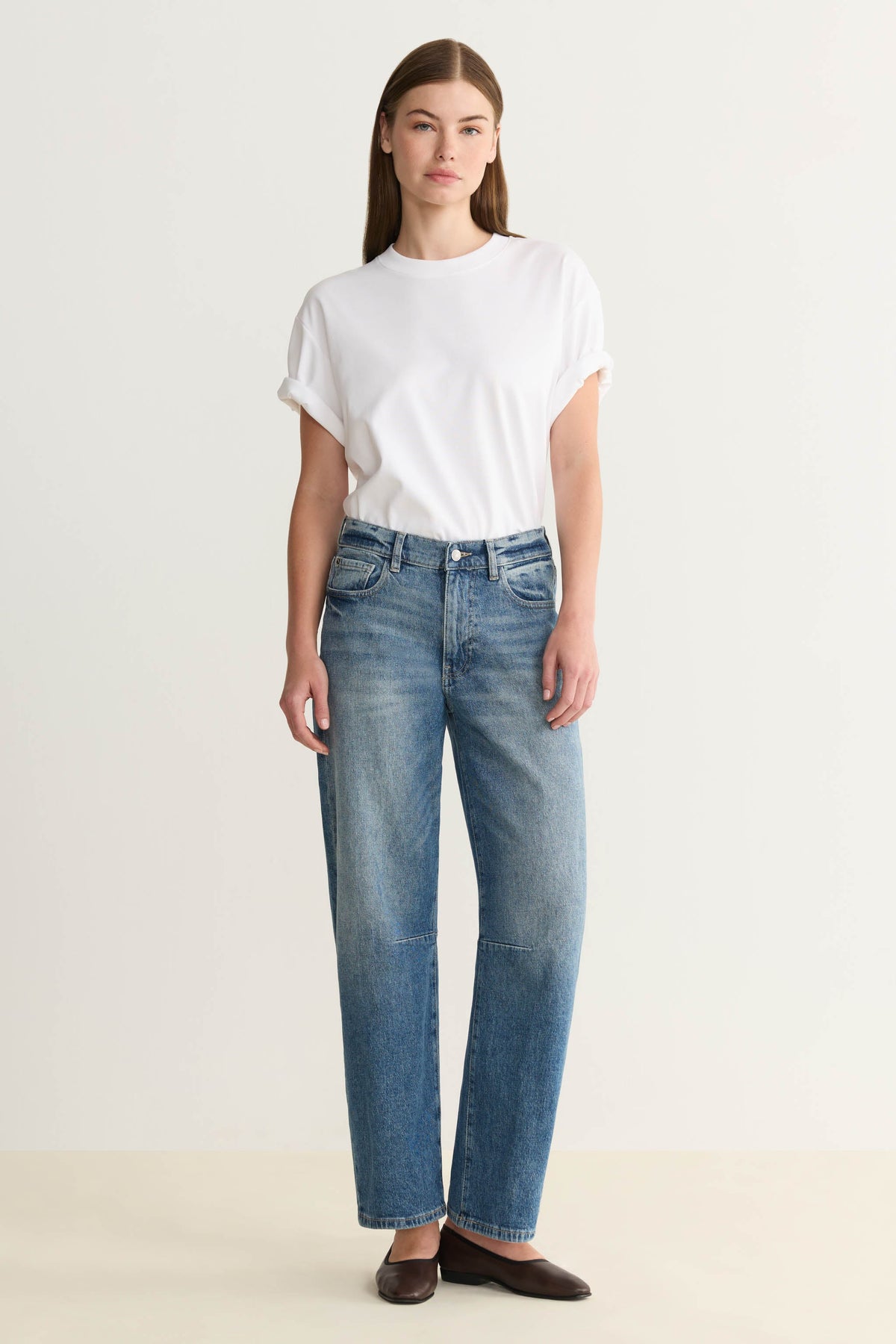 BNA is a high-rise, soft-curve barrel with a relaxed fit.