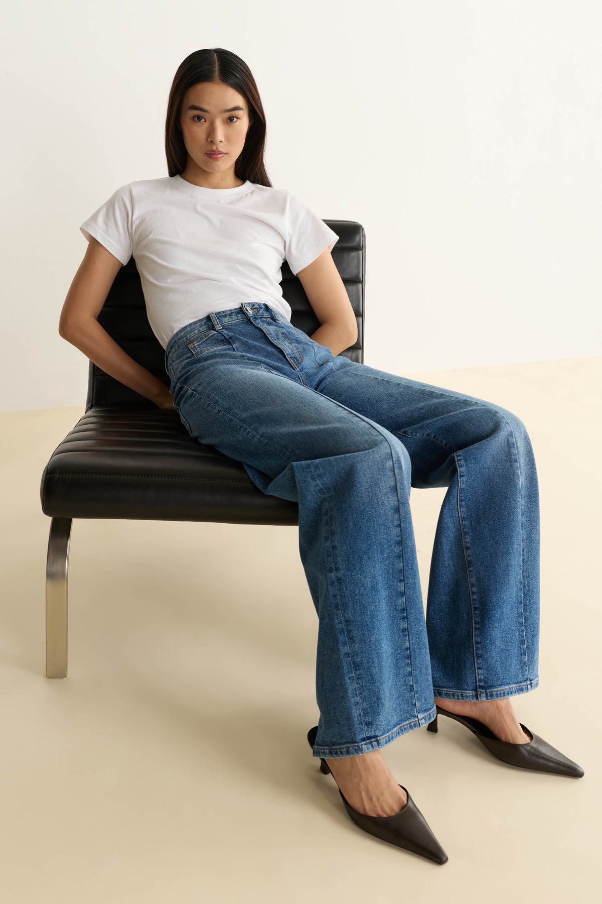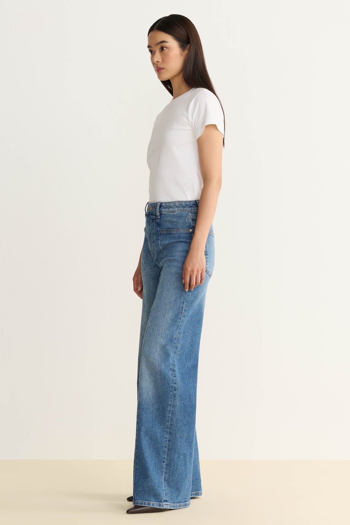 With a luxuriously laid-back look that reminds us of the south of France, NCE is right at home on the Côte d'Azur or just about anywhere else. Designed with a gently sculpting high-rise fit, these wide-leg jeans are casual yet always sophisticated.