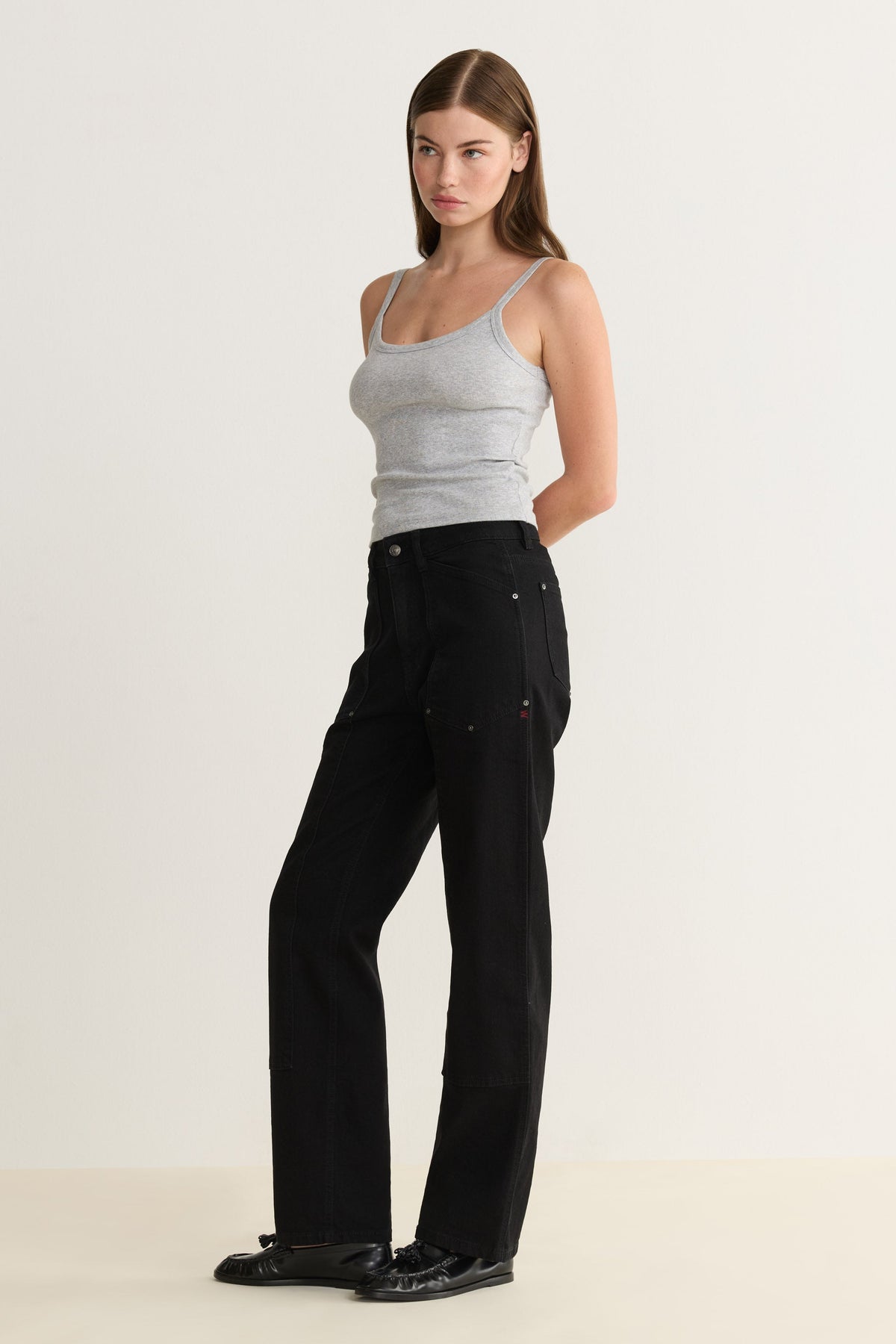 Ventura is a washed black denim with utility-inspired pocket detailing, silver hardware and a clean hem.