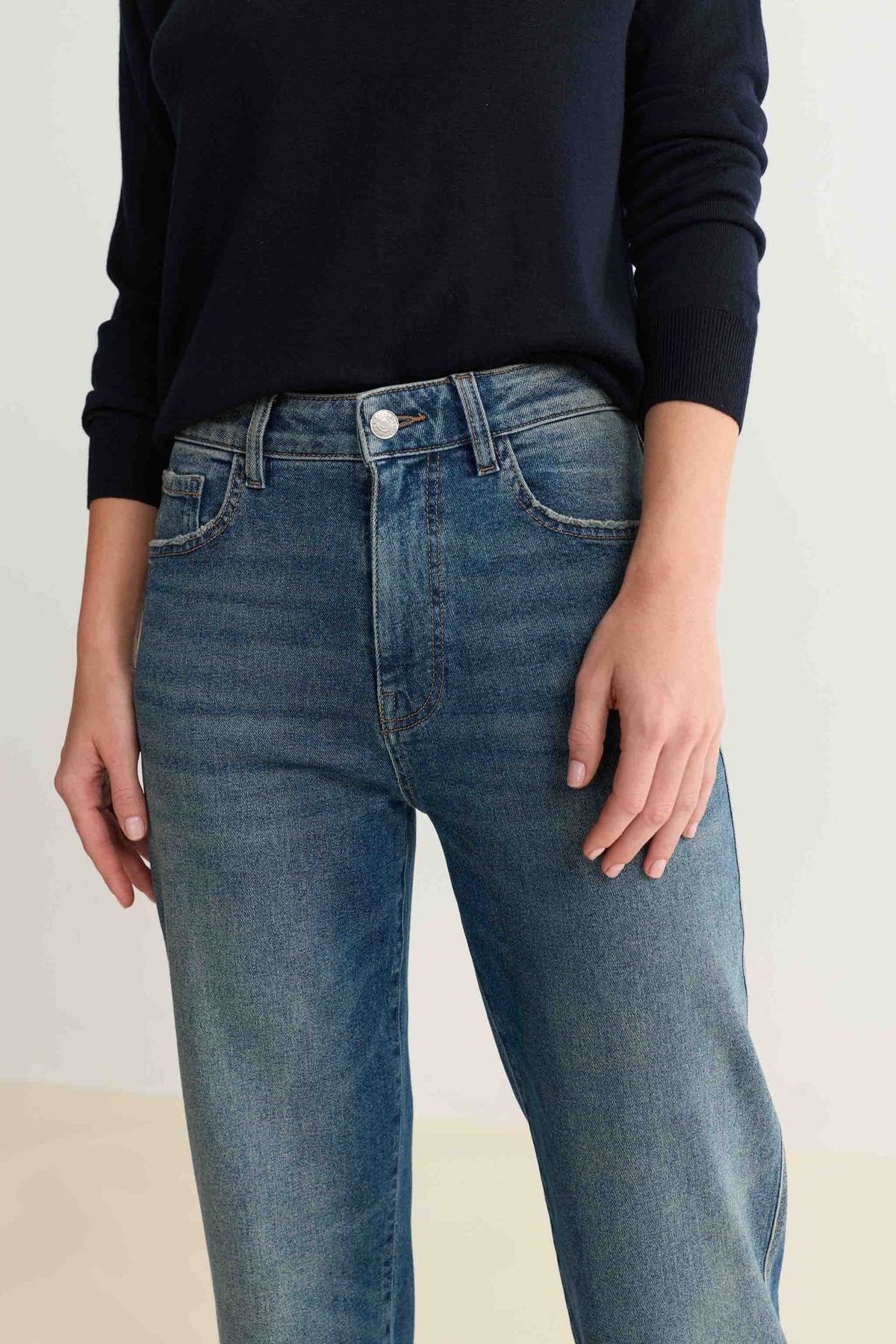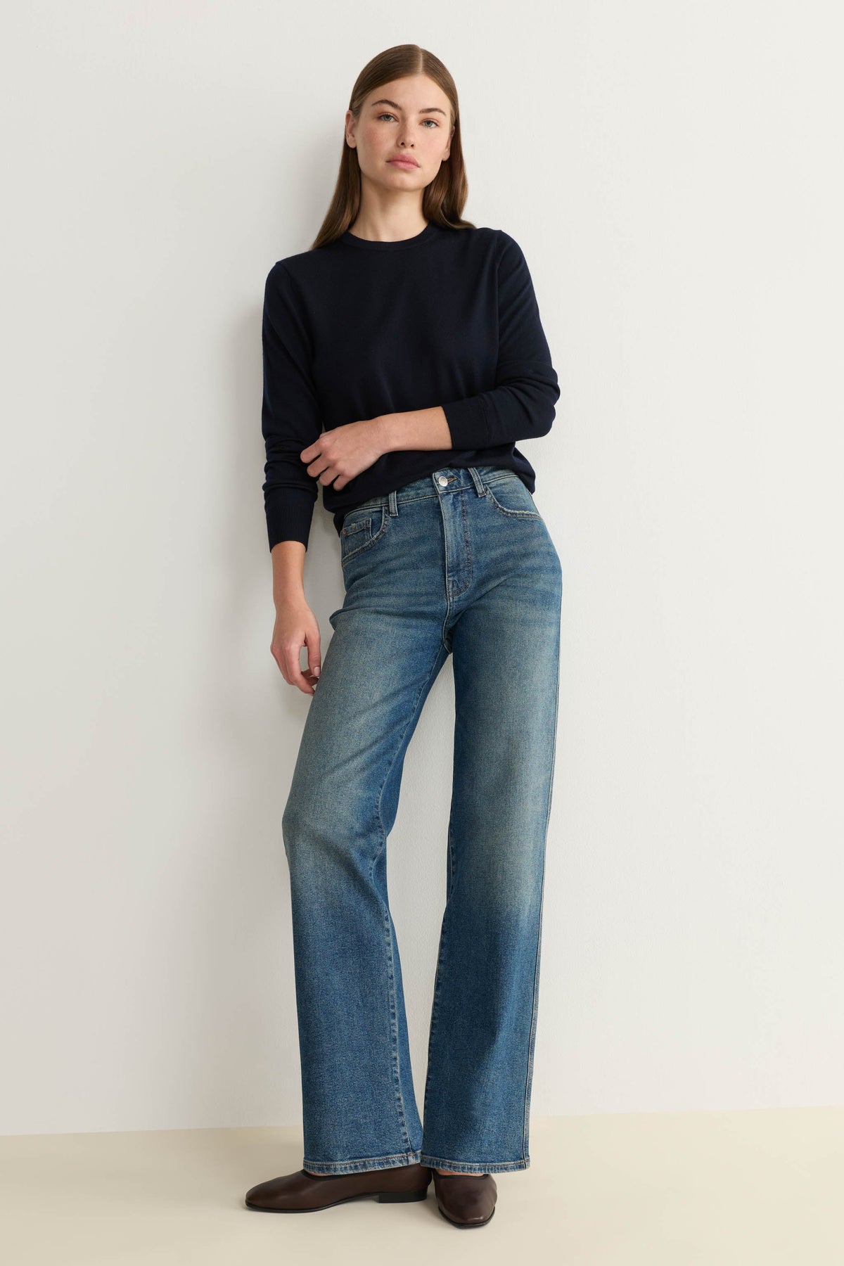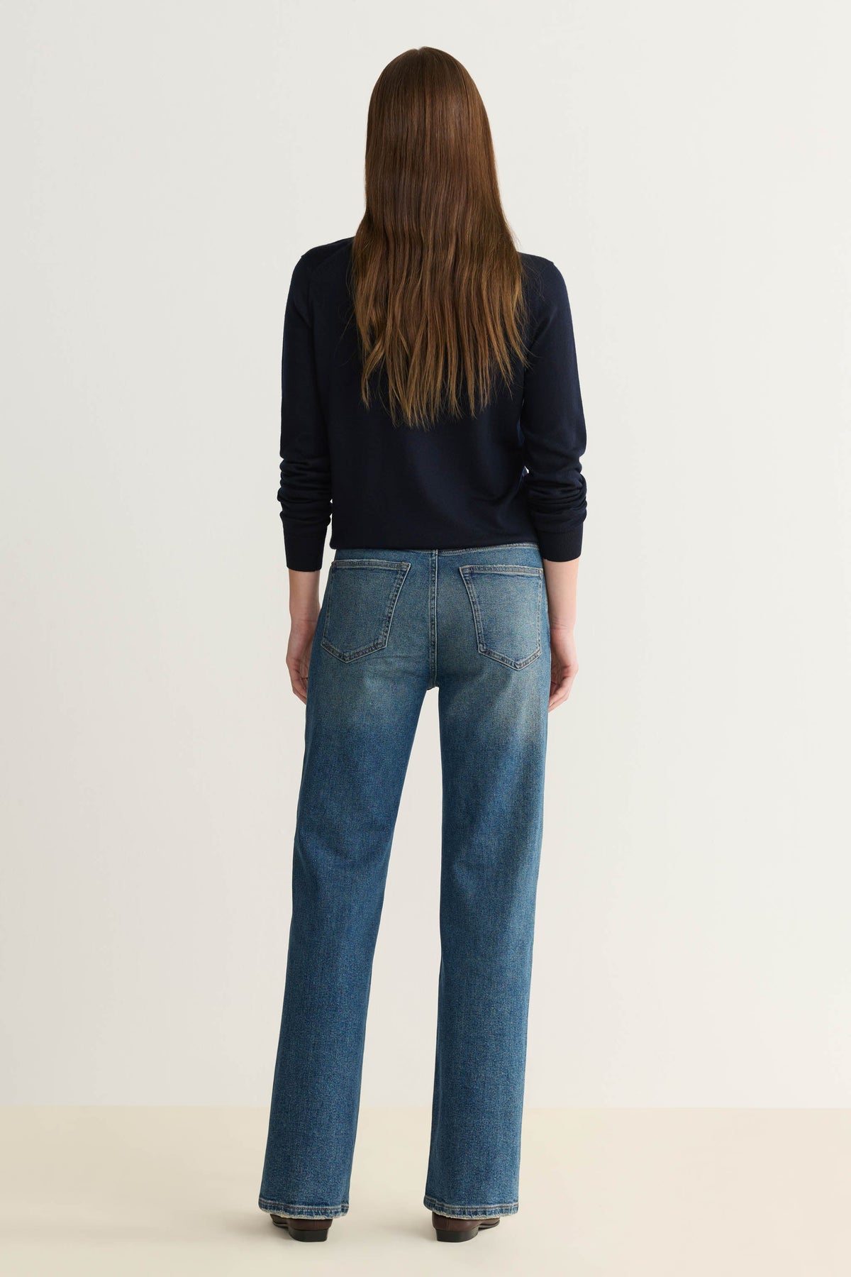 SAT is a high-rise straight jean that's a nod to the most-loved '90s denim style. Crafted of certiified cotton and a hint of stretch, this 31"-inseam jean looks vintage, but is made with way less water, dyes, and chemicals than any other jean in your closet.