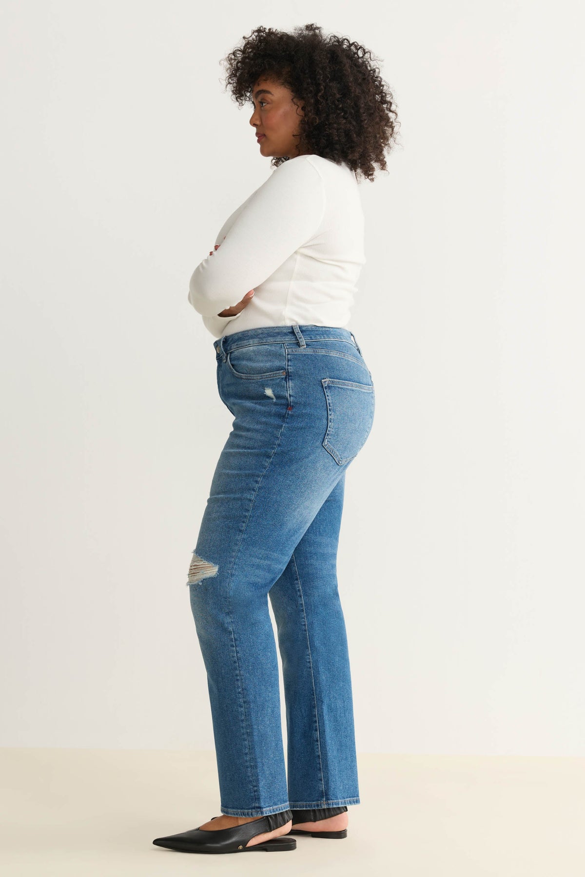 We've perfected the high-rise, vintage-inspired straight-leg jean. ASE flows straight from the thigh for maximum flattery and features a straight waistband, making it the perfect companion to your favorite crop tops and bodysuits.
