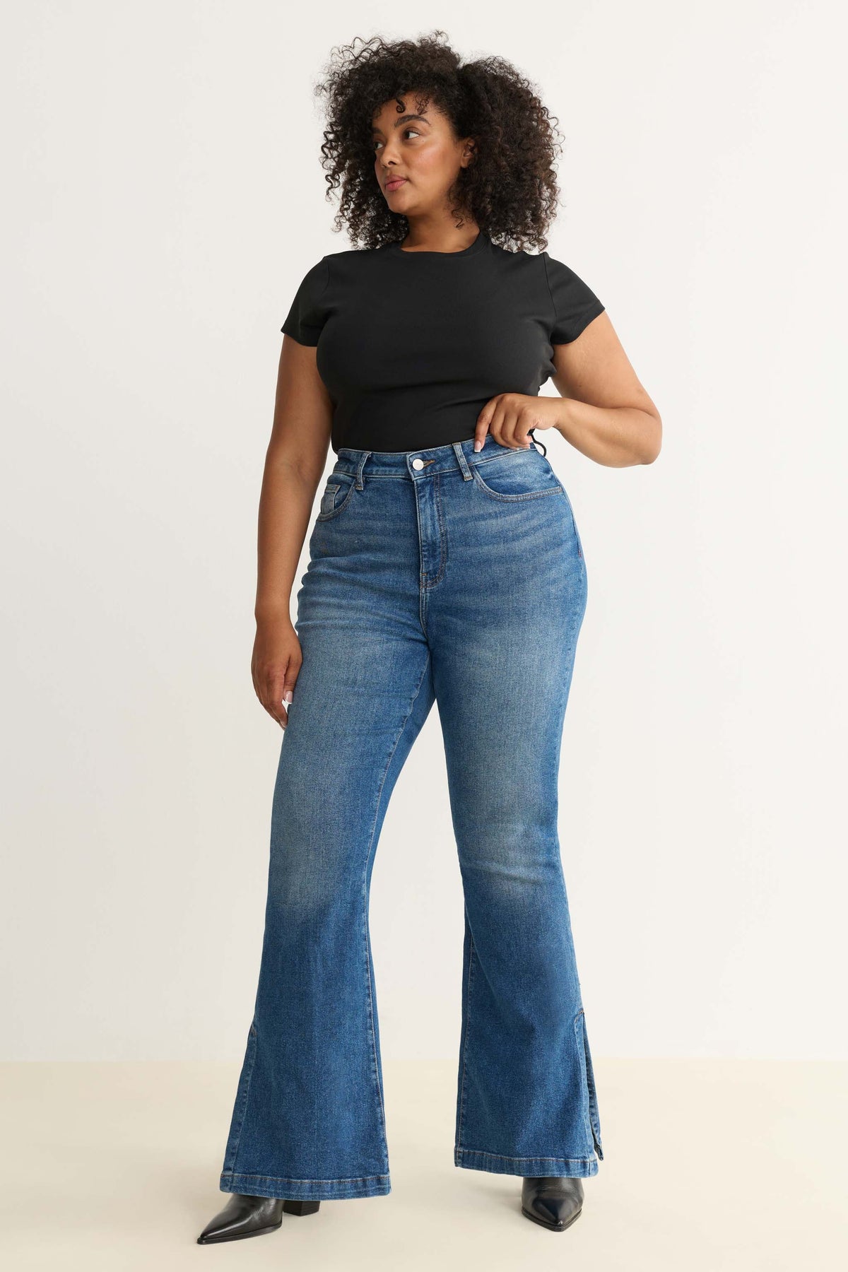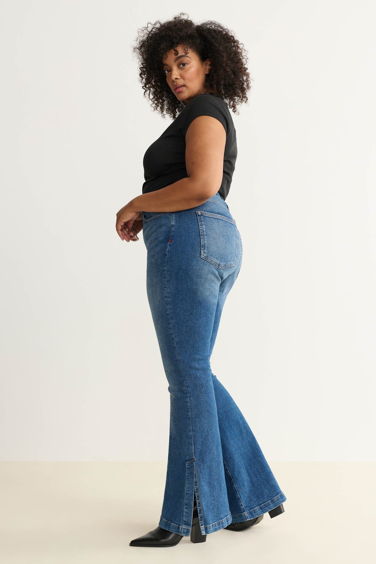 The crowd-favorite MIA is the ultimate dress up or down jean. We took the best, most-sculpting high-rise top block we could formulate and paired it with with a leg-lengthening flare for a little drama.