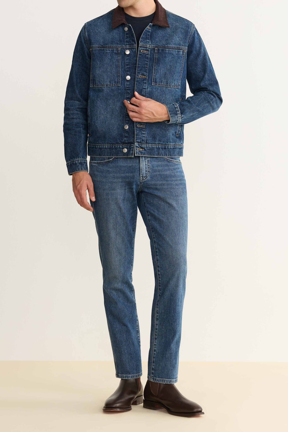 Architecturally minded yet understated just like its namesake, Chicago, ORD has a classic straight fit and a hint of stretch. Cut roomier through the legs and calves in a high-retention stretch fabric that never loses its shape, these essential jeans are easy to wear and always looks fresh. Gramercy is a mid-to-dark indigo wash with vintage character throughout. It features a silver shank, copper rivets and a clean hem.
