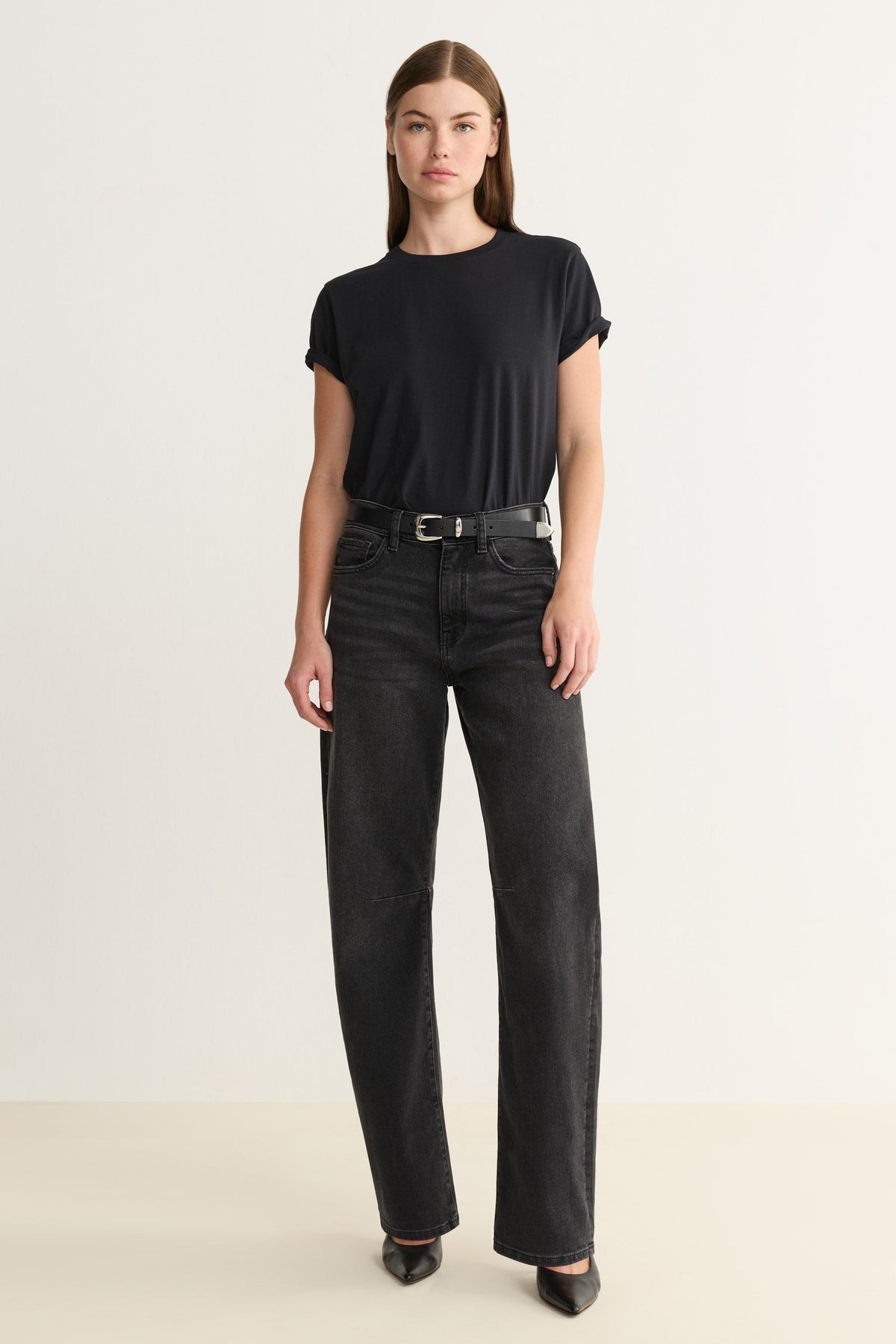 BNA is a high-rise, soft-curve barrel with a relaxed fit.