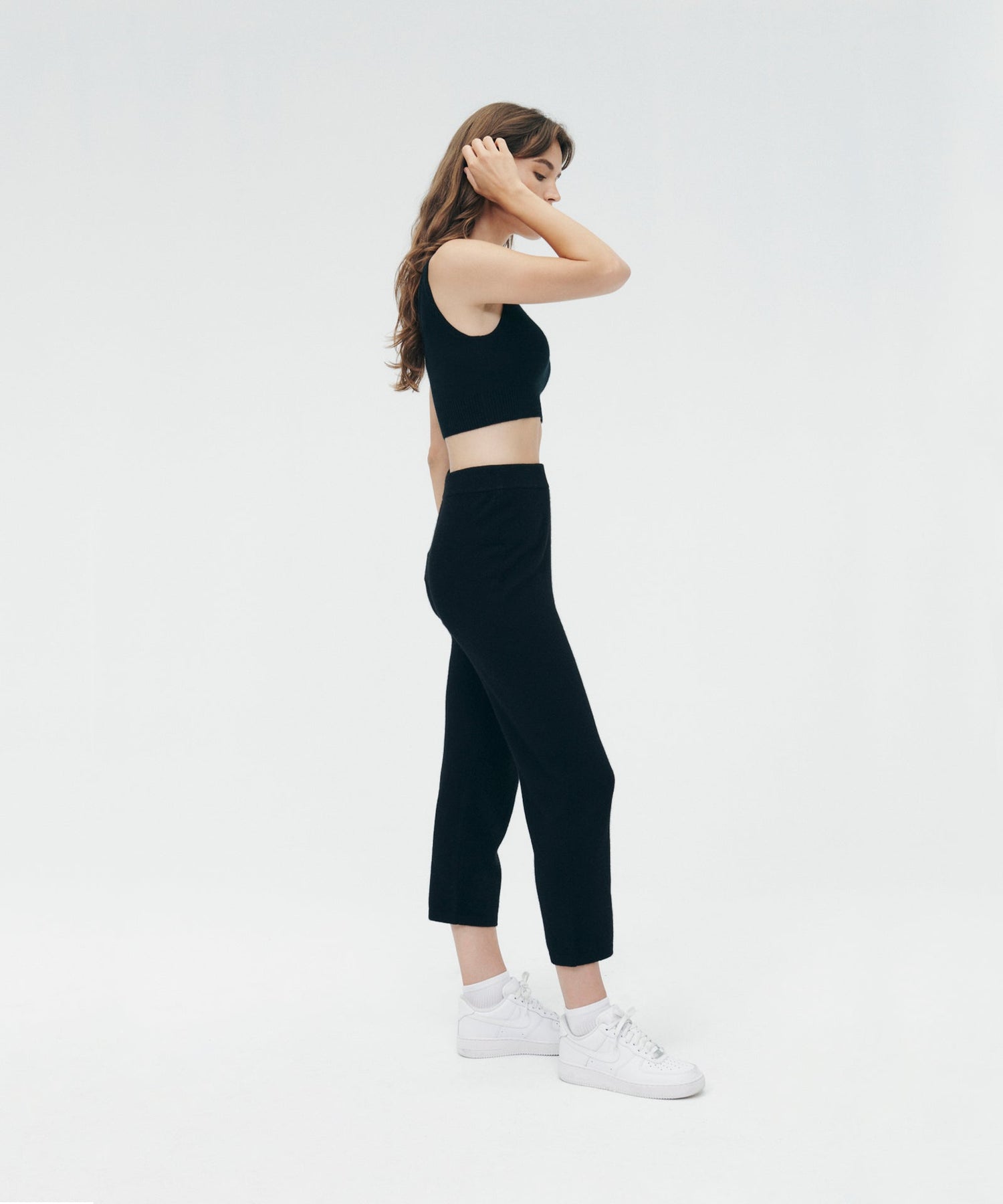 The Cashmere Cropped Pant is a soft, versatile bottom with a classic fit and ankle length. It features a high waist, straight leg, and sleek, simple silhouette. Crafted from 100% premium, sustainable cashmere.