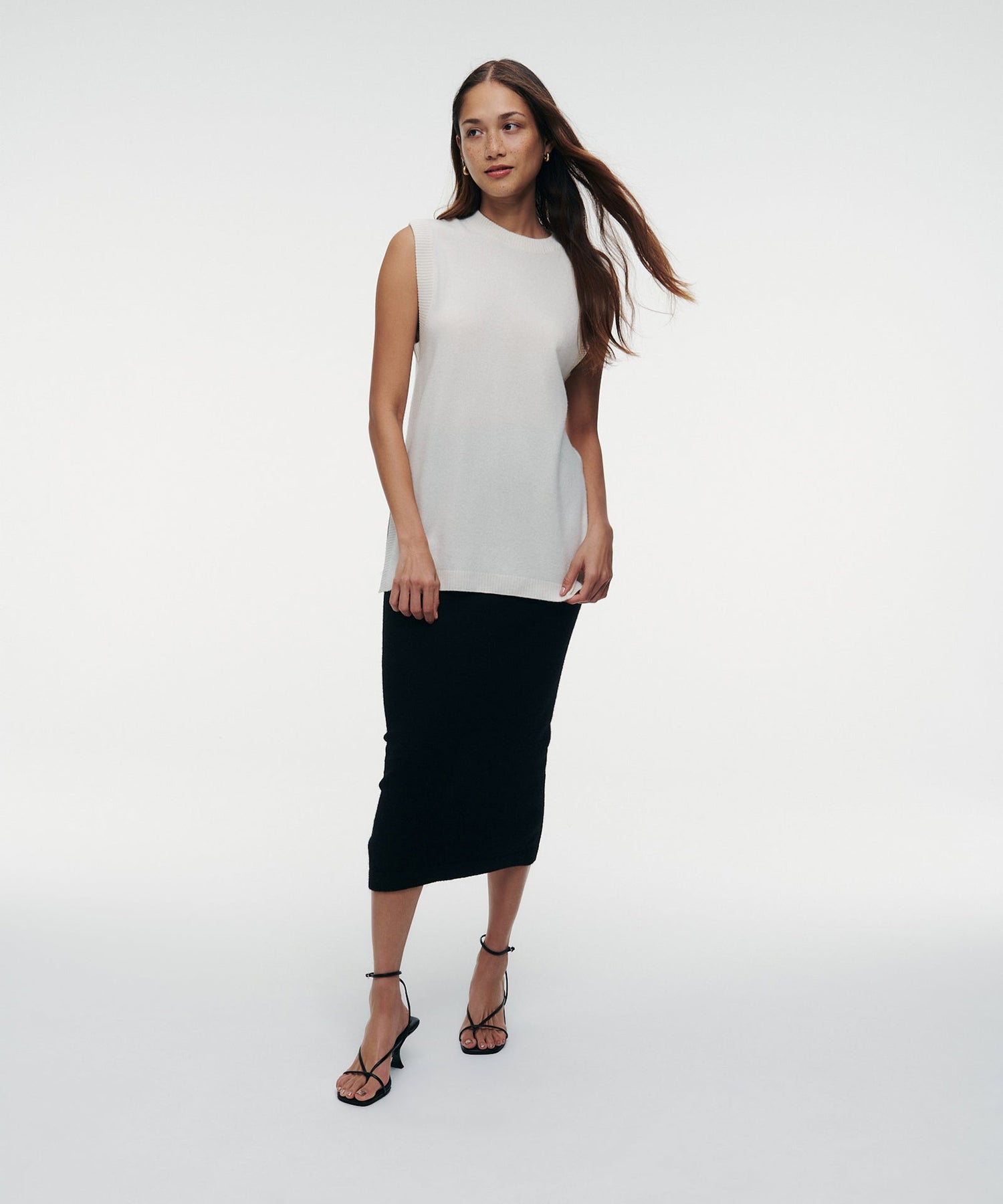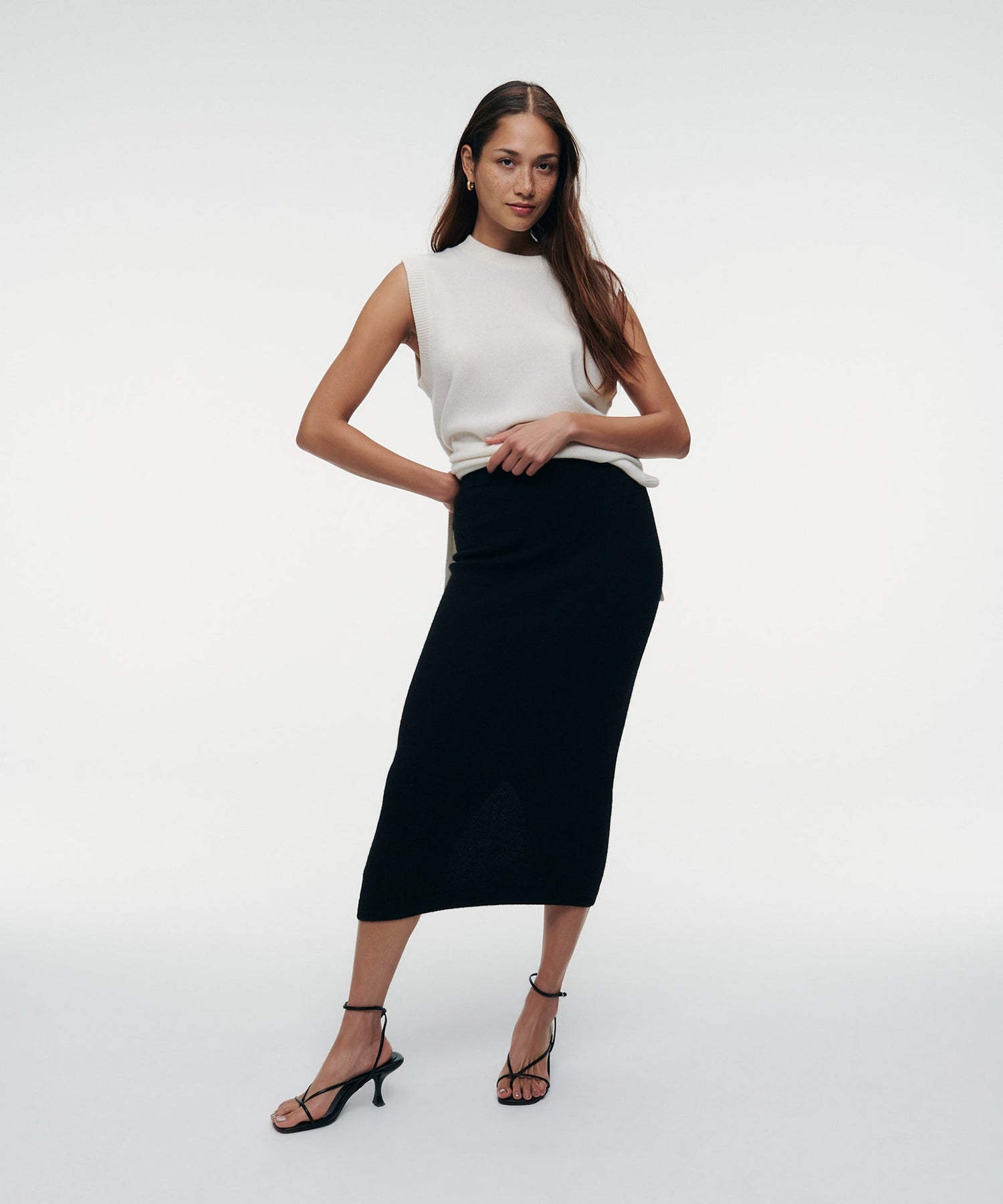 MVP (Most Versatile Pencil). Featuring a narrow, figure-flattering fit and a waist woven from elastic yarn and cashmere (no bunching or muffin tops here!), the Cashmere Pencil Skirt is the most comfortable way to look cute. Pair it with everything from sweaters in the winter to tanks and tees in the summer.
