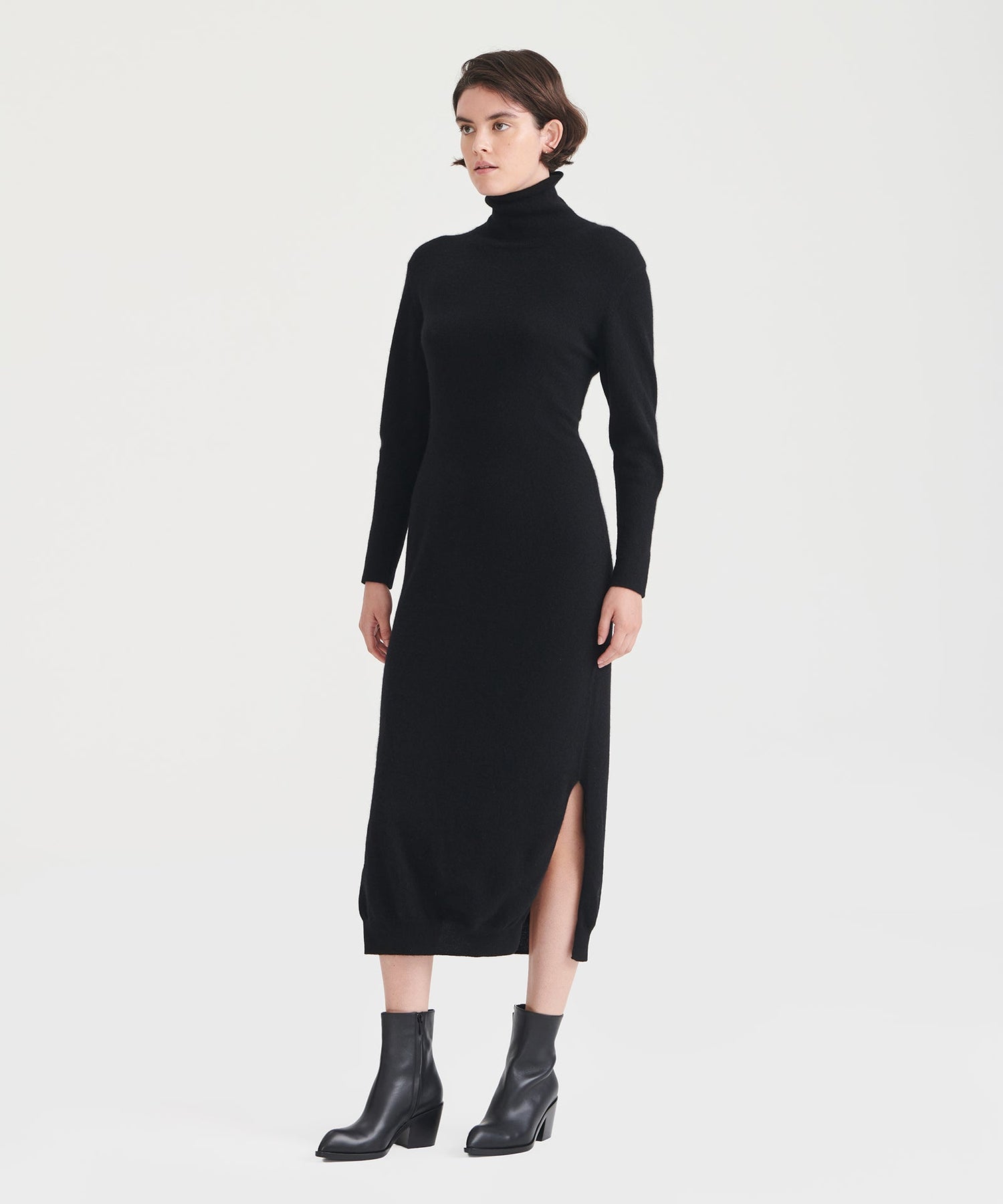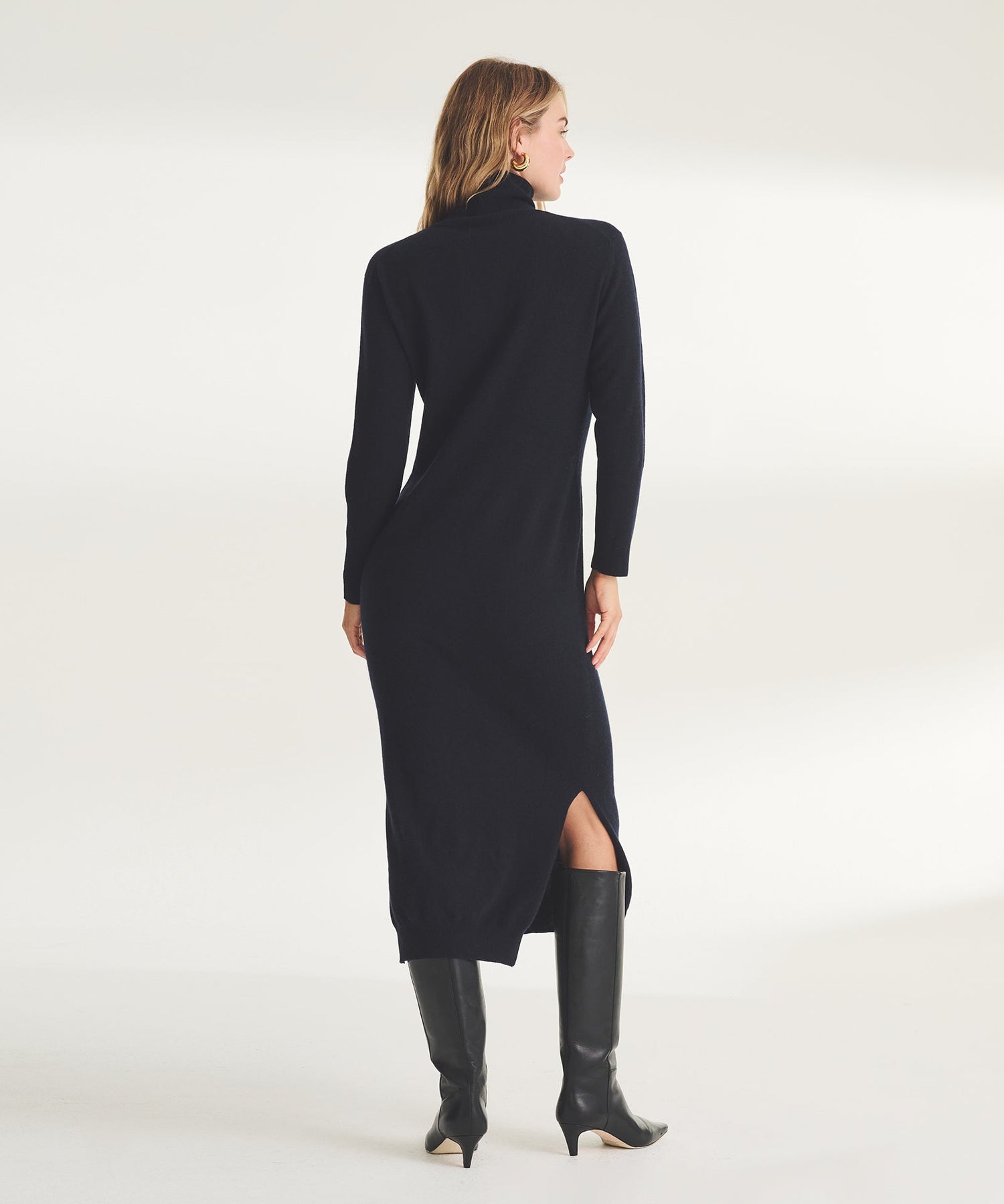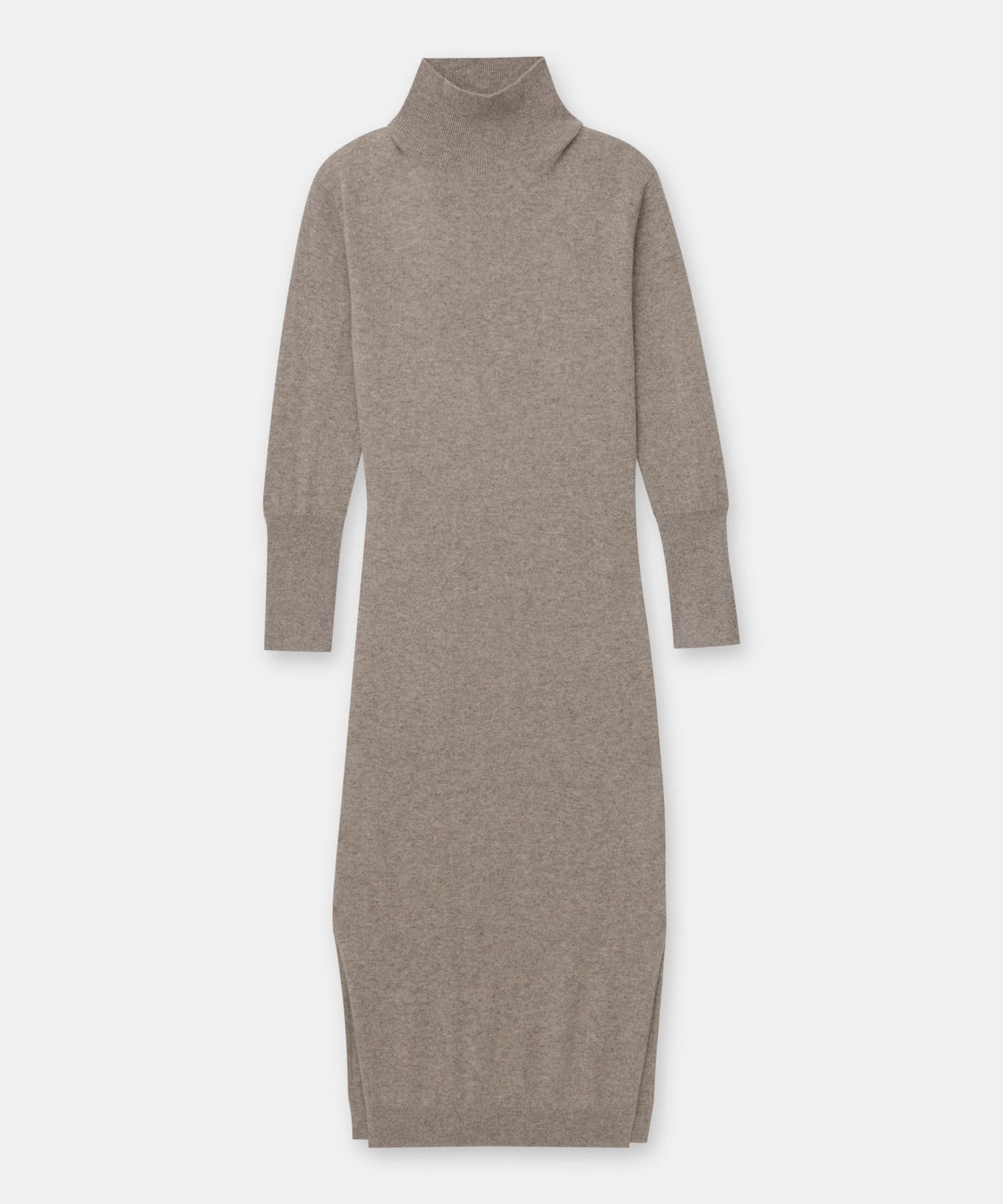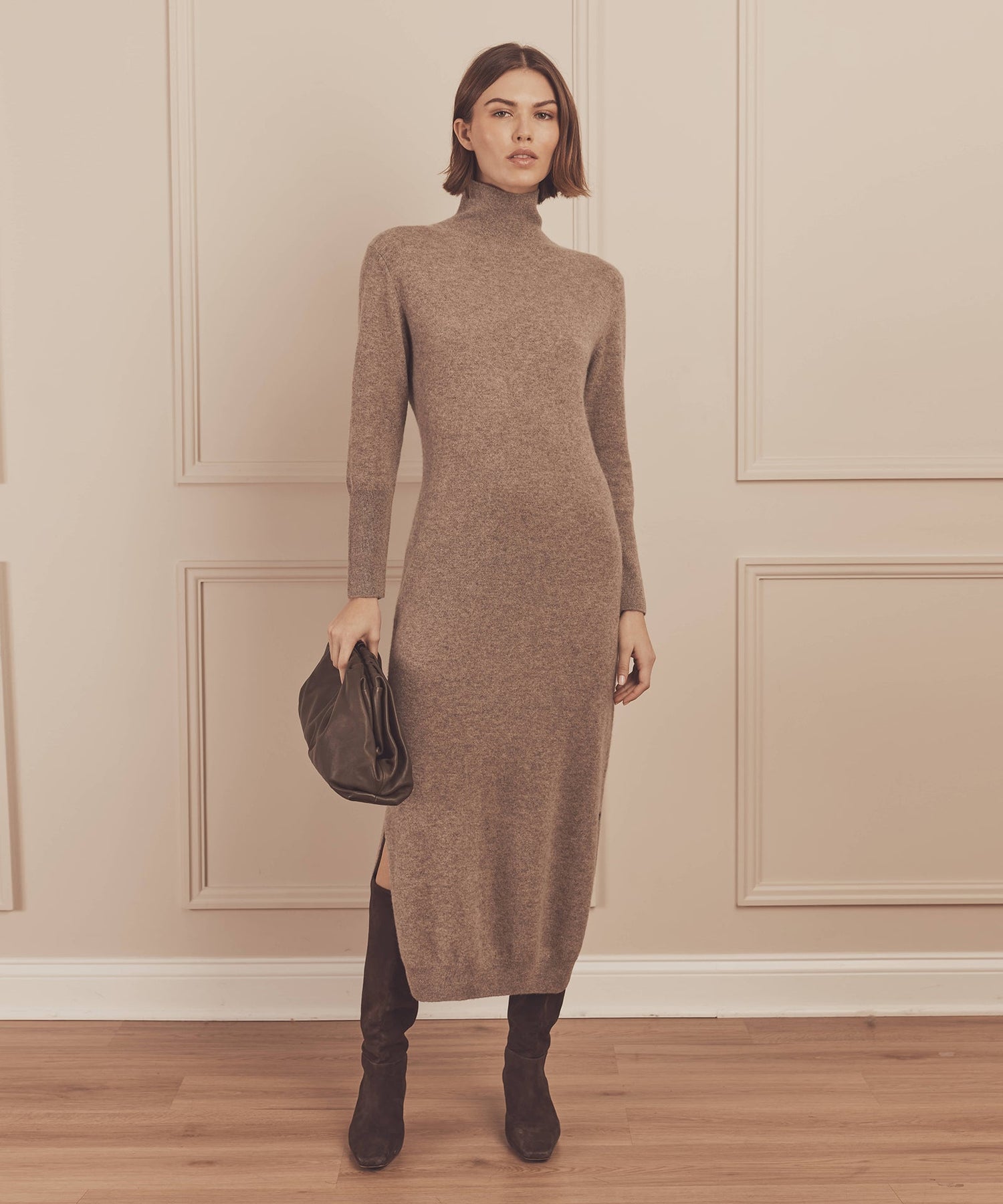 Sophisticated ease. The 100% cashmere turtleneck dress with slits has a high turtleneck and figure-flattering midi-length. Wear it with sneakers for a laid-back look that takes you effortlessly from couch to curbside.