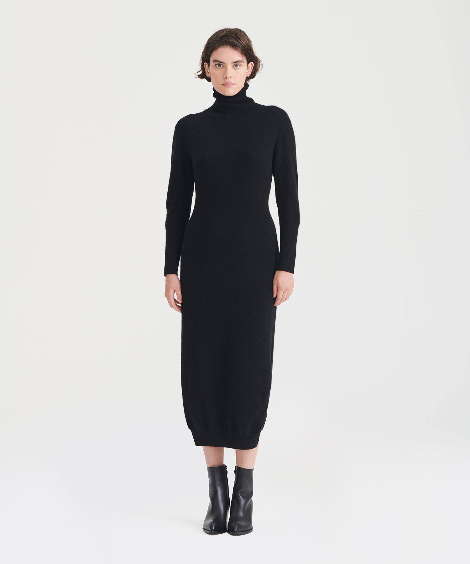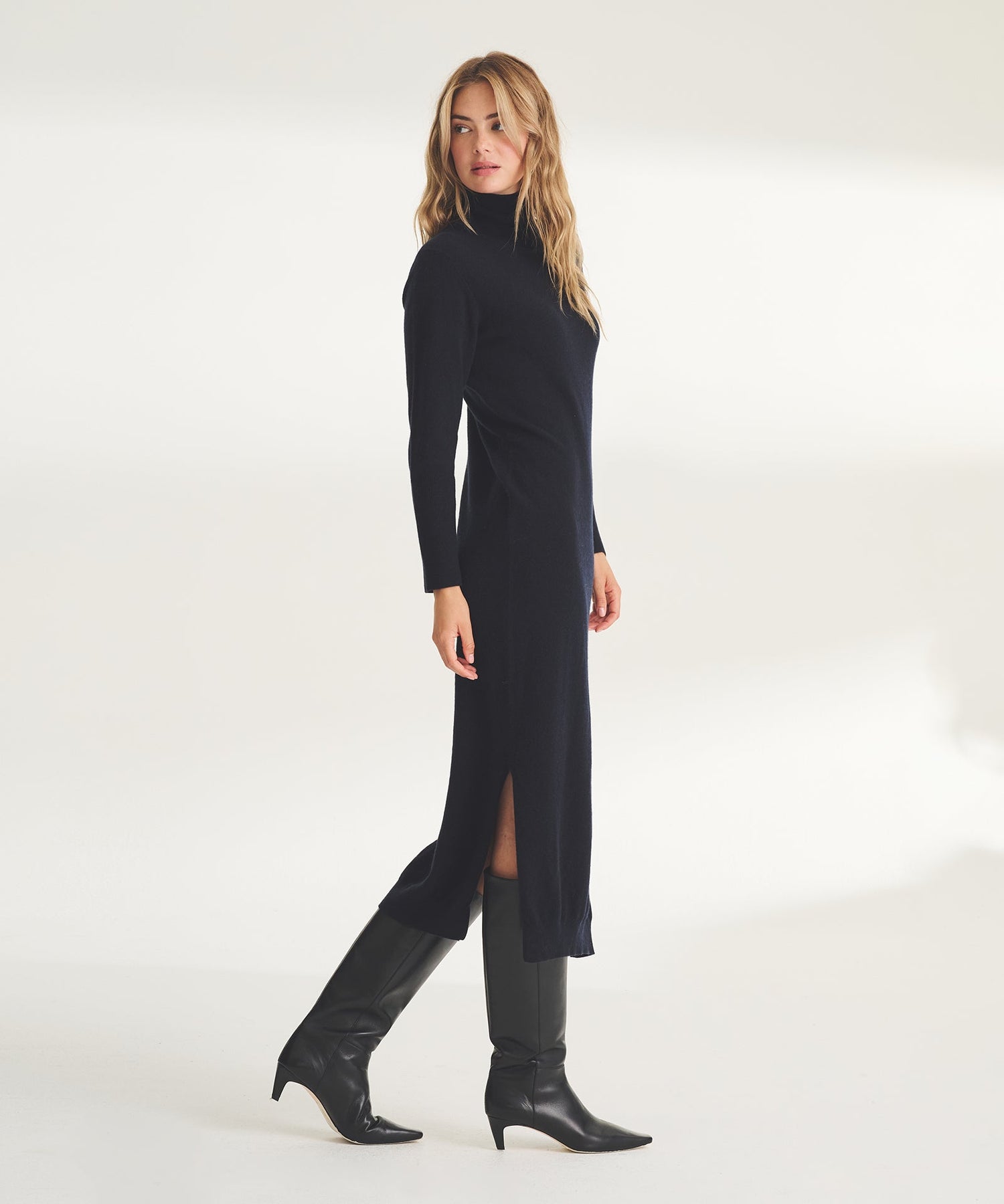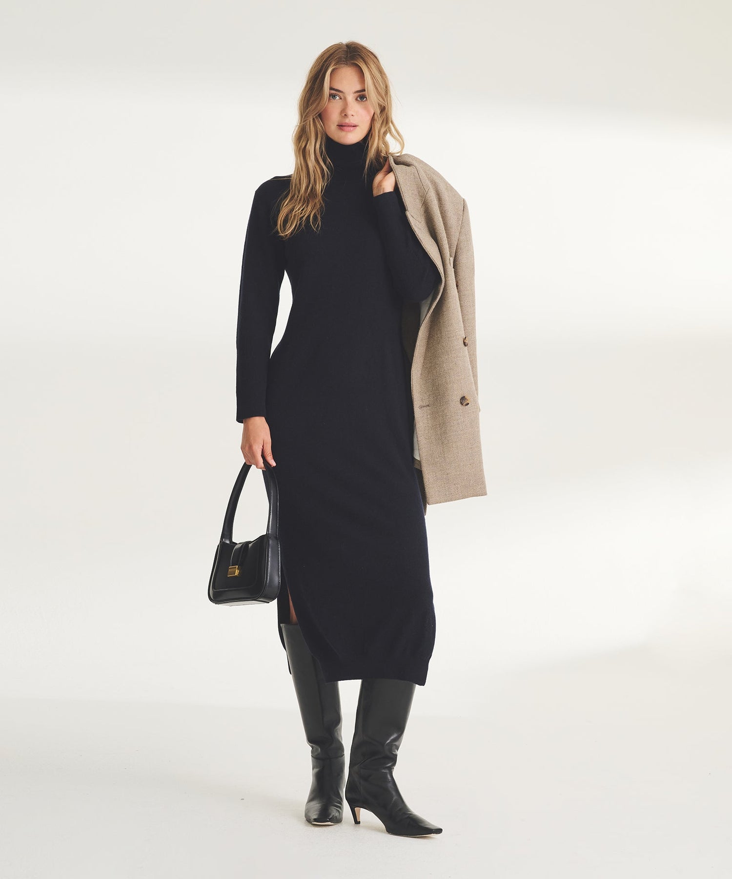 Sophisticated ease. The 100% cashmere turtleneck dress with slits has a high turtleneck and figure-flattering midi-length. Wear it with sneakers for a laid-back look that takes you effortlessly from couch to curbside.