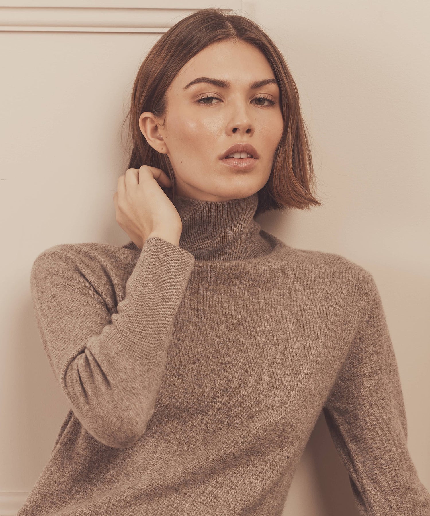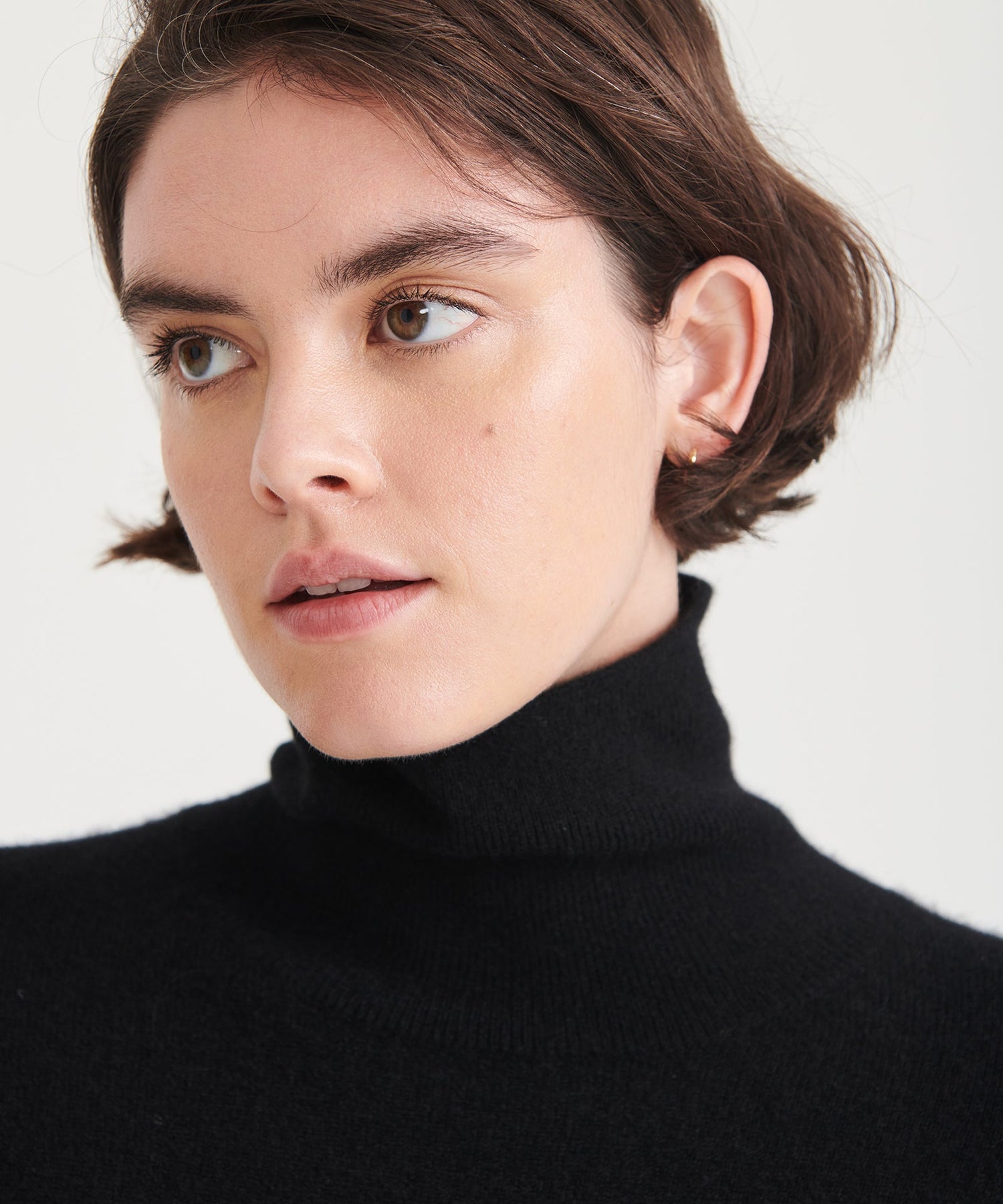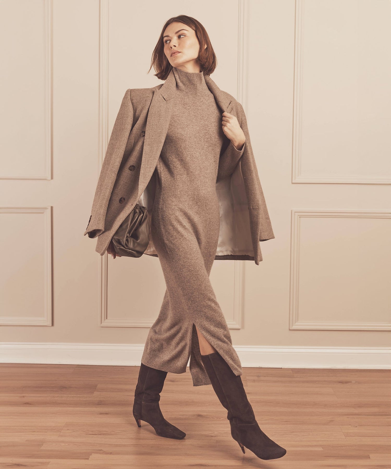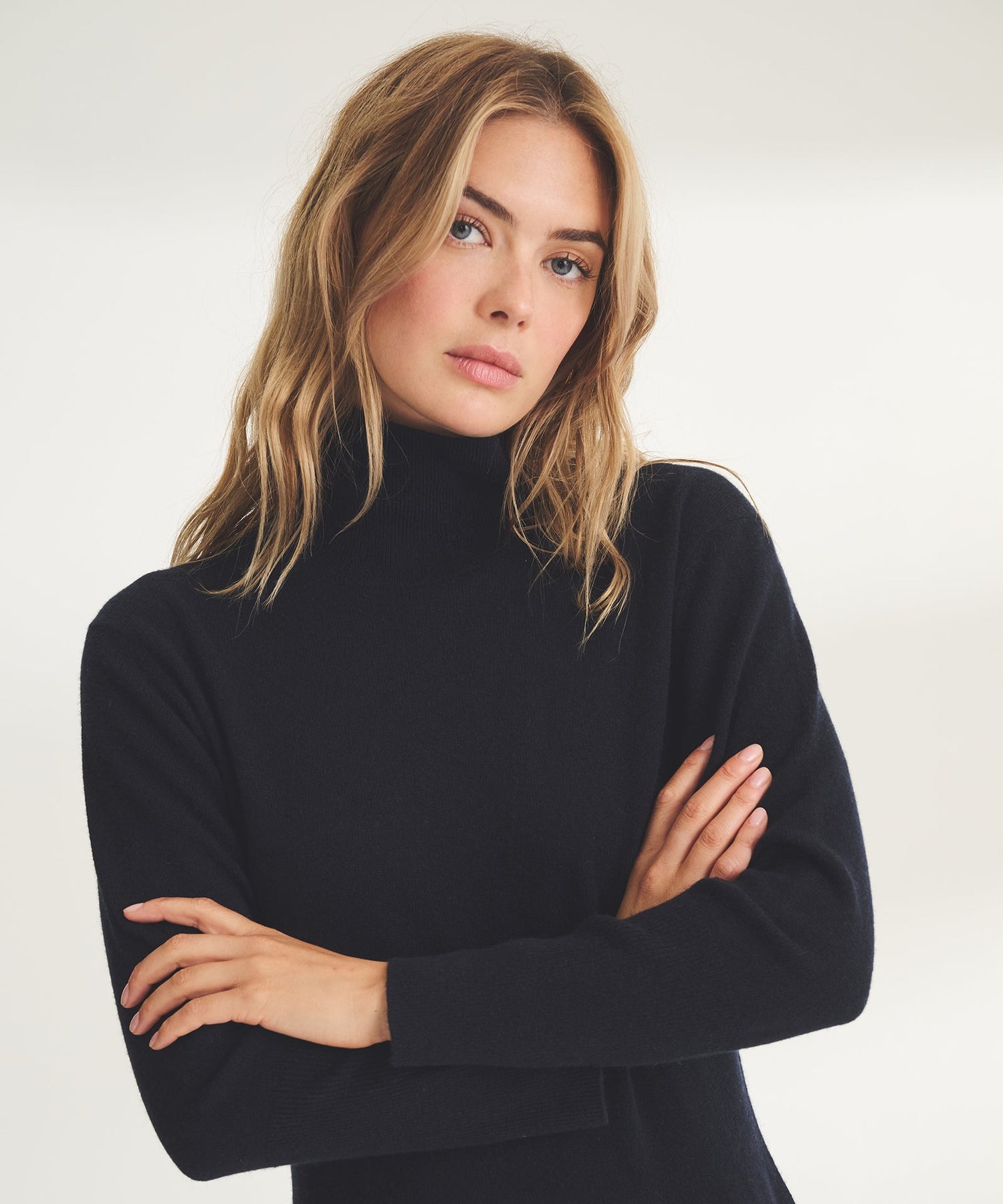 Sophisticated ease. The 100% cashmere turtleneck dress with slits has a high turtleneck and figure-flattering midi-length. Wear it with sneakers for a laid-back look that takes you effortlessly from couch to curbside.