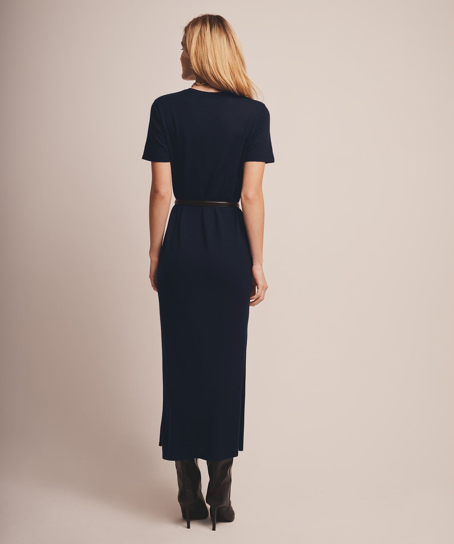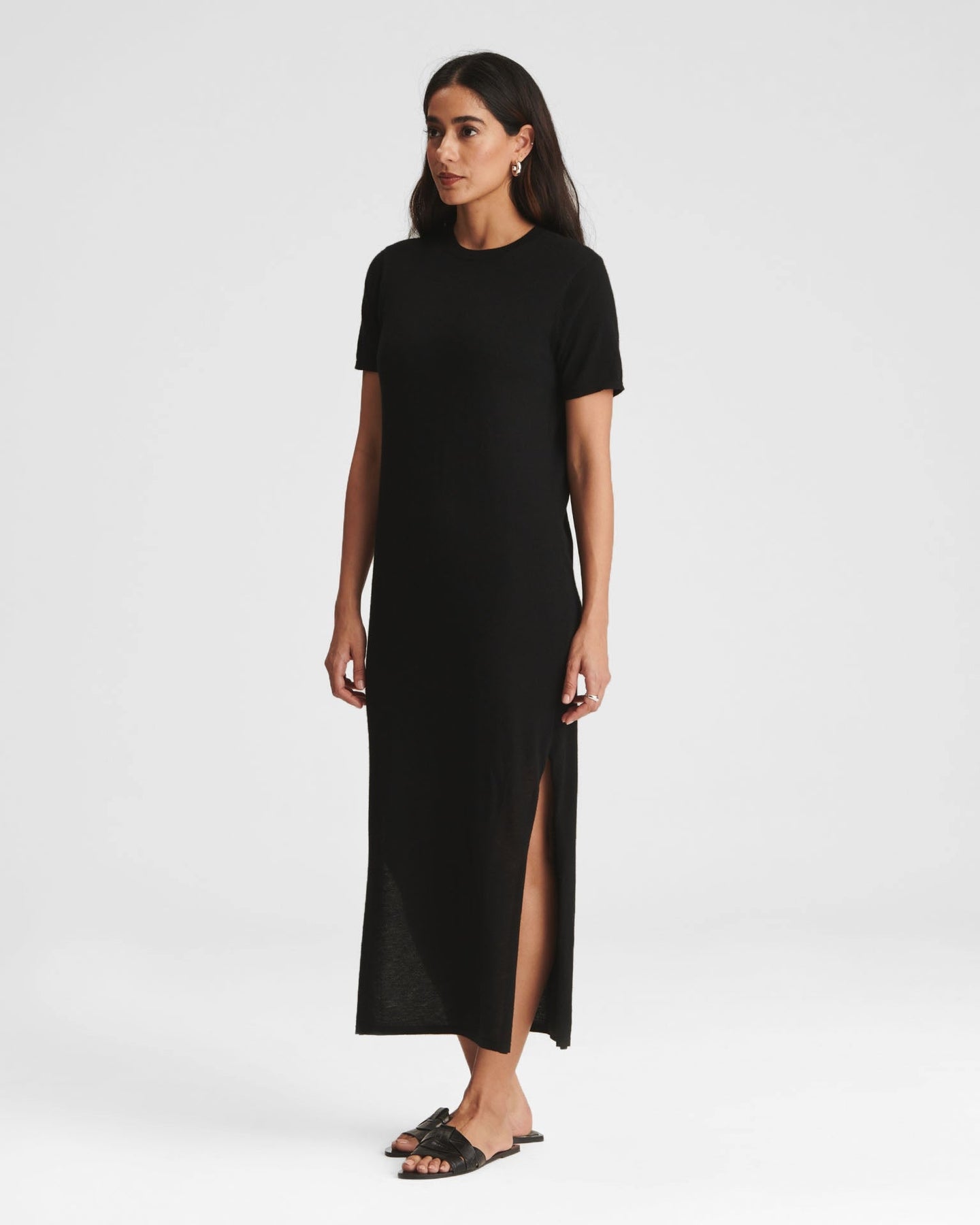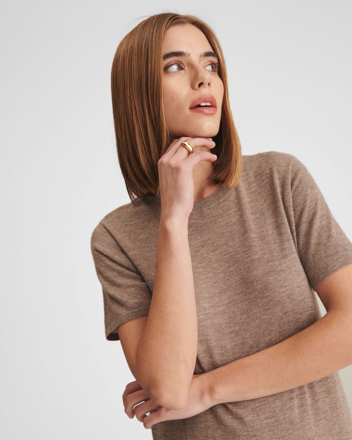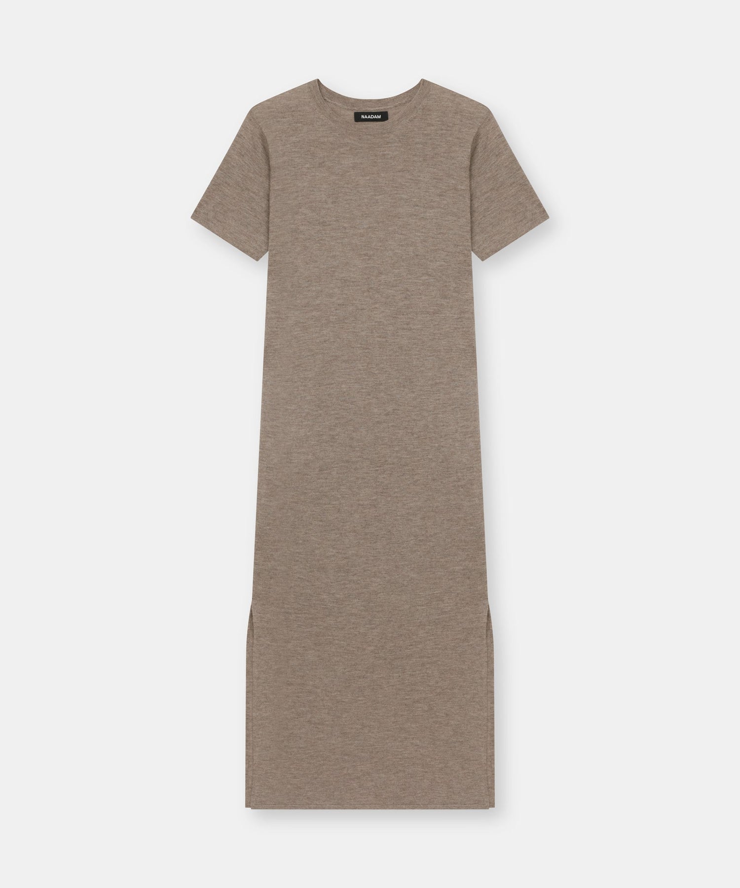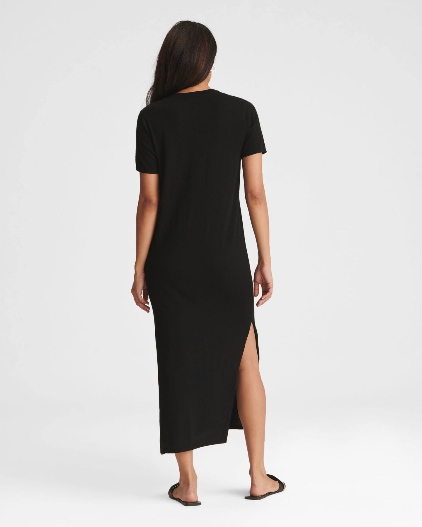 Instantly elevated. The Super Fine Cashmere T-Shirt Dress is a luxuriously-lightweight midi dress with a classic fit. It features a ribbed crew neckline, side slits, and an effortlessly-chic design. Crafted from Super Fine Cashmere: Our premium, 16gg cashmere that’s knit on top-of-the-line machinery. It’s extra-fine and silky-soft.