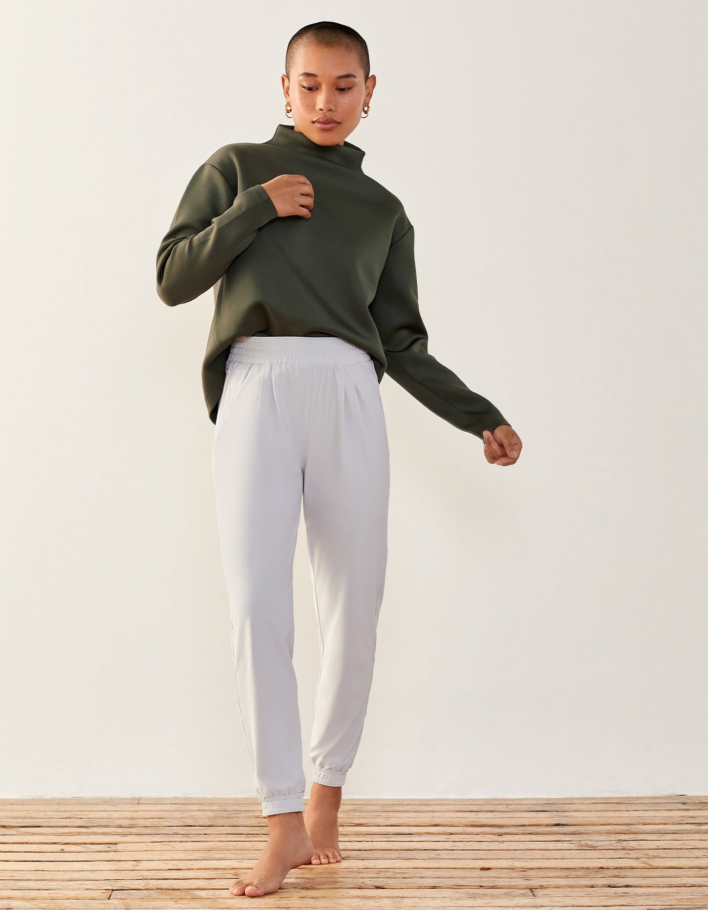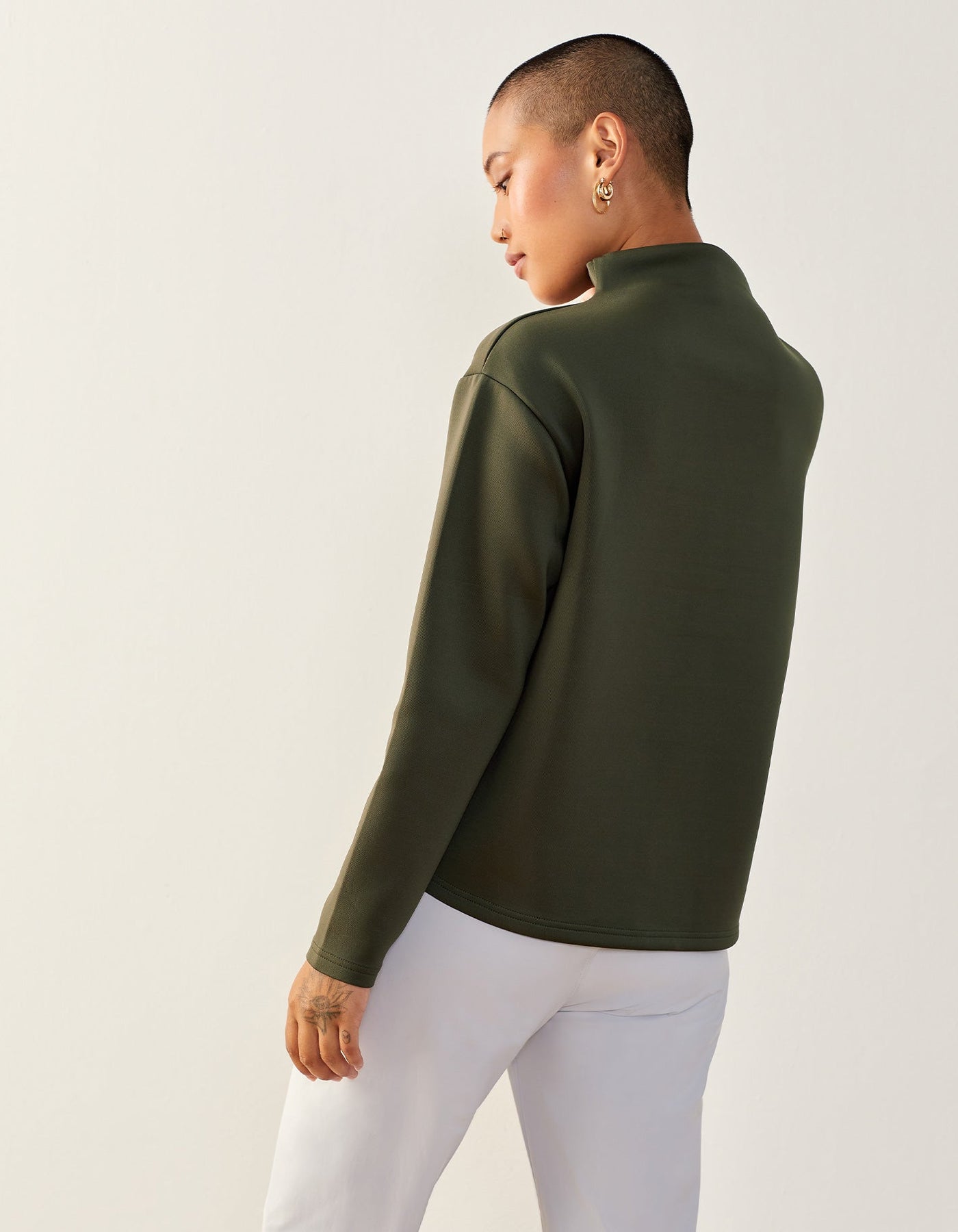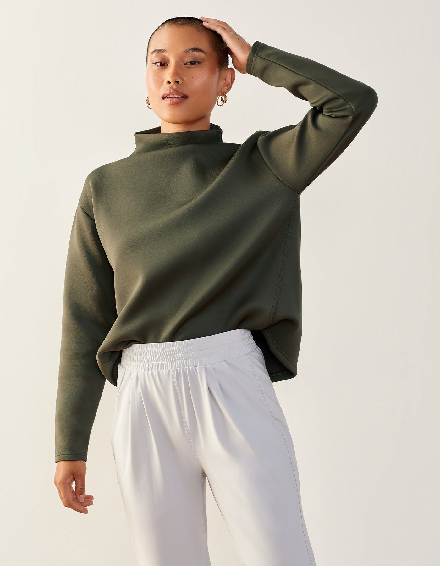 What makes Like A Boss a luxury sweatshirt? The neoprene-like fabric is made of recycled polyester and features a high neck to take you from yoga to the office.