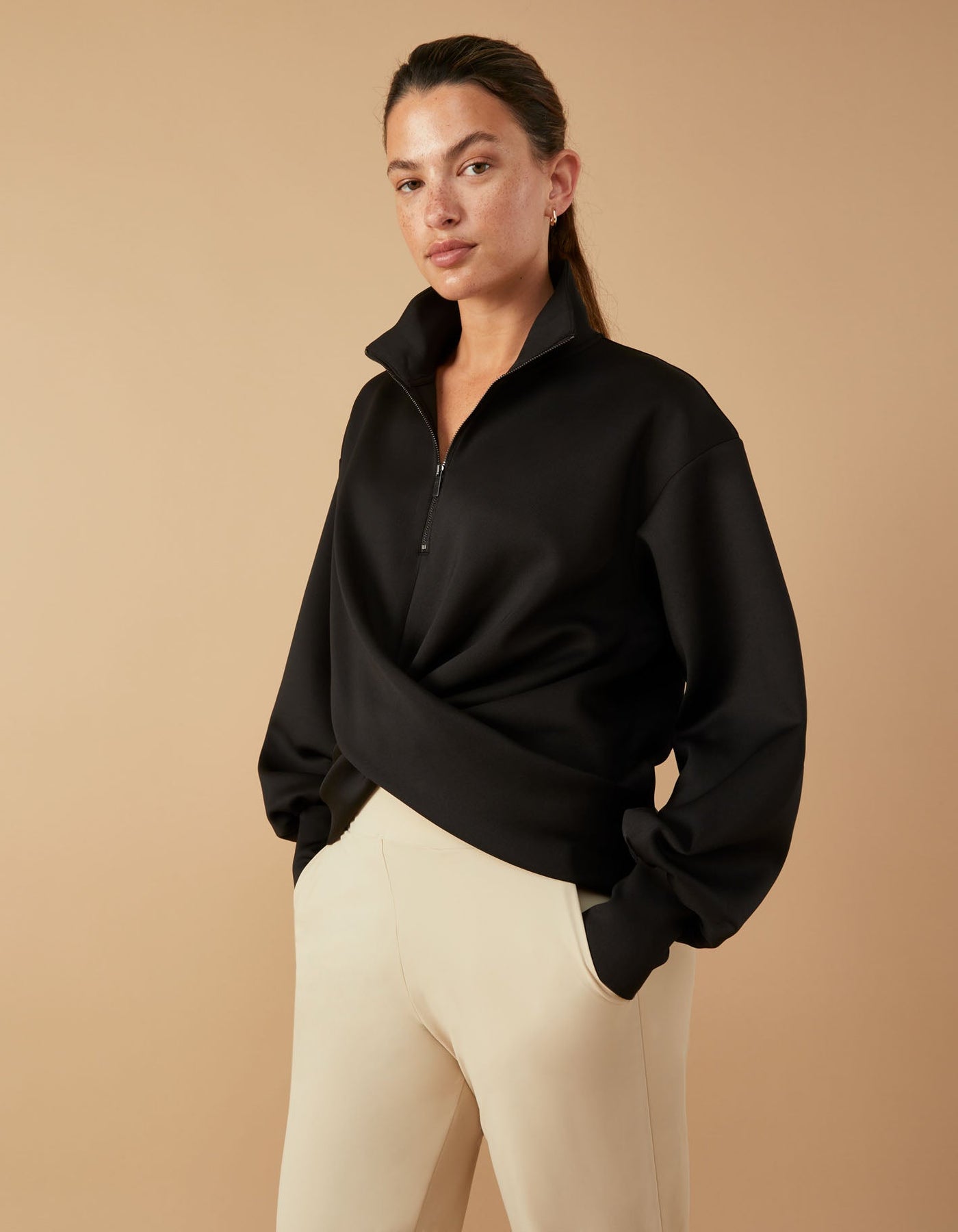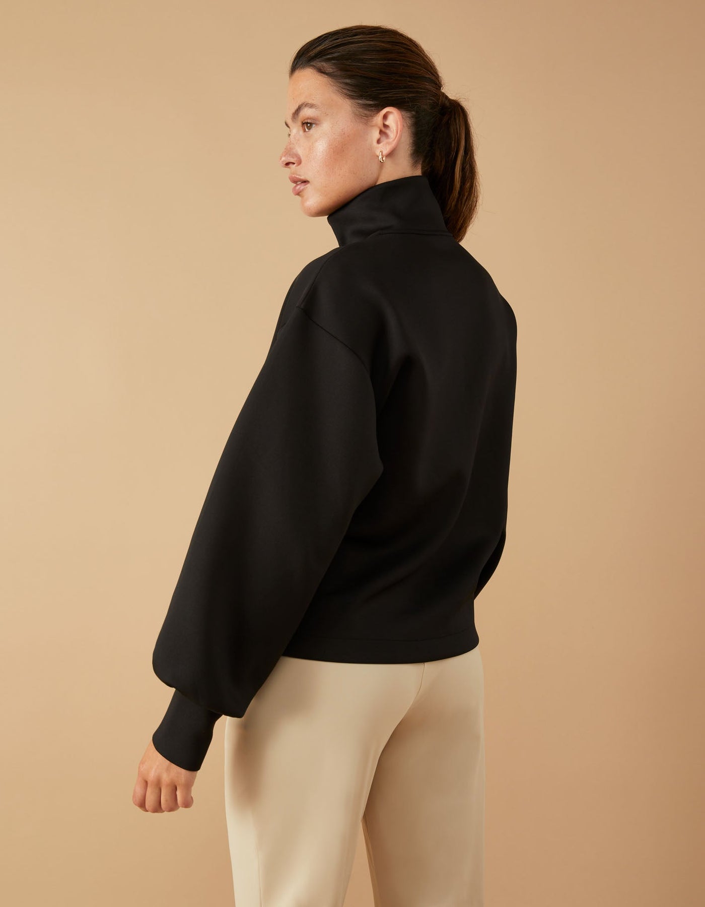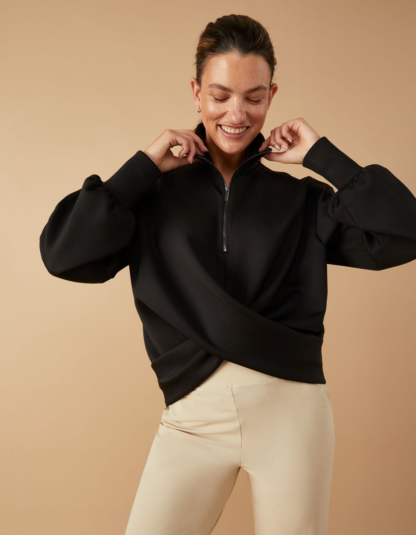 Your favorite Like a Boss fabric, with a twist: buttery soft, beautifully sculptural and featuring a high neck and quarter-zip design.