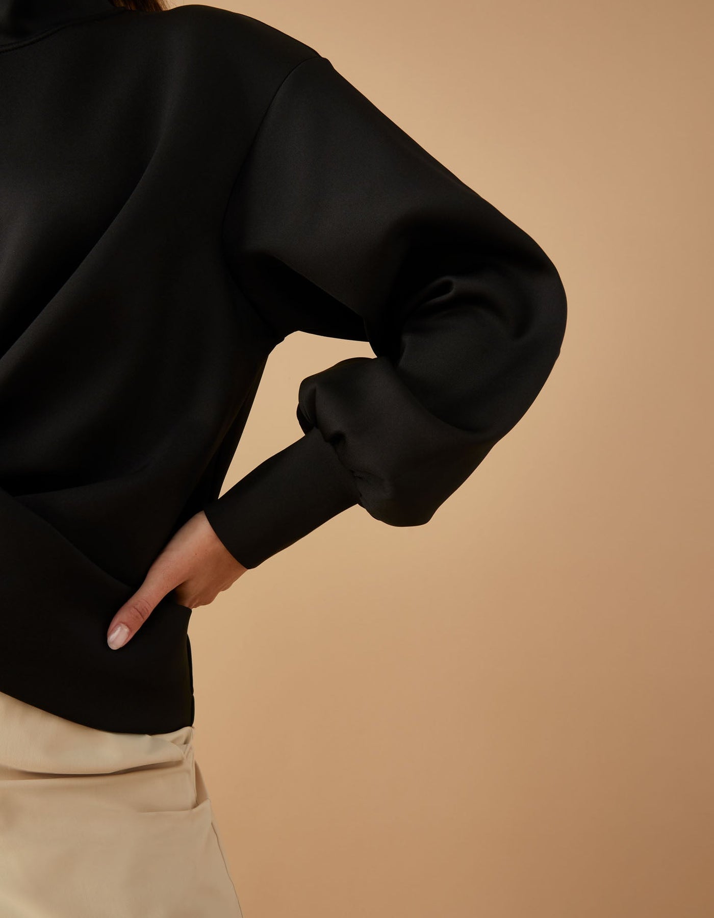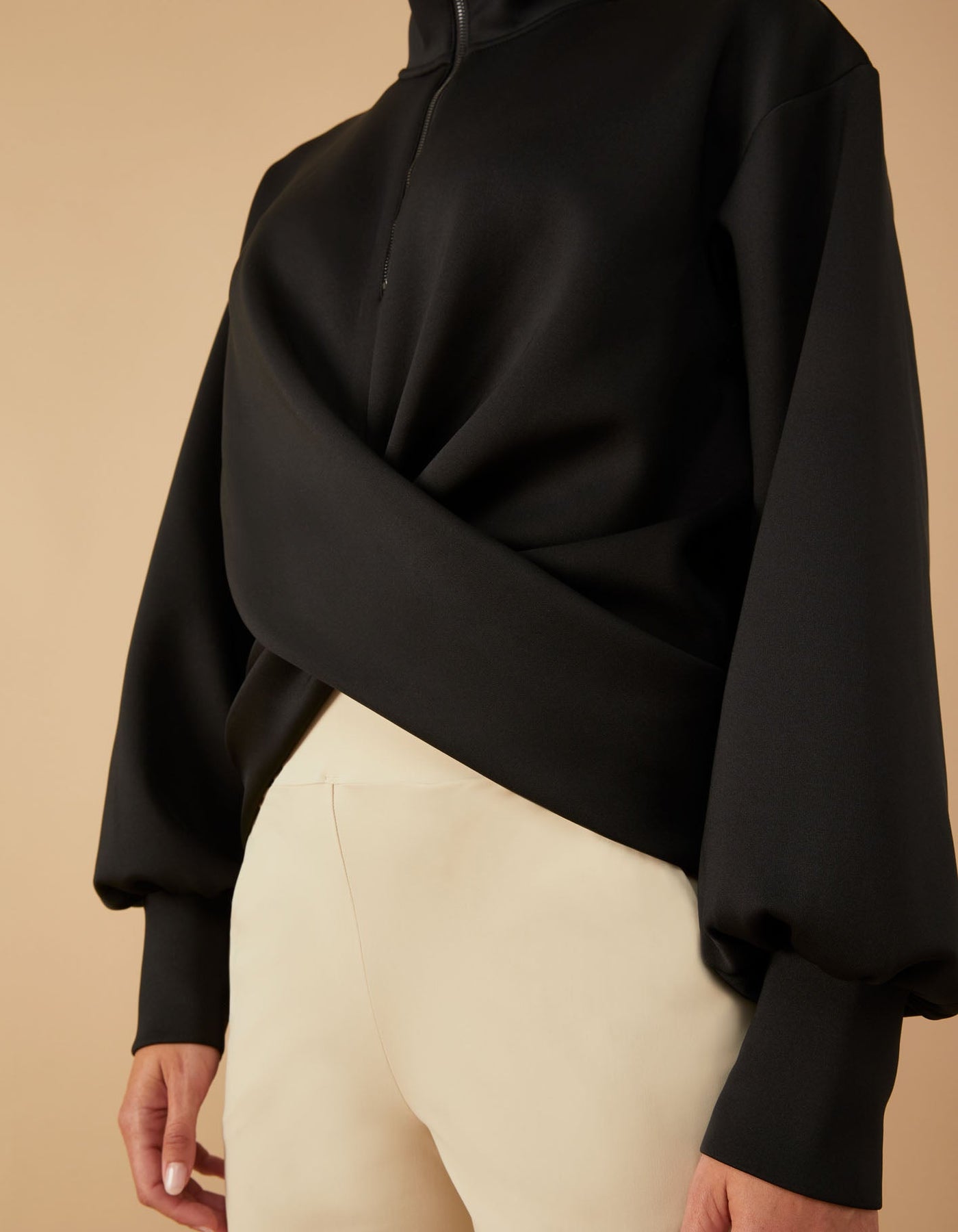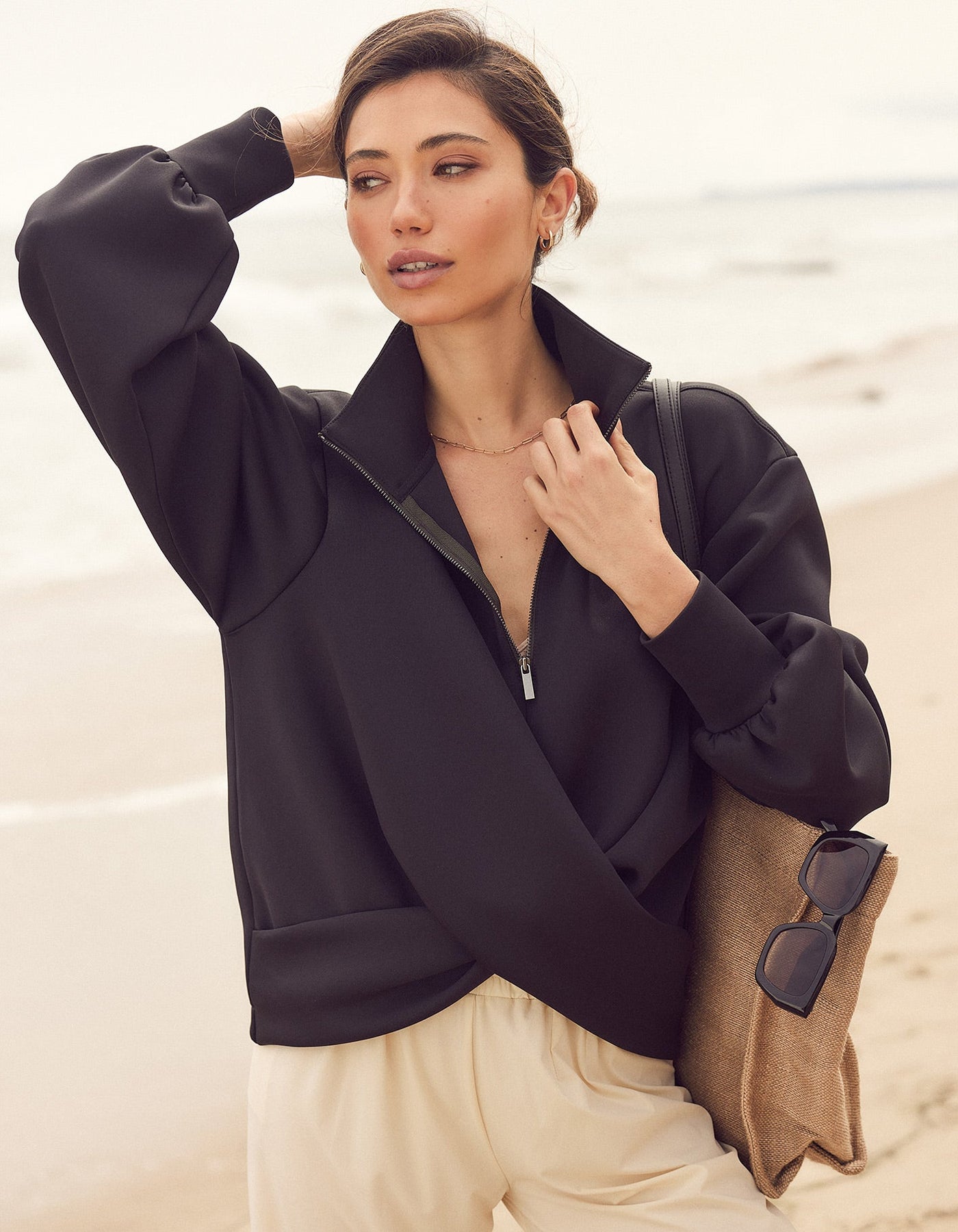 Your favorite Like a Boss fabric, with a twist: buttery soft, beautifully sculptural and featuring a high neck and quarter-zip design.