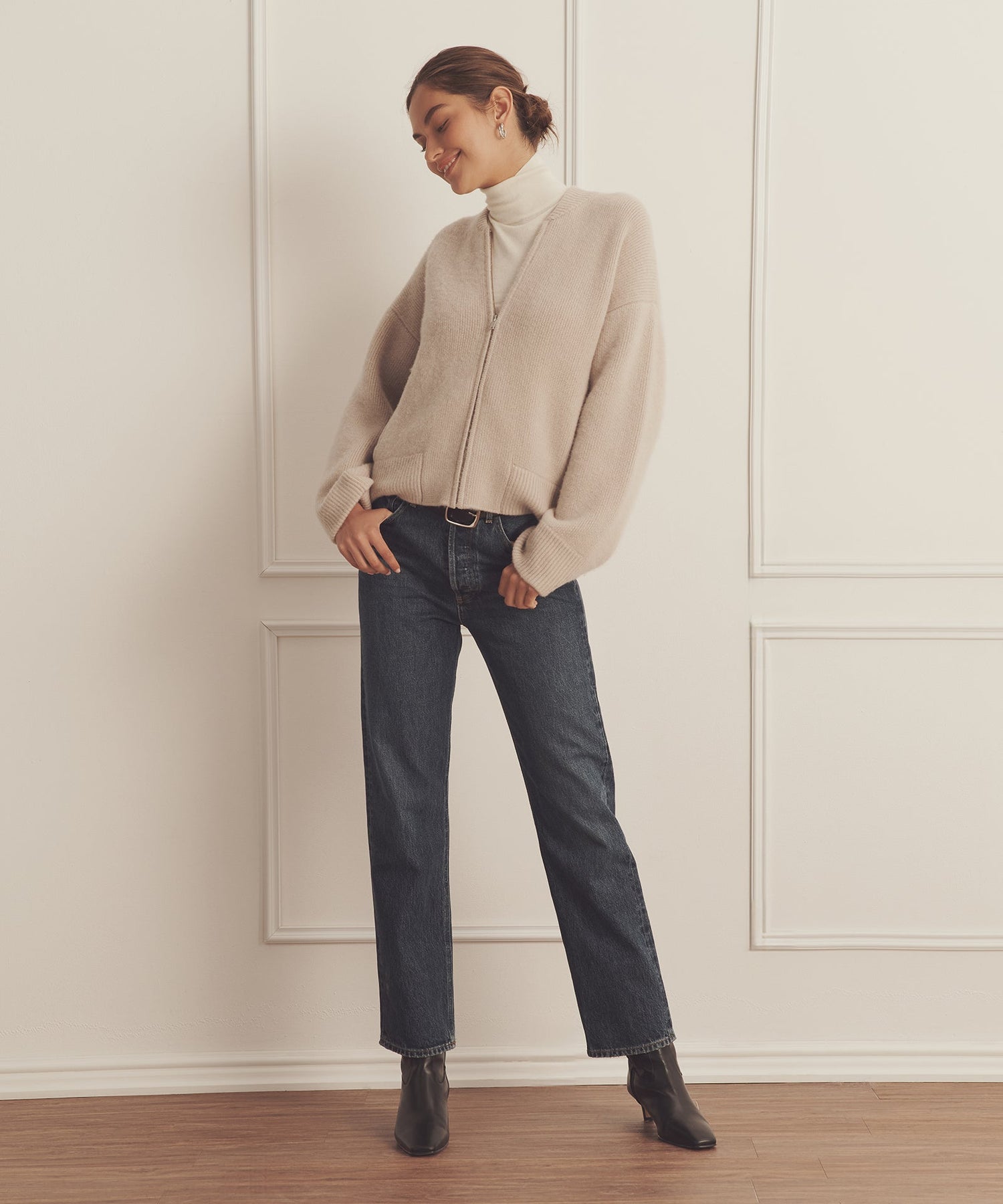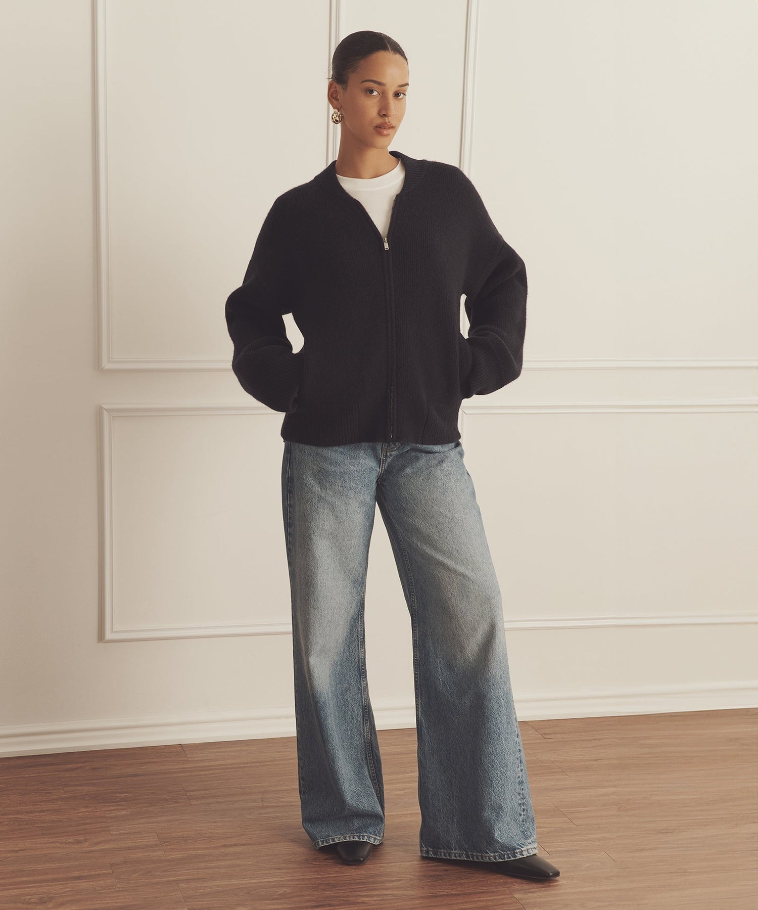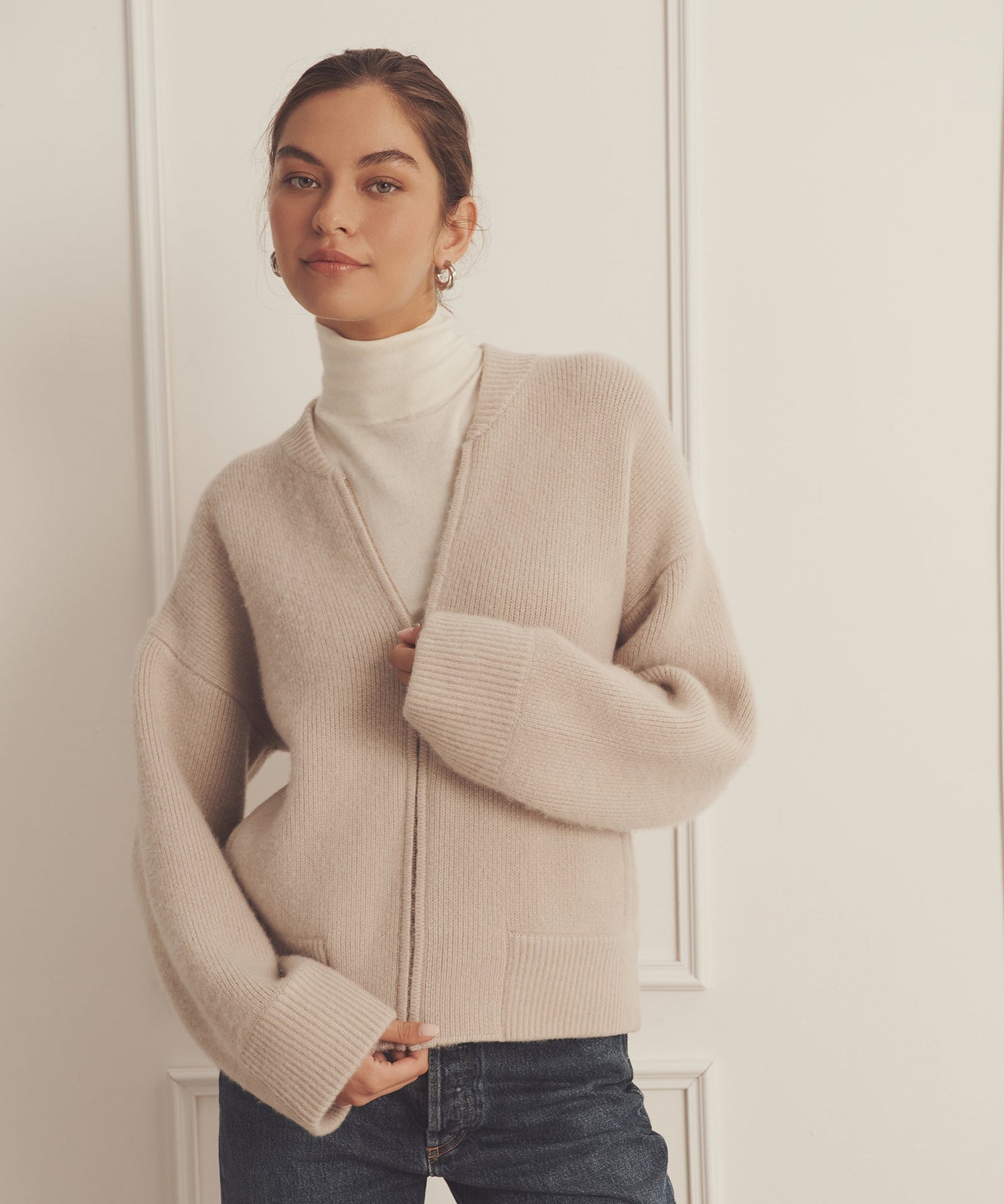 The Ultra Luxe Cashmere Bomber is a stylish sweater jacket made from our most decadent weight of cashmere. With a relaxed classic fit, it features ribbed details, a zip front, and a bomber jacket silhouette. Crafted from 100% premium, sustainable cashmere.