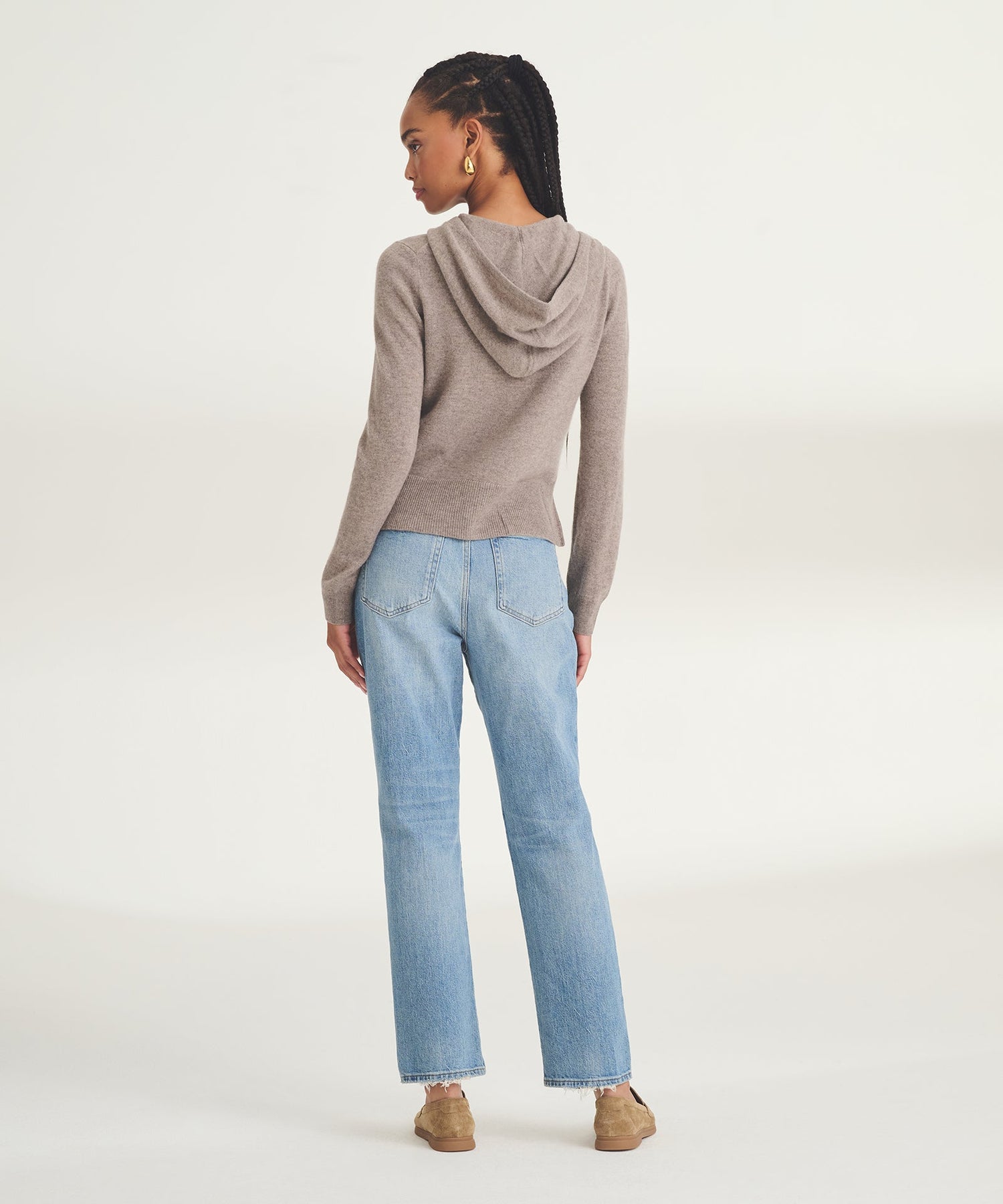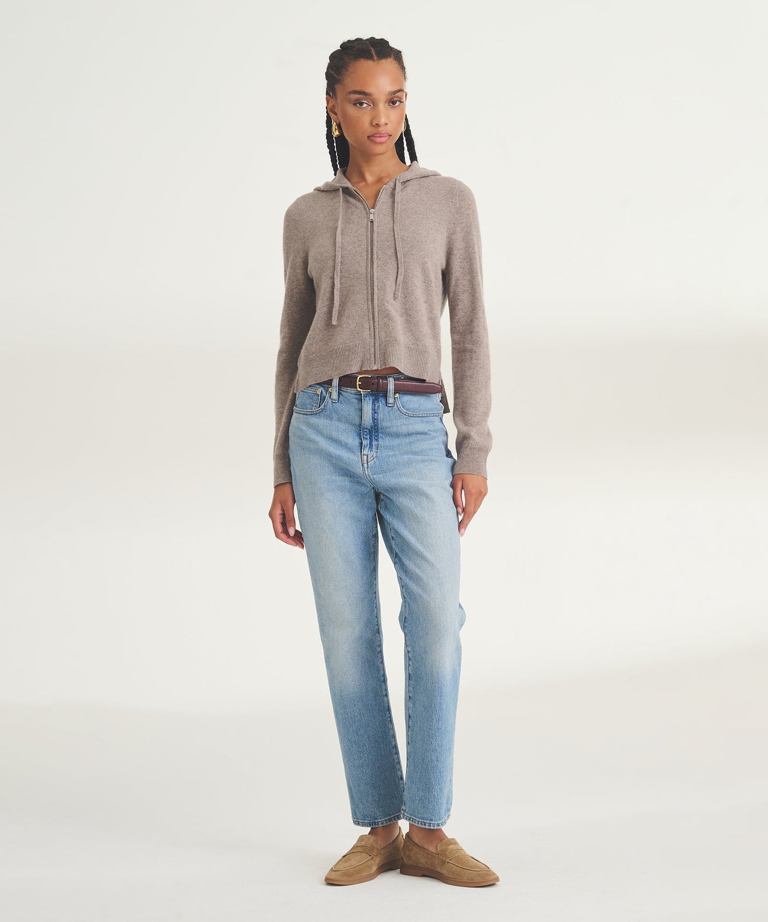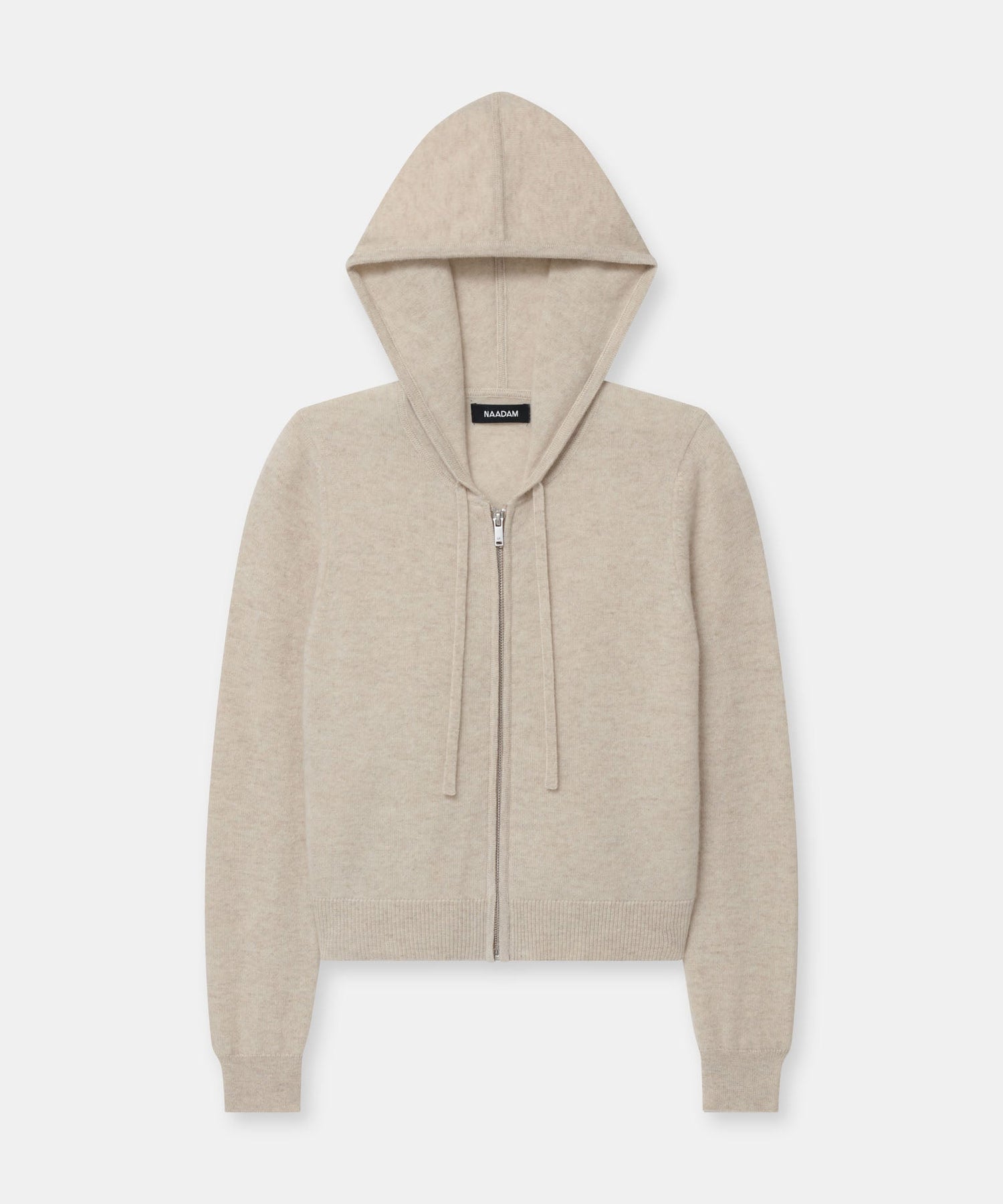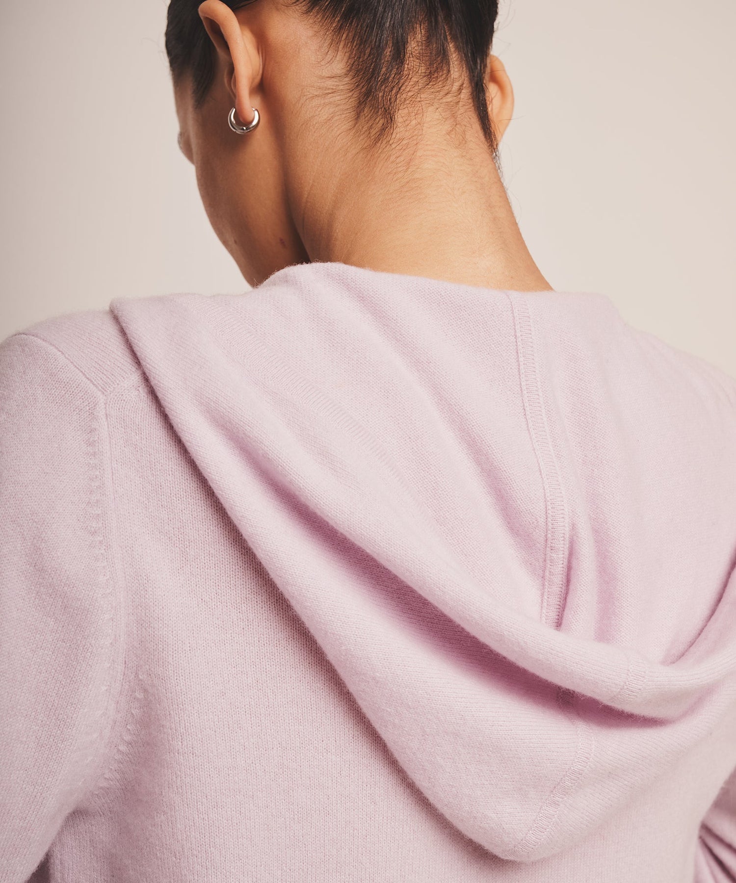 The Cashmere Cropped Zip Up Hoodie is an elevated essential with a classic fit and short classic length designed to skim the top of the hip bones. It features a drawstring hood, side slits, high-low hem, ribbed details, and full-zip construction. Crafted from 100% premium, sustainable cashmere.