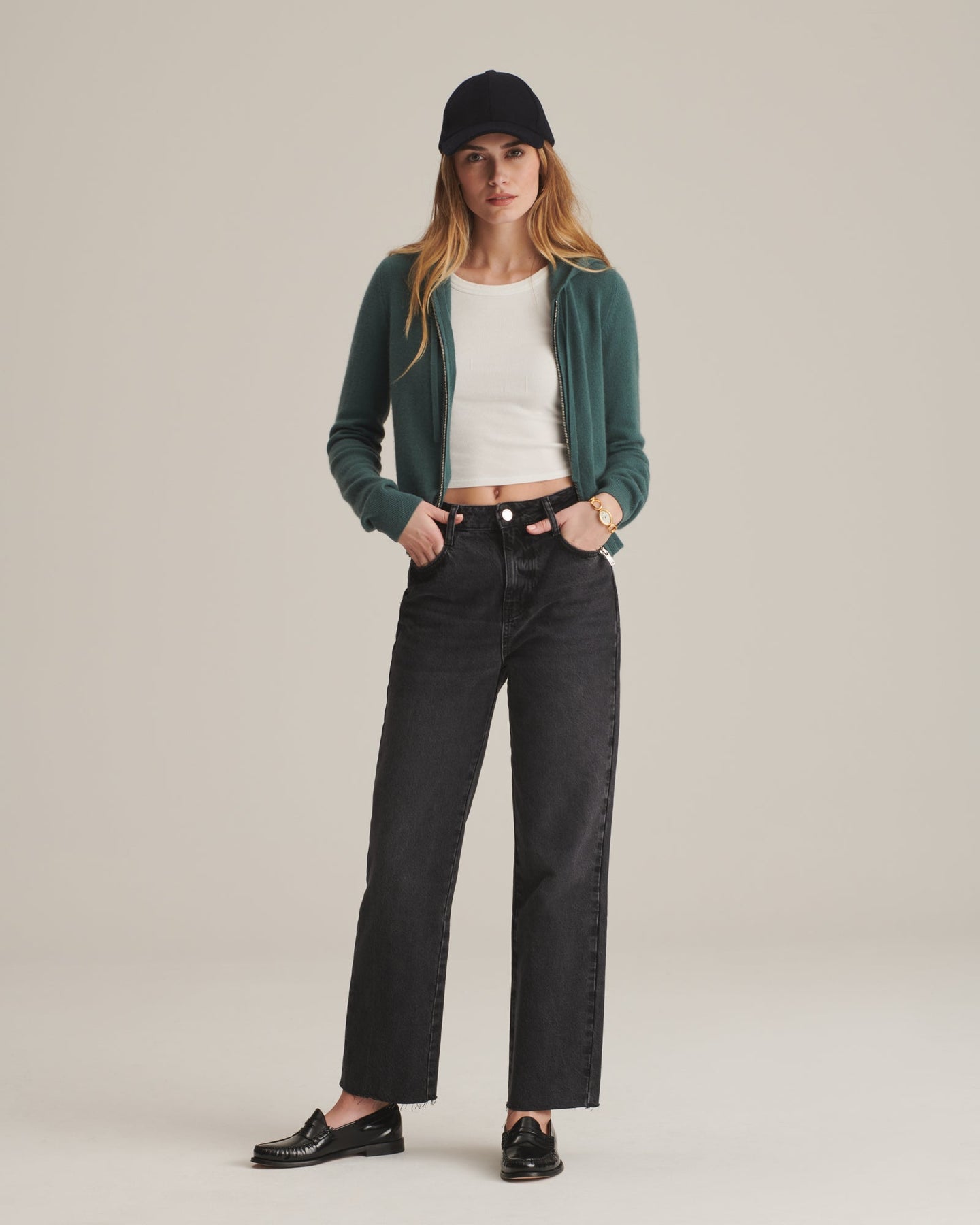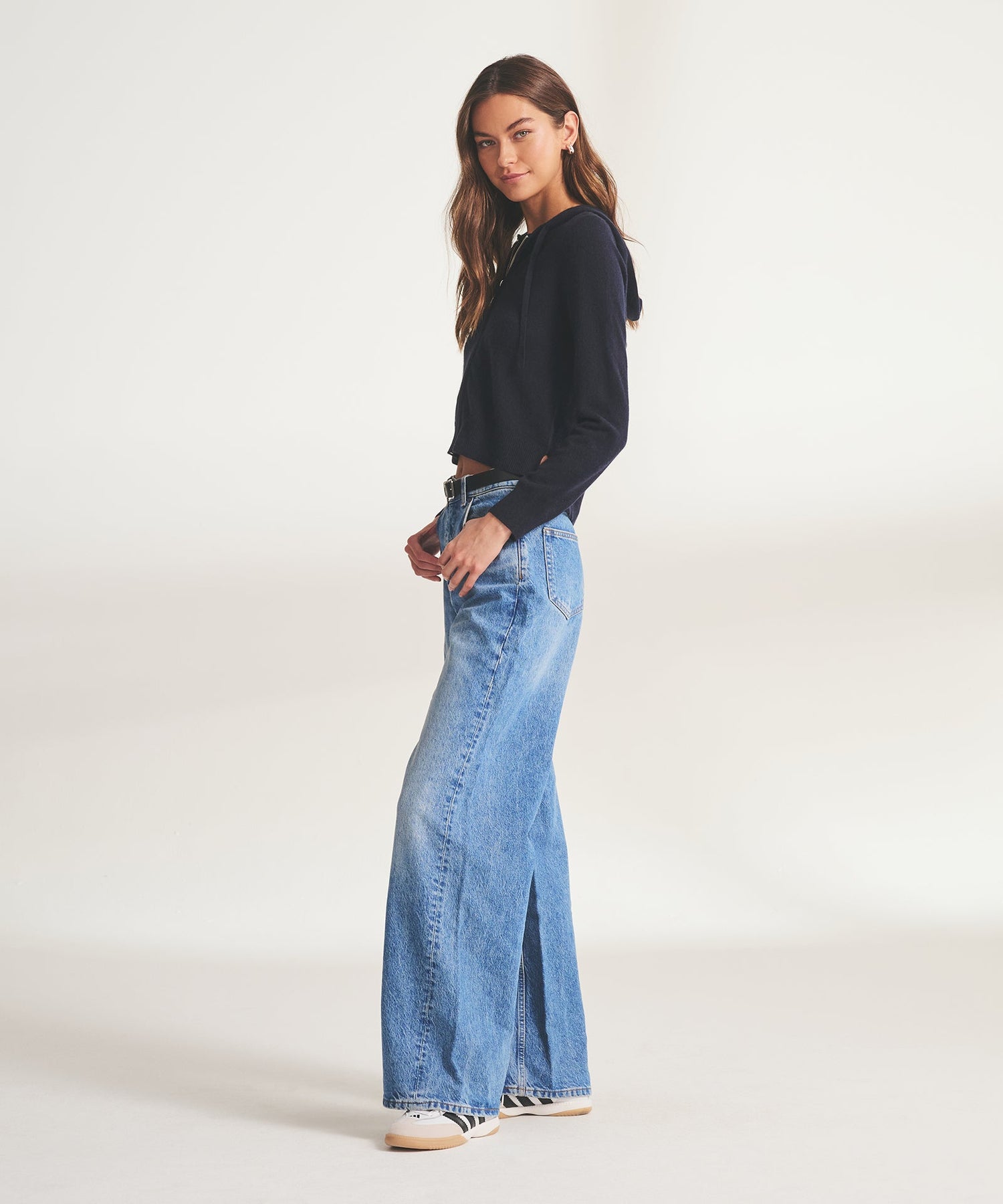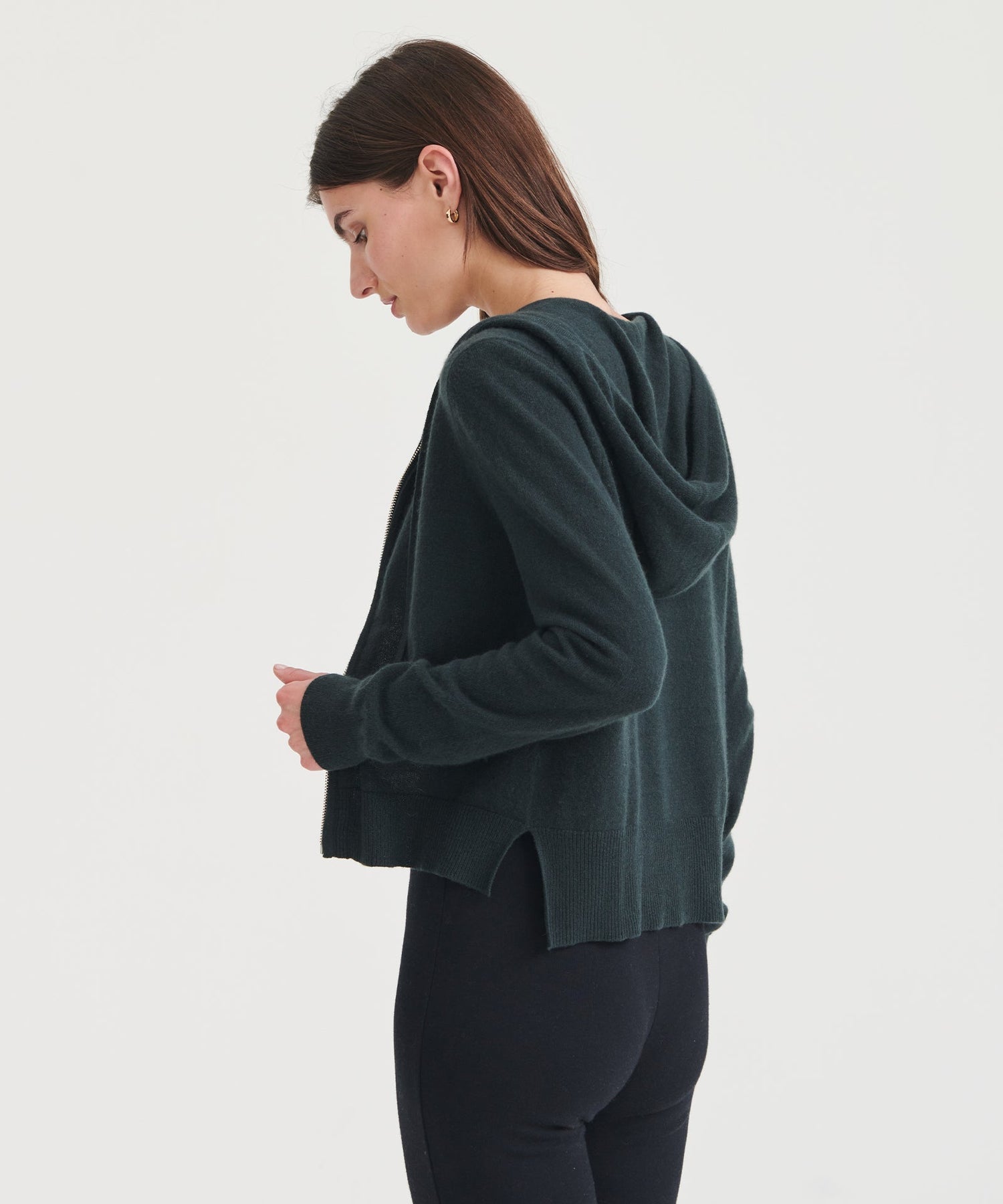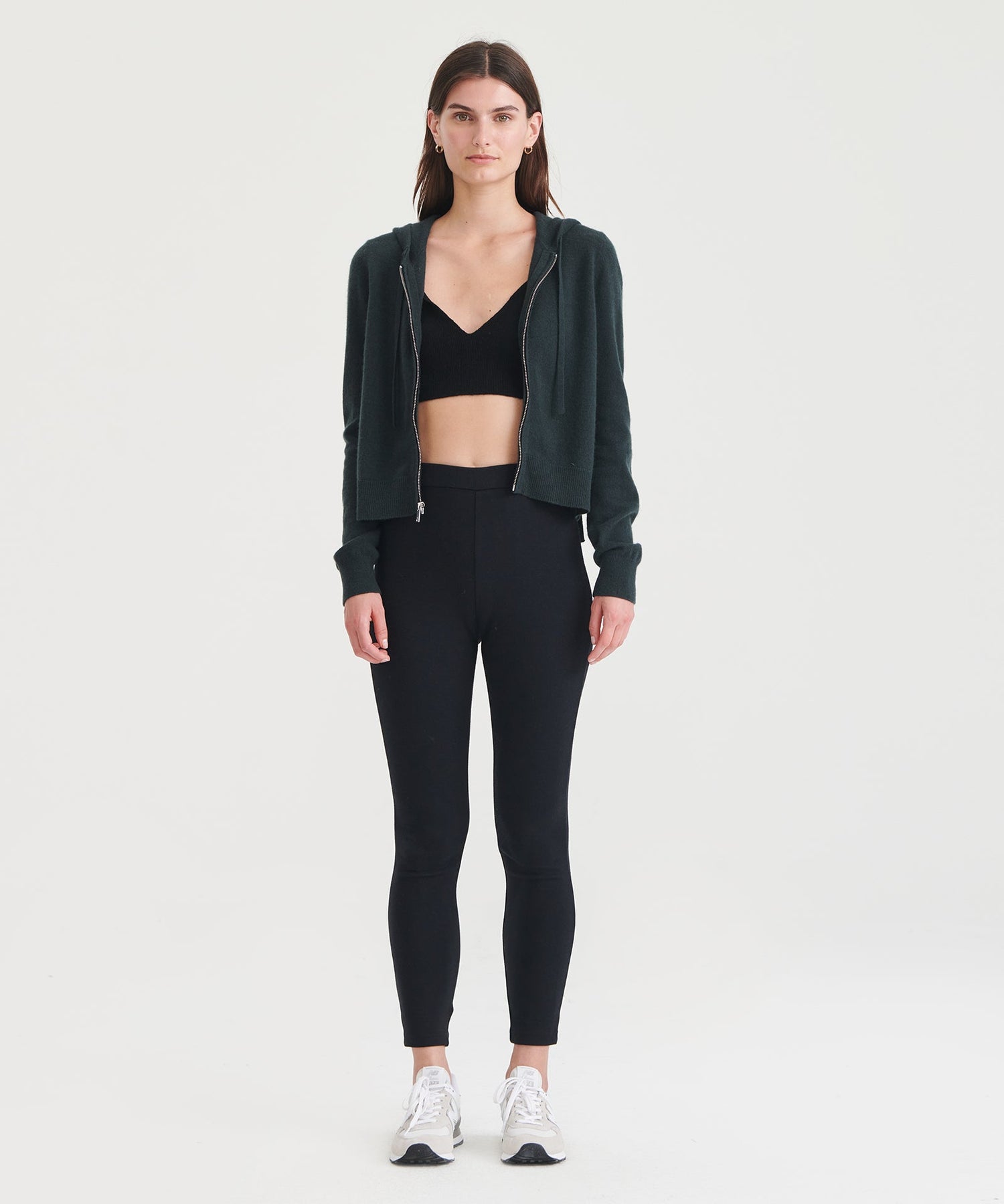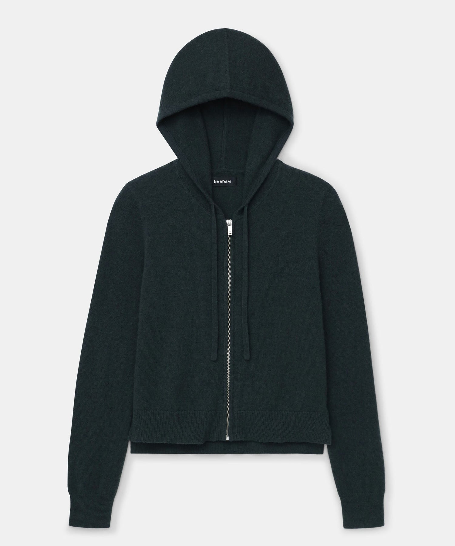 The Cashmere Cropped Zip Up Hoodie is an elevated essential with a classic fit and short classic length designed to skim the top of the hip bones. It features a drawstring hood, side slits, high-low hem, ribbed details, and full-zip construction. Crafted from 100% premium, sustainable cashmere.
