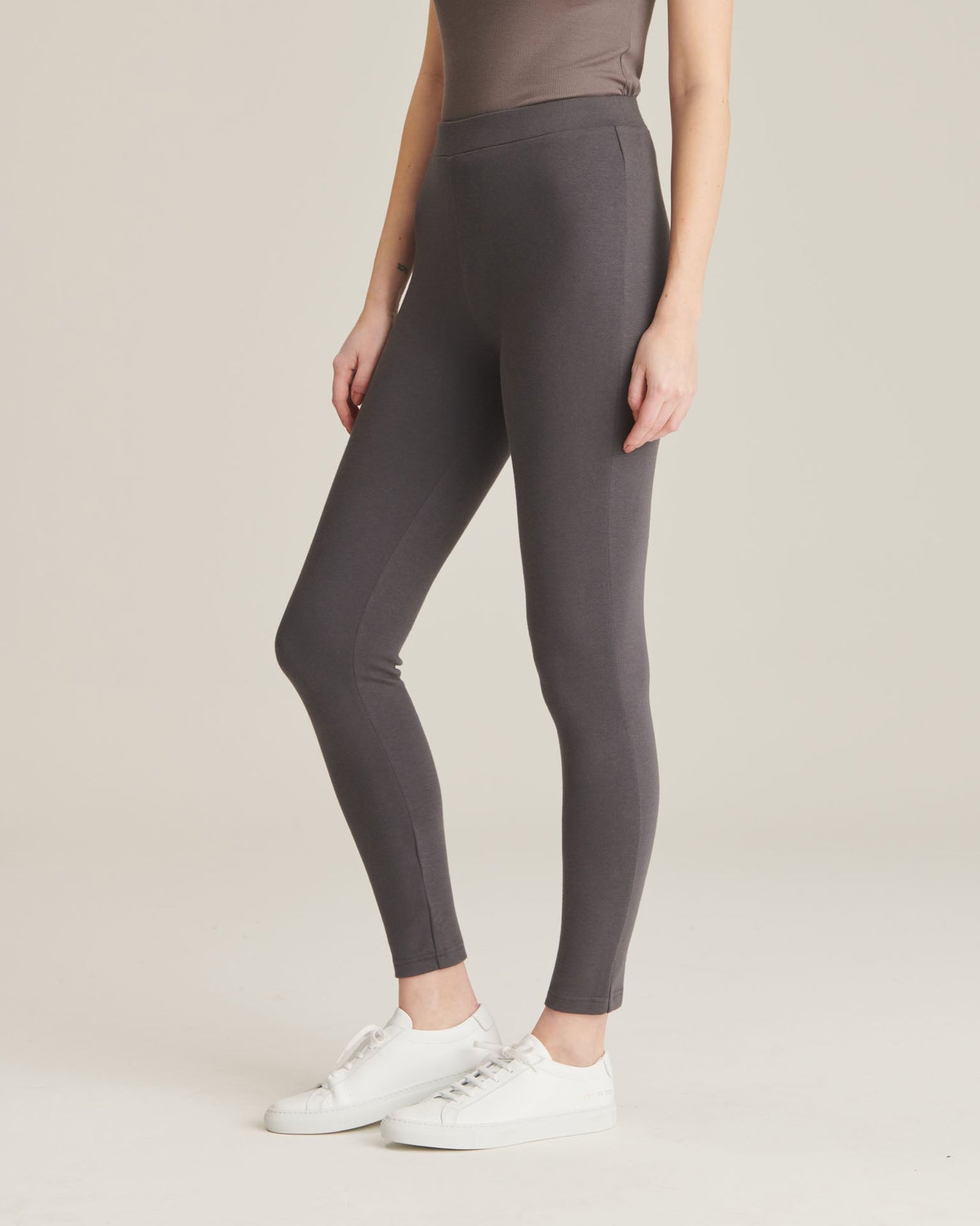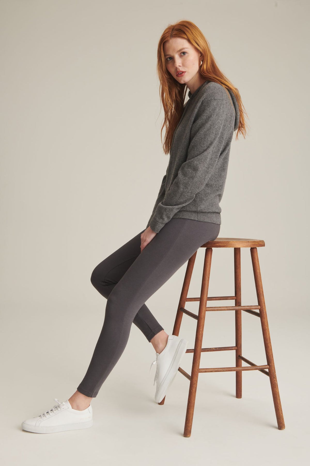 *The* legging. The Modal Cashmere Legging is a sleek, chic, an undeniably elevated wardrobe staple. It’s crafted with micro modal (a sustainable, silky-smooth fiber derived from tree pulp) that we tightly knit with cotton, cashmere, and a hint of spandex to give it a smooth, body-hugging fit that moves with you without losing its shape. Looks polished with everything from blazers to hoodies.