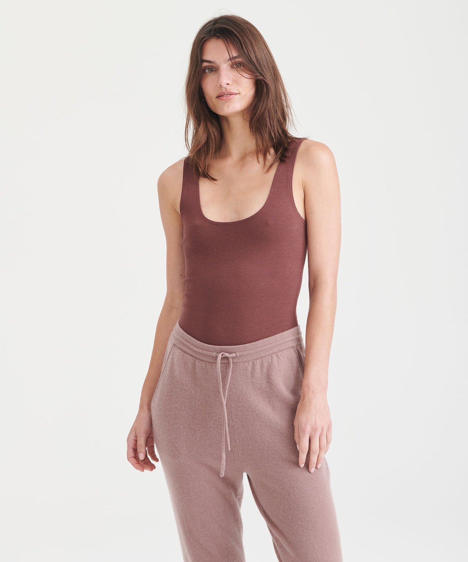 The Modal Cashmere Sleeveless Bodysuit is the secret recipe to a sleek, comfortable, body-hugging staple that instantly elevates any outfit. It features a scoop front and back, snap closure, no-show thong silhouette, and is knit with a modal-cashmere blend that feels great, moves with you, and doesn’t lose its shape. Perfect for wearing all day long and seamlessly transitioning right into your evening agenda.