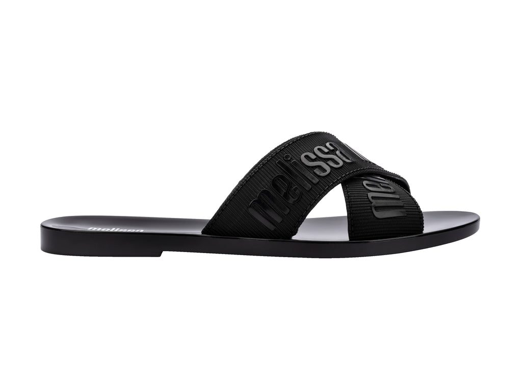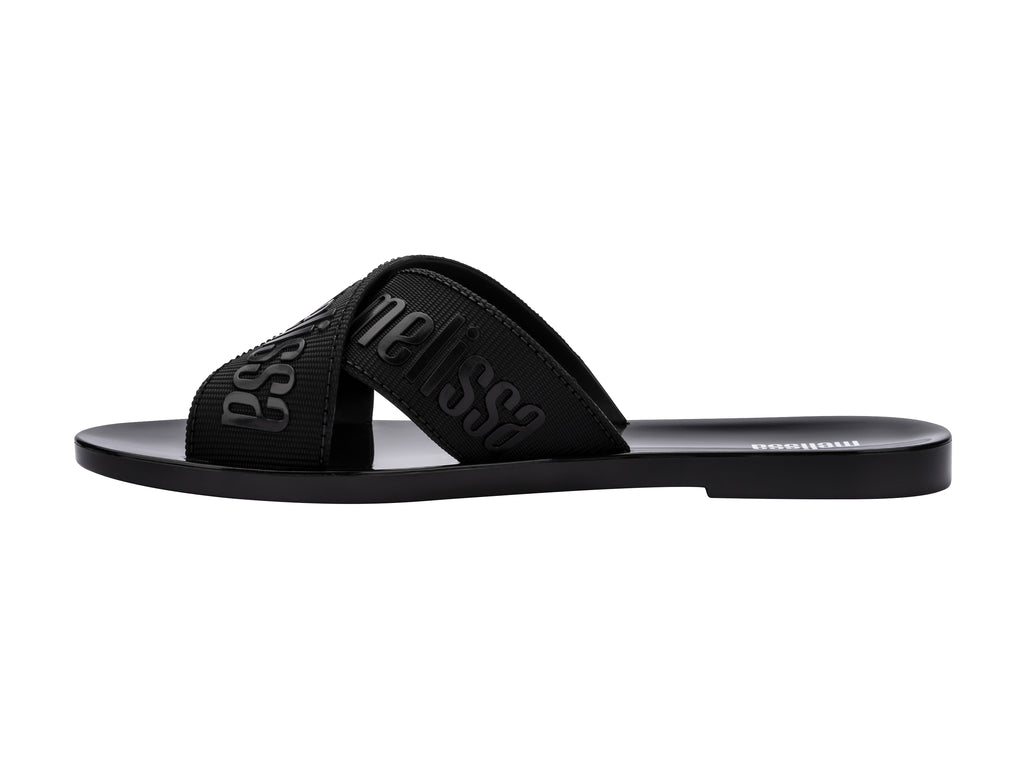 Slide into sunshine with the Melissa M Lover Slide, your perfect lightweight companion for those warm-weather days. Their upper features two thick cross straps, laser-textured with a polished Melissa logo, adding a touch of cool-girl to any laid-back style.