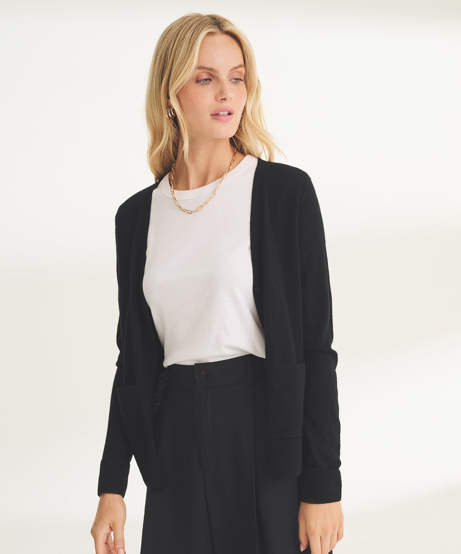 The Super Fine Cashmere Cardigan is a luxuriously-lightweight knit with a slim fit and classic length. It features a v neckline, button front, patch pockets, and silky-soft feel. Crafted from 100% premium, extra-fine cashmere on top-of-the-line machinery.
