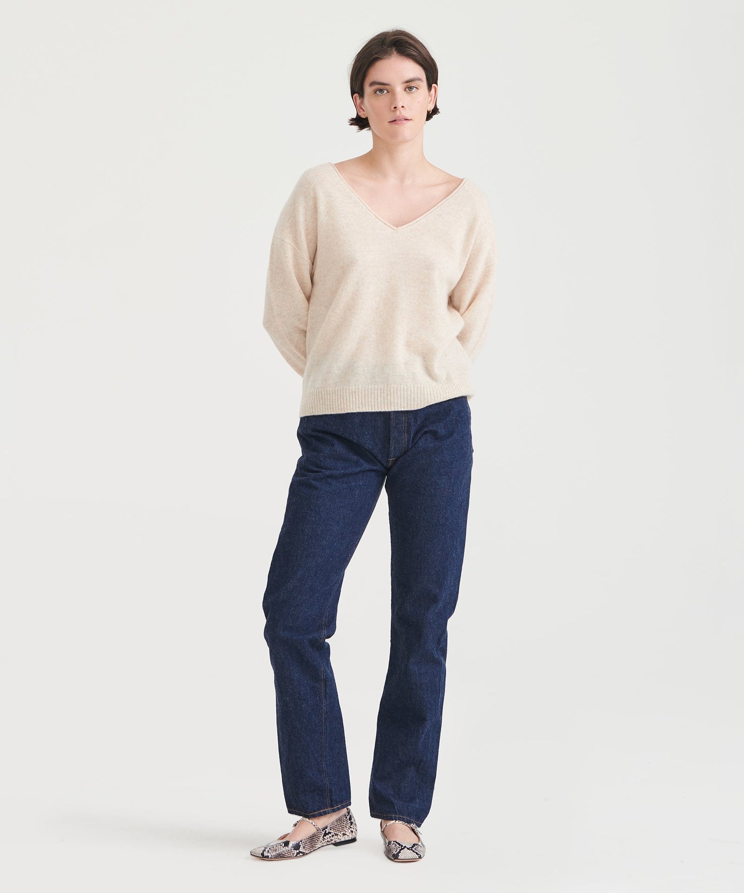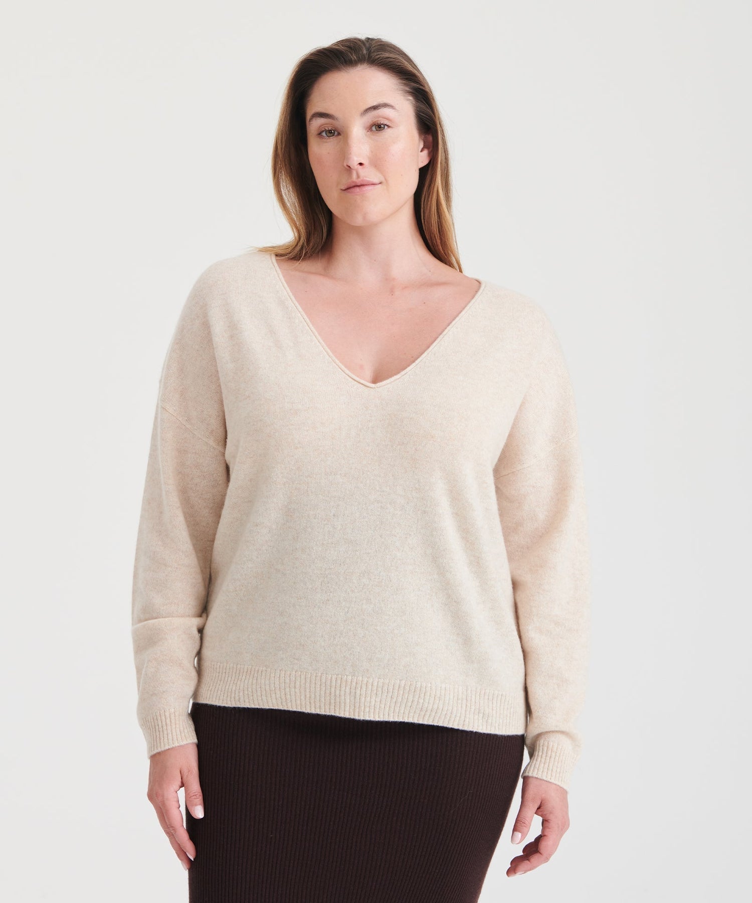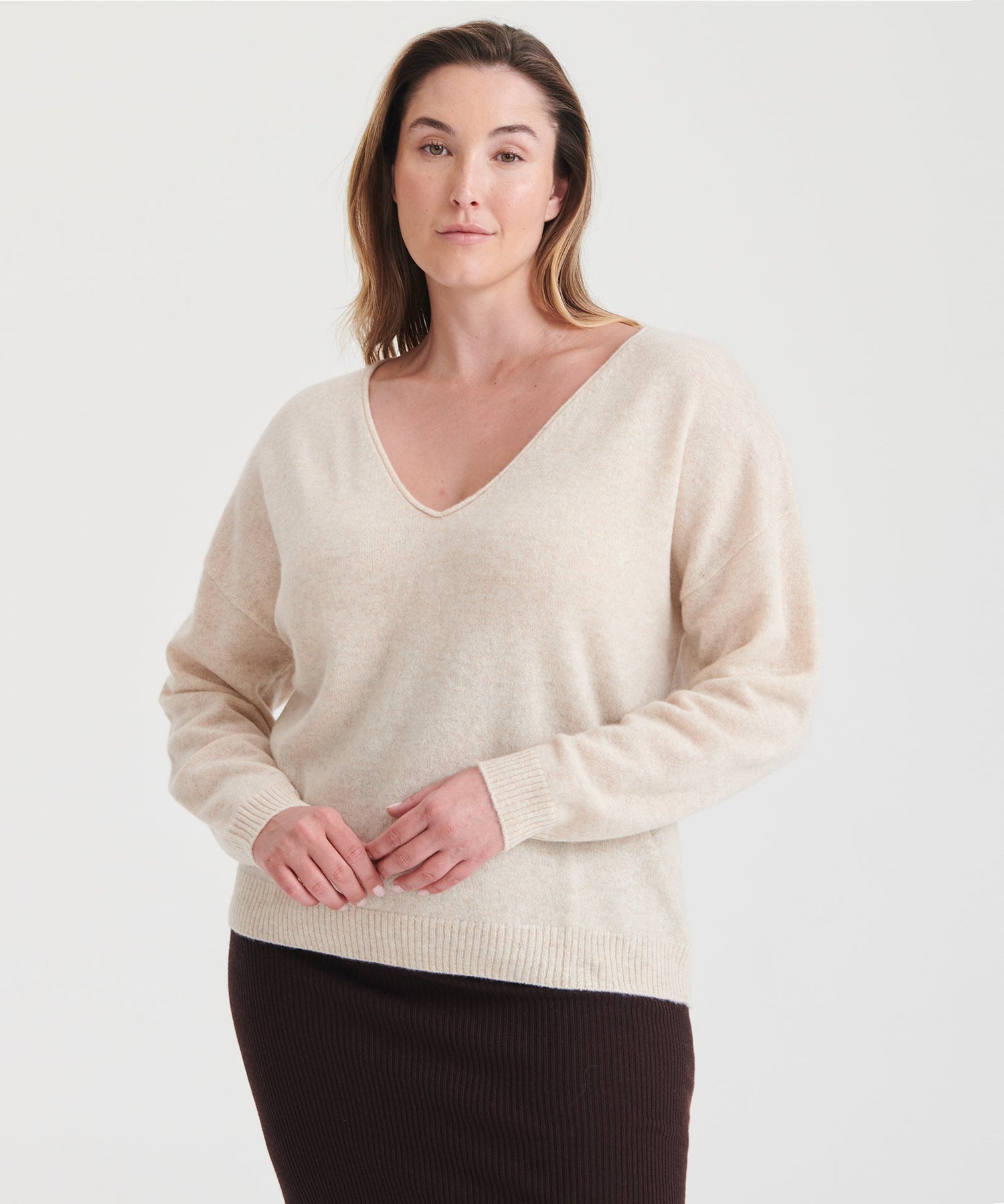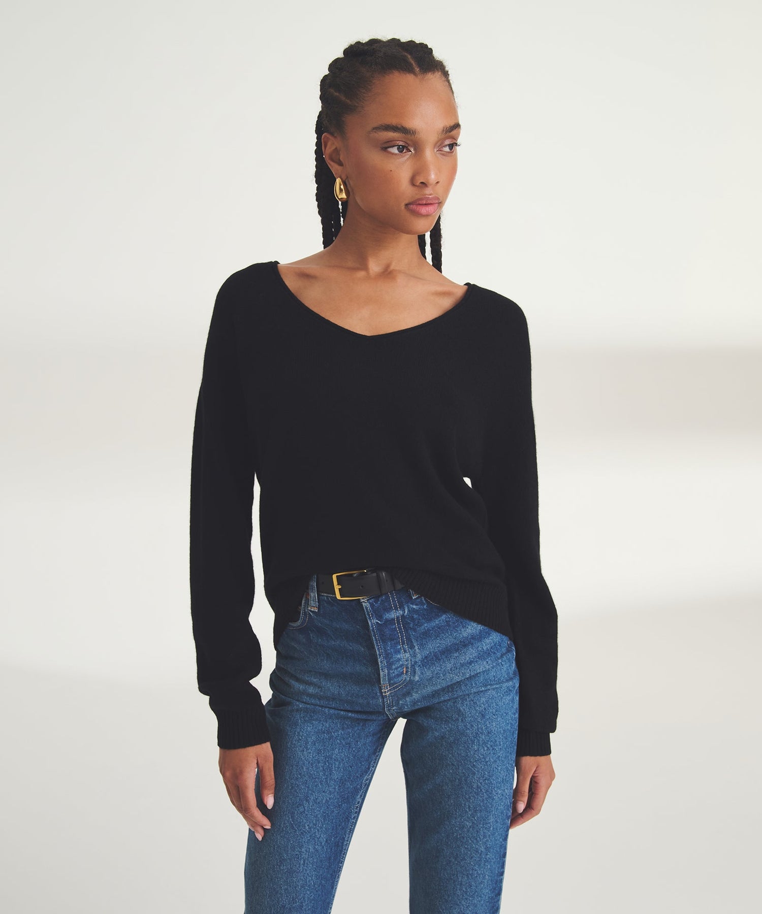 Essential. The Lightweight Cashmere V-Neck Sweater is an elevated knit with a relaxed classic fit and classic length. It features a wide v neckline with a subtle roll, drop shoulder, and ribbed details. Crafted from Lightweight Cashmere: a breathable, layerable cashmere that’s perfect all year round.