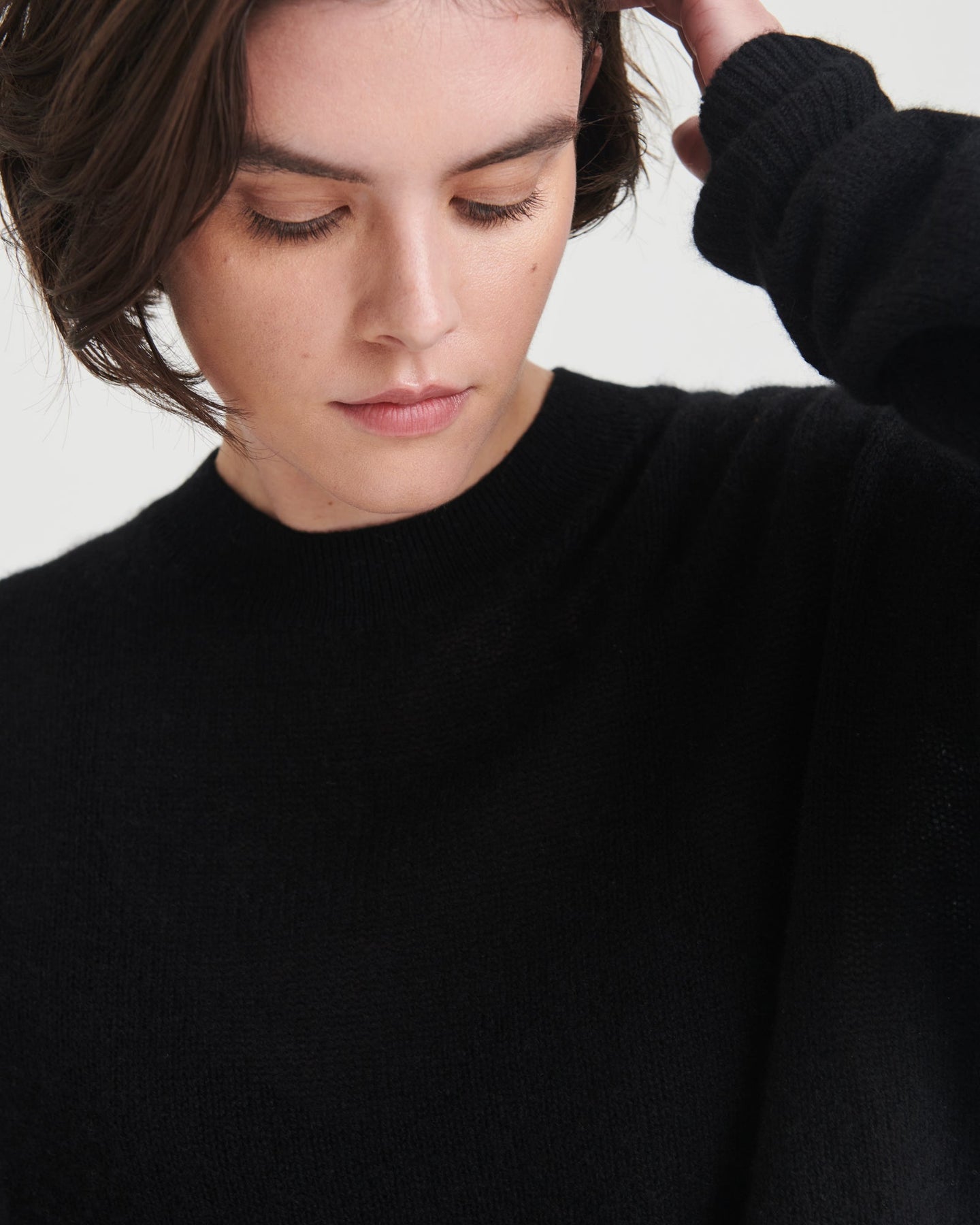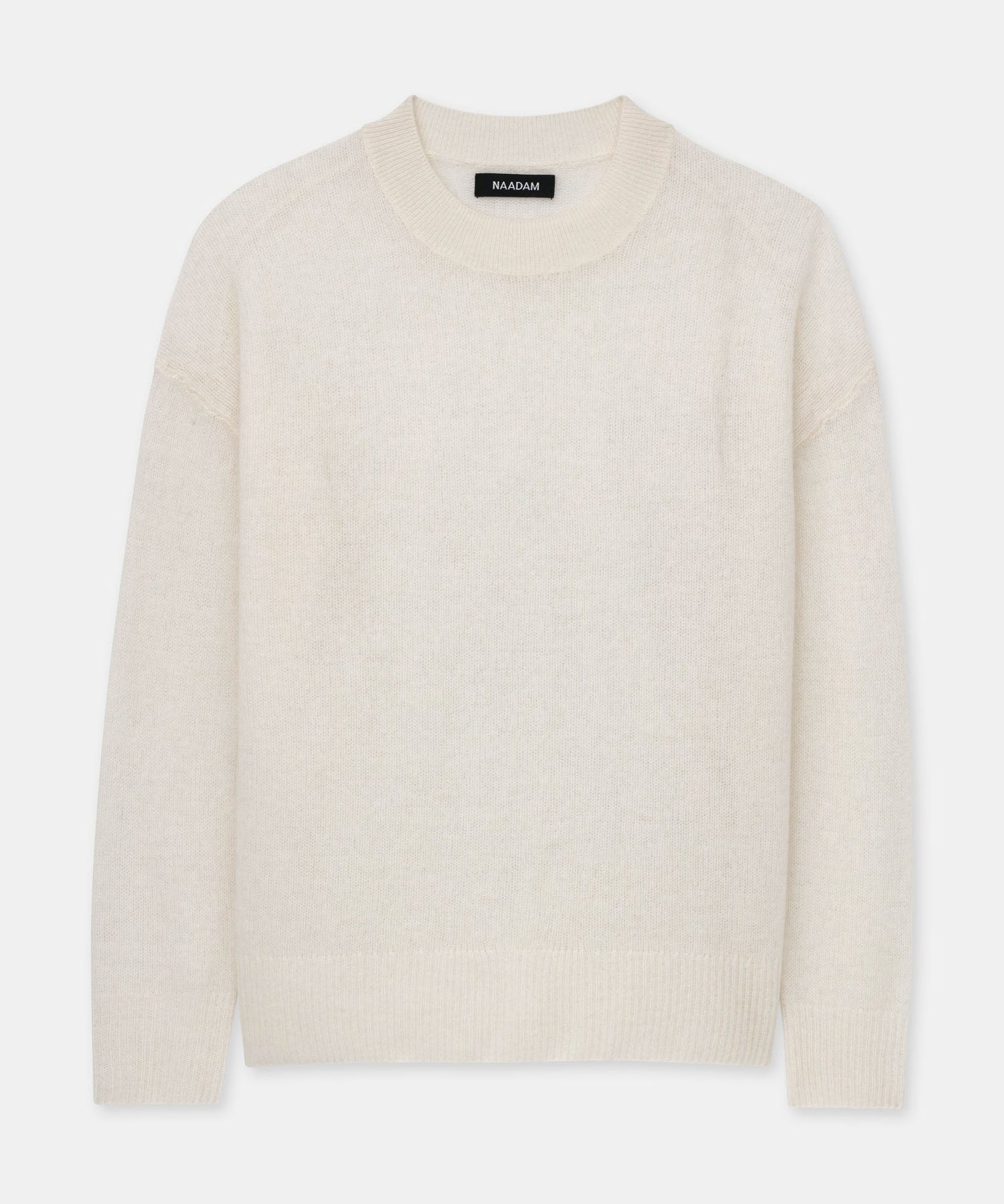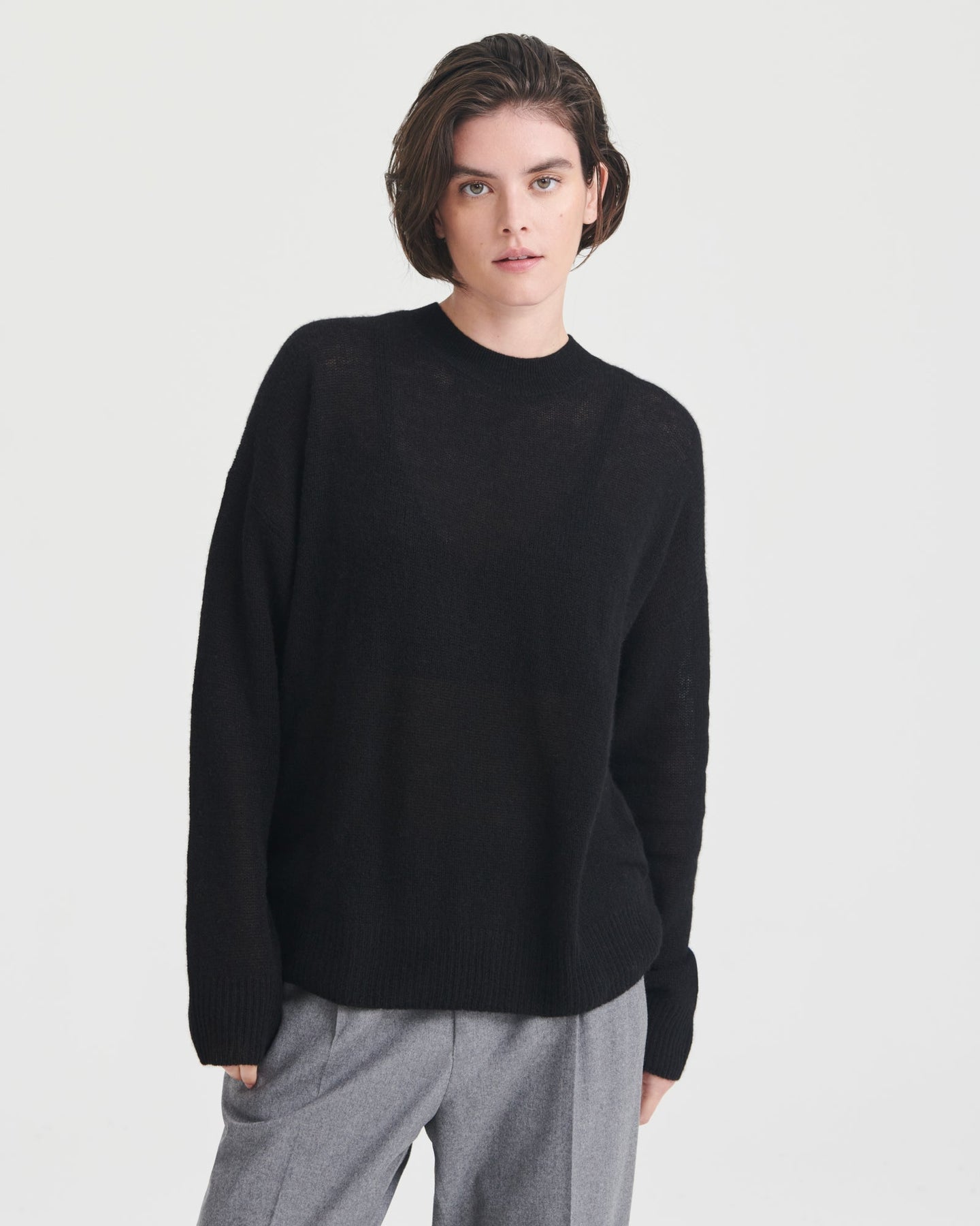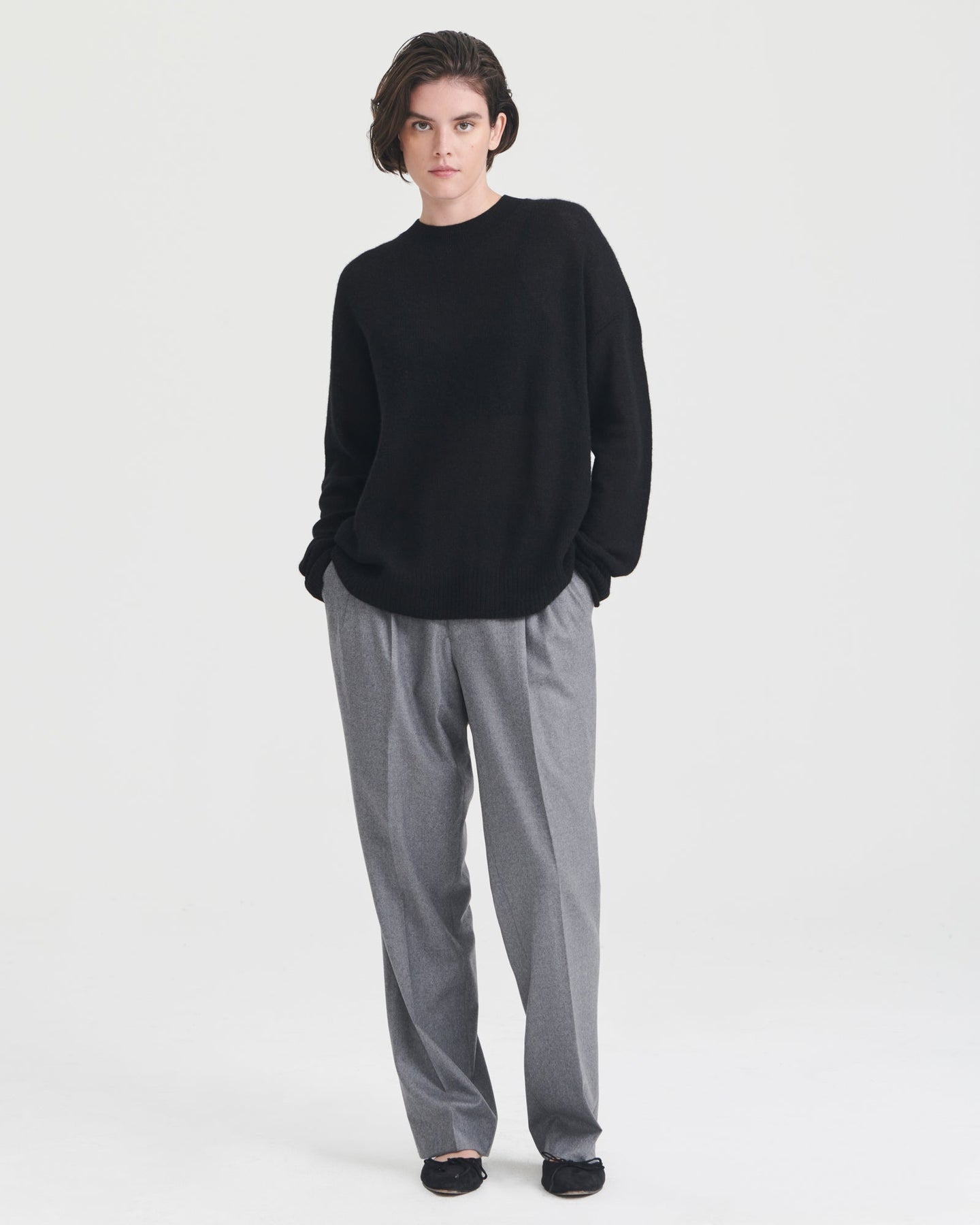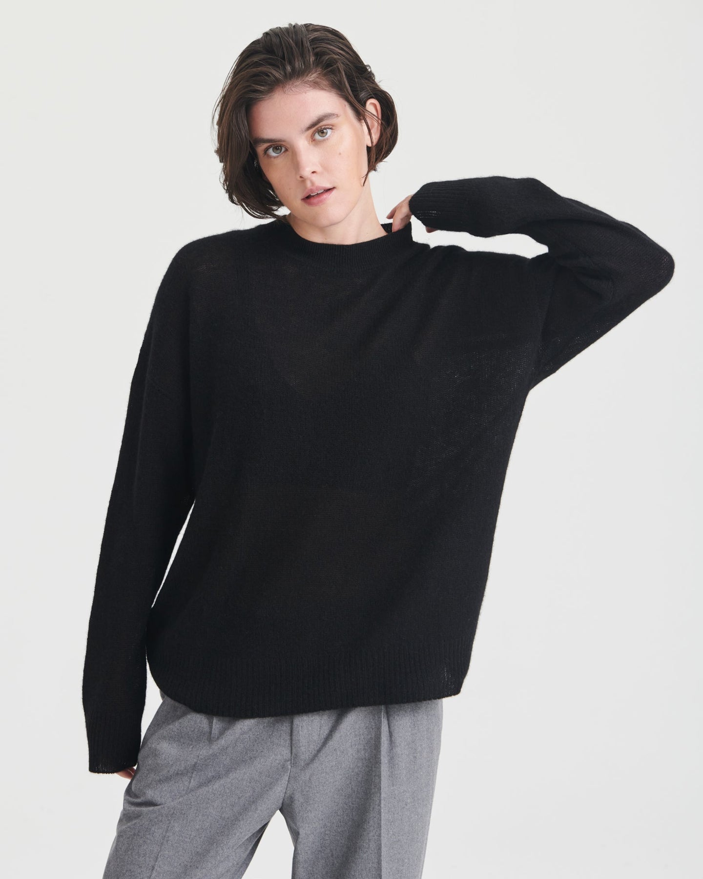 The Featherweight Cashmere Crewneck Sweater is a delicate, lightweight sweater with a relaxed classic fit and long classic length designed to sit at the center of the hips. It features a crew neckline, drop shoulders, and ribbed details. Crafted from a sheer, finely knit cashmere.