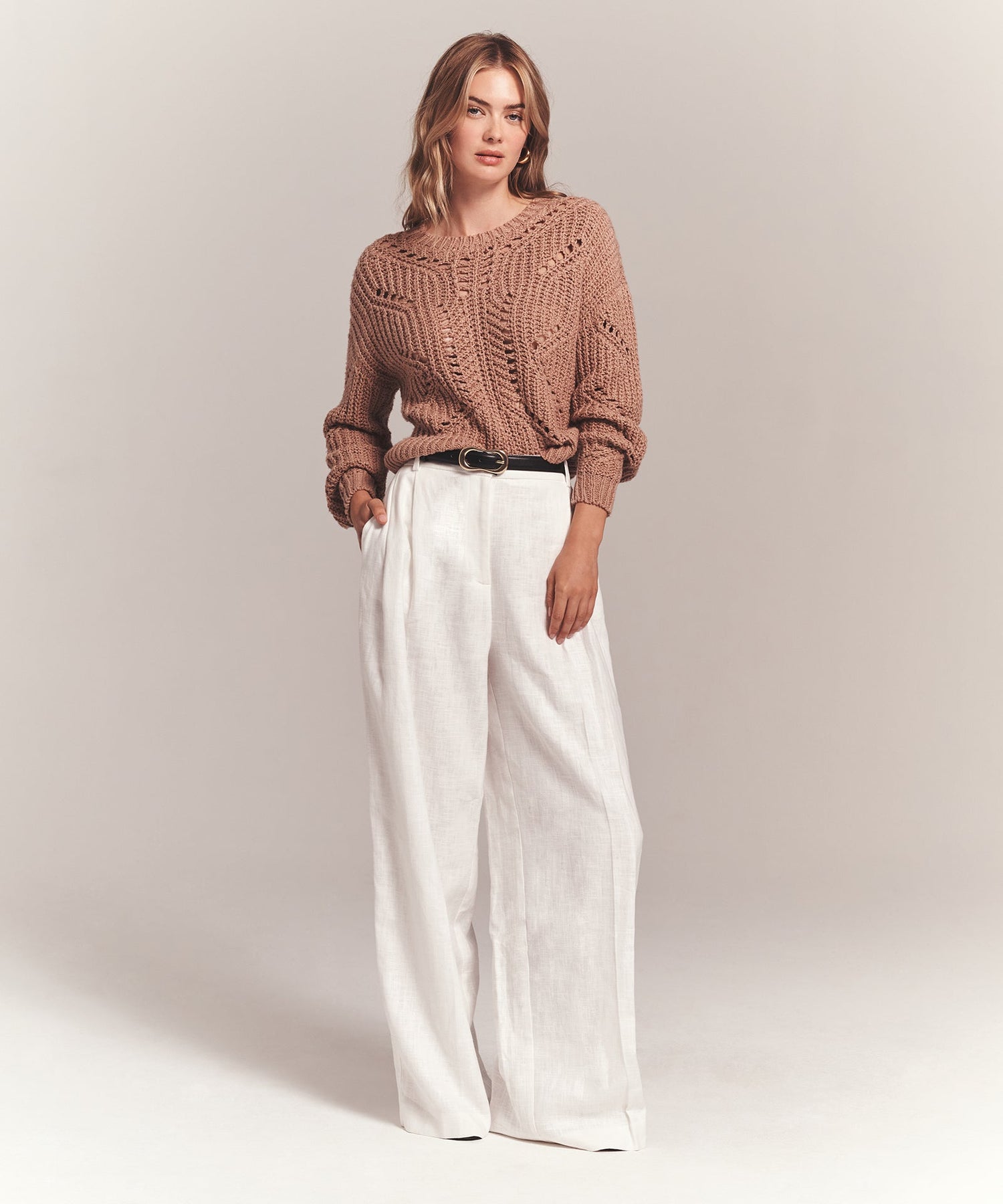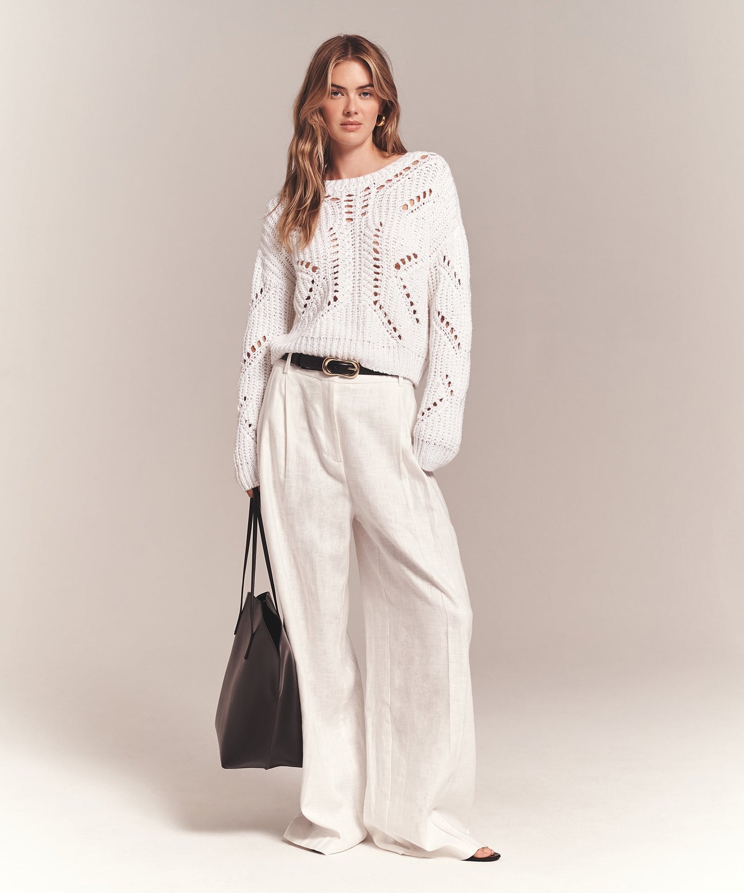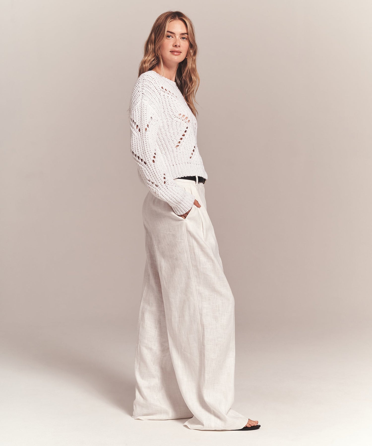 Detail oriented. The Luxe Chunky Cotton Novelty Pointelle Crew is a chic pullover with a relaxed classic fit and short classic length. It features a crew neckline, drop shoulders, and intricate pointelle stitching throughout. Crafted from 100% Tanguis cotton: a special organic cotton grown along the coast of Peru. In addition to being extra soft, Tanguis cotton is naturally drought tolerant and insect resistant — so it uses minimal water and zero pesticides.