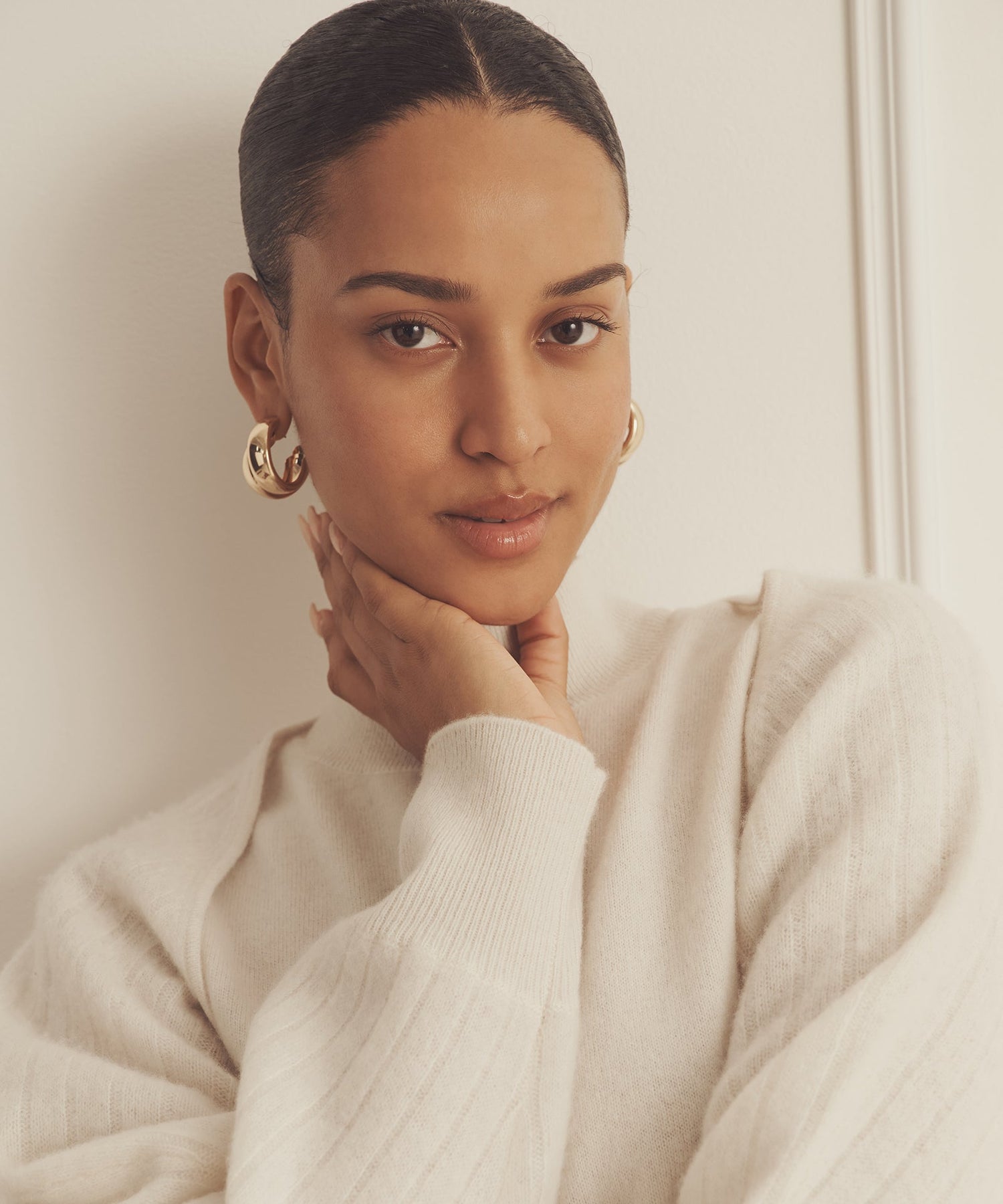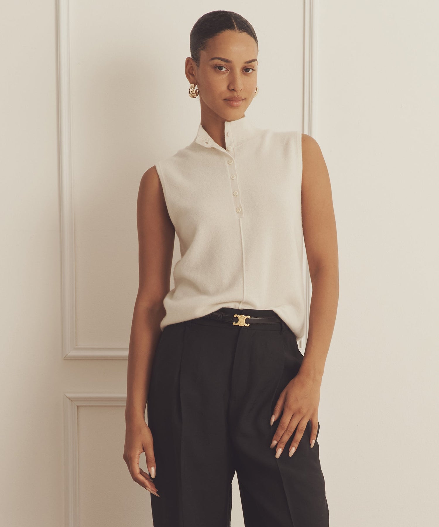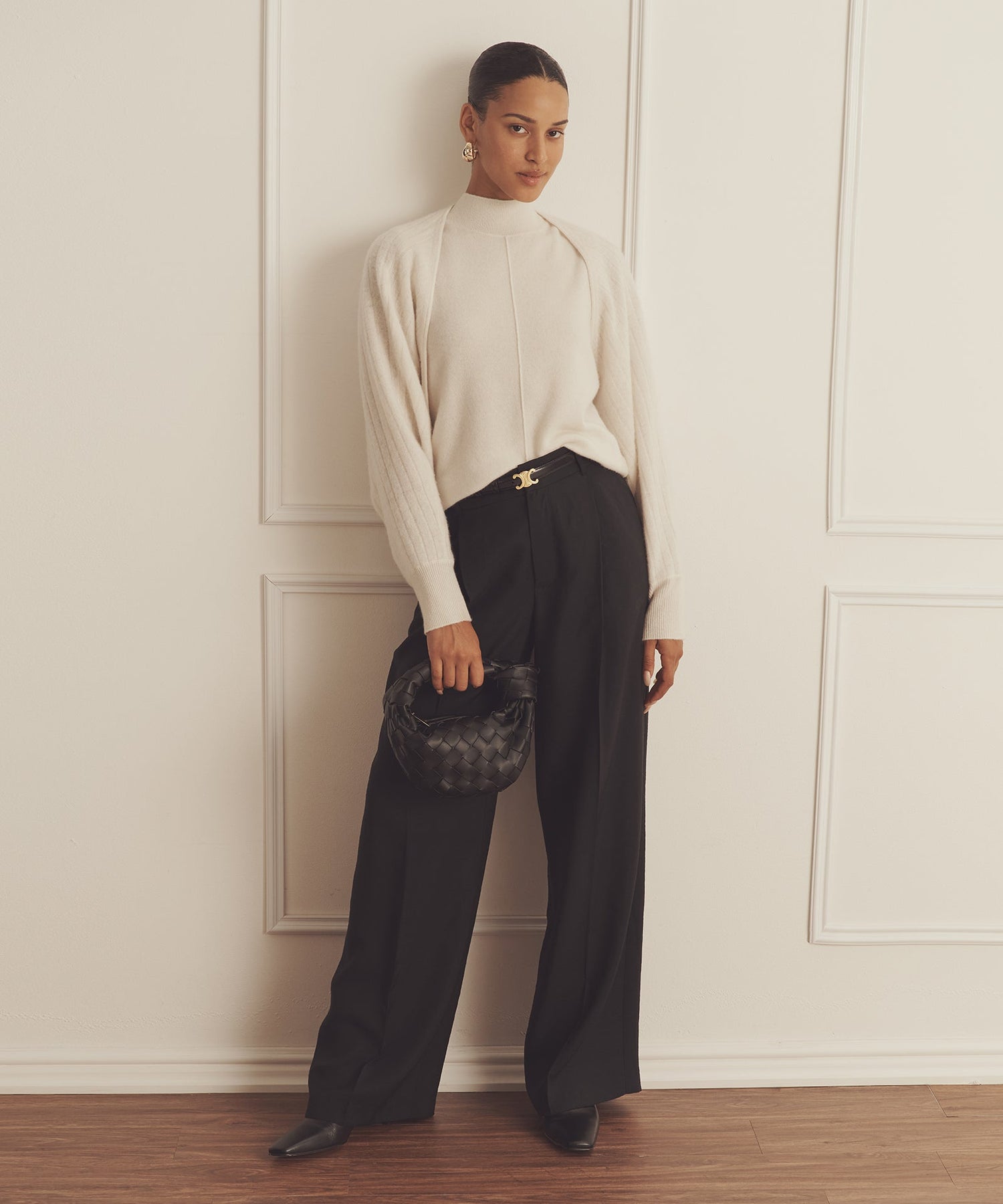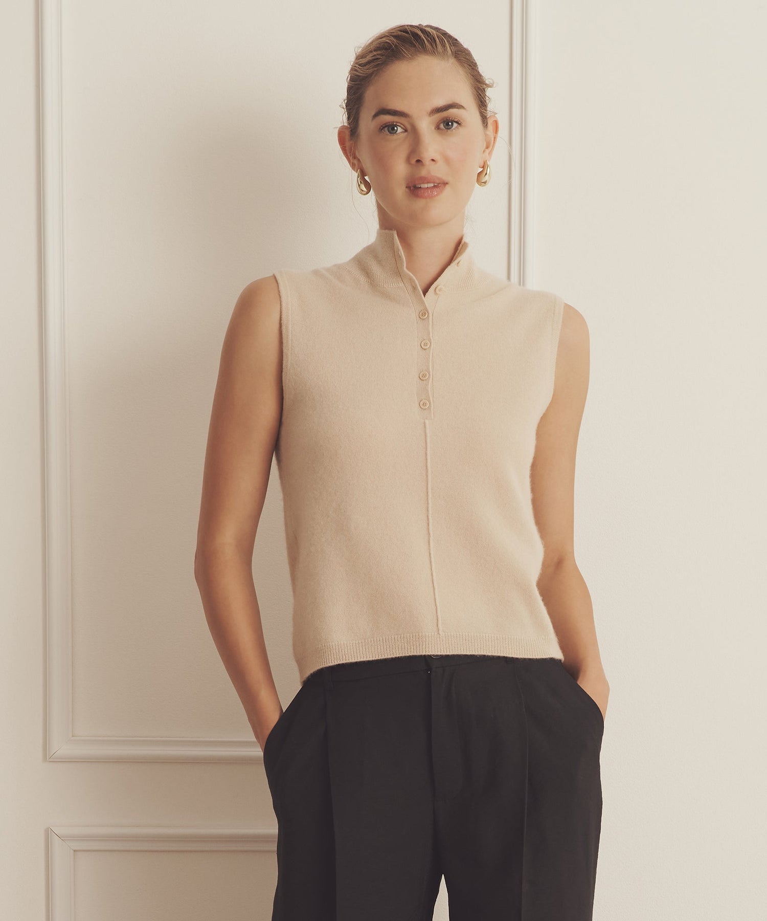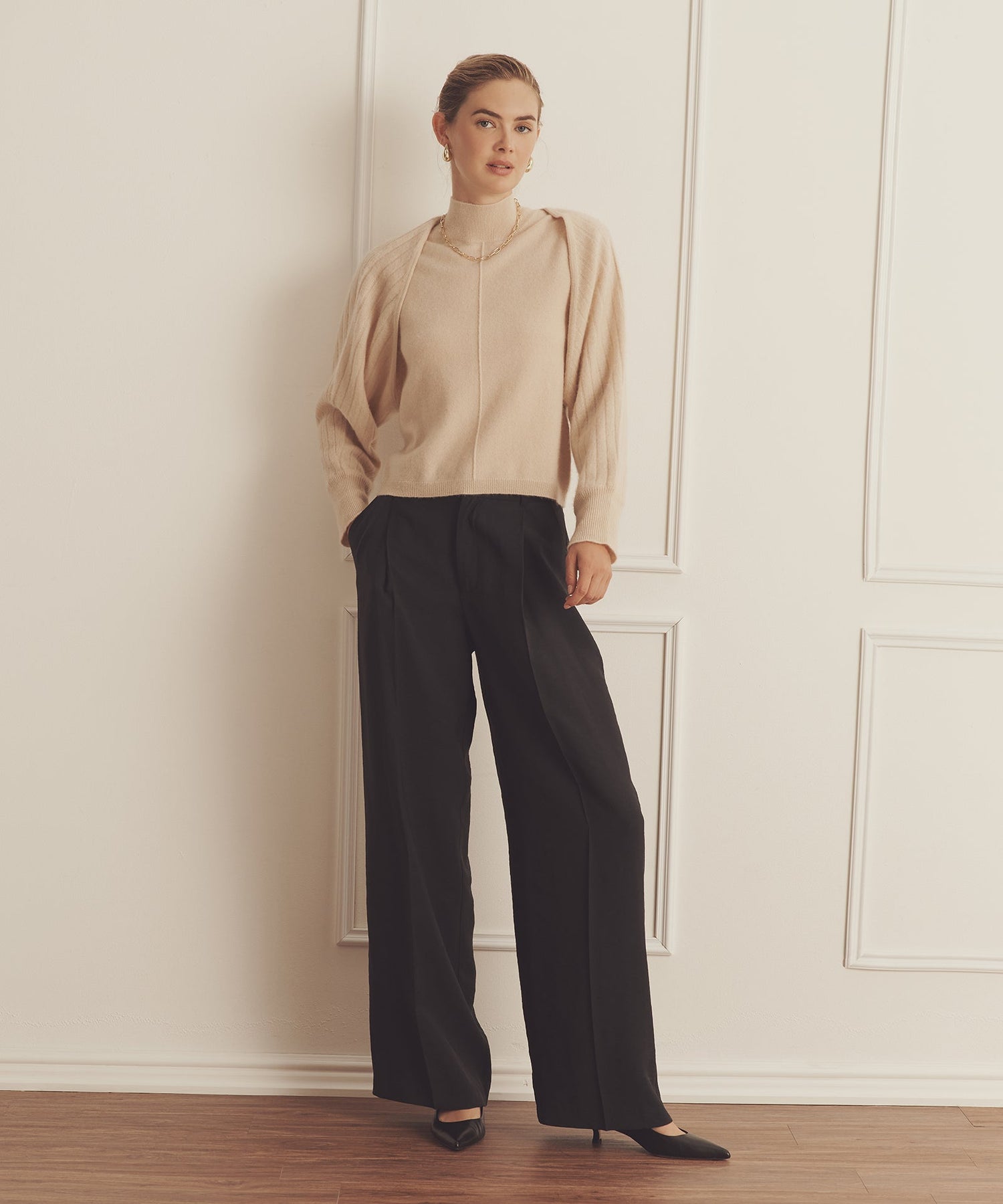 Covered in cashmere. The Novelty Cashmere Two Piece Turtleneck Set is an heirloom-worthy pair with a classic fit and short classic length. It features a reversible sleeveless turtleneck with center seam and button back, along with a ribbed bolero for added visual interest. Crafted entirely from 100% premium cashmere.