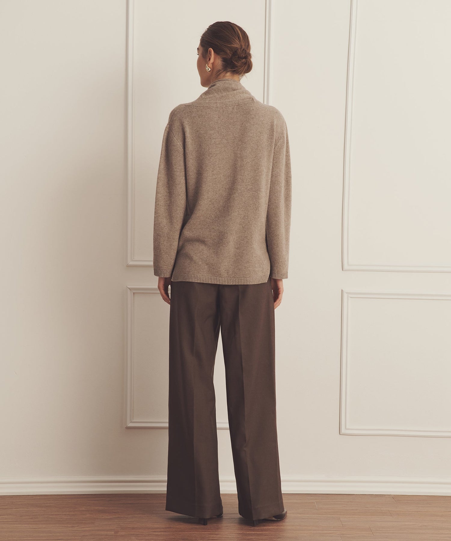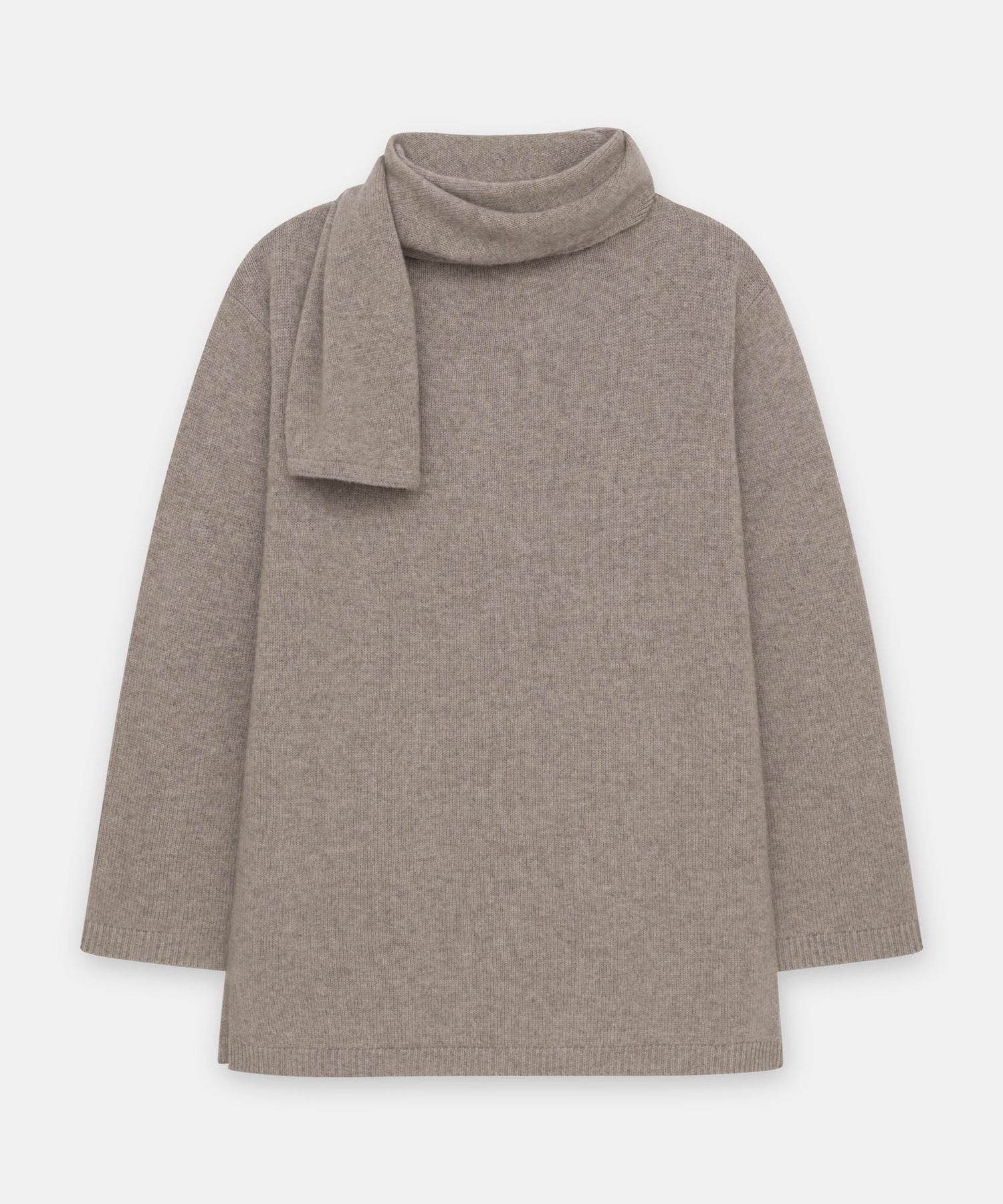 Chic. The Cashmere Asymmetrical Turtleneck with Scarf is a contemporary sweater with a relaxed classic fit and classic length. It features a high neckline, attached scarf accent, and ribbed details. Crafted from 100% premium cashmere.