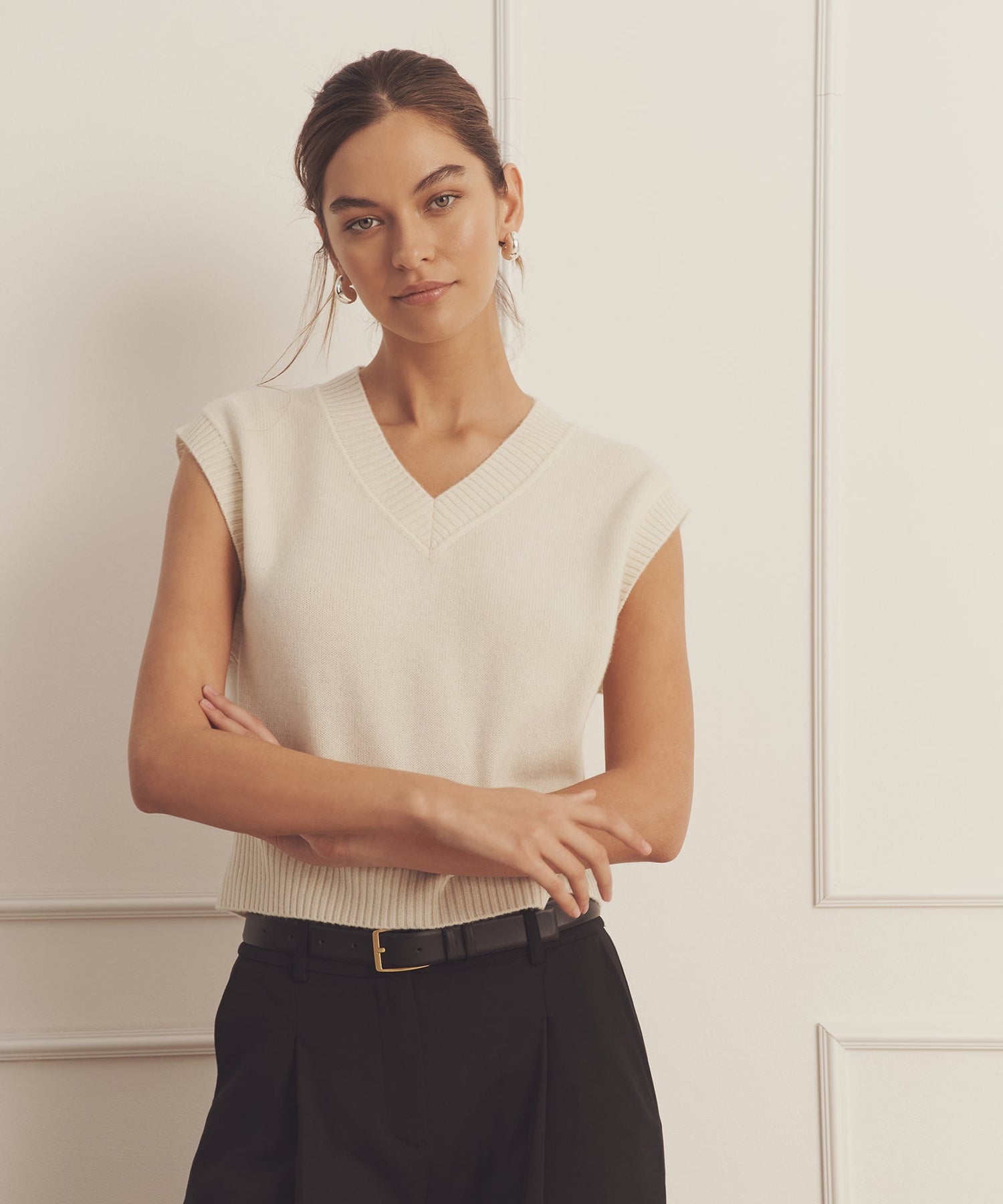 Forever sweater. The Luxe Cashmere V-Neck Vest is an elevated knit with a relaxed classic fit and short classic length. It features a v neckline, ribbed details, and easy-to-layer silhouette. Crafted from Luxe Cashmere: our most luxurious and plushest cashmere available.