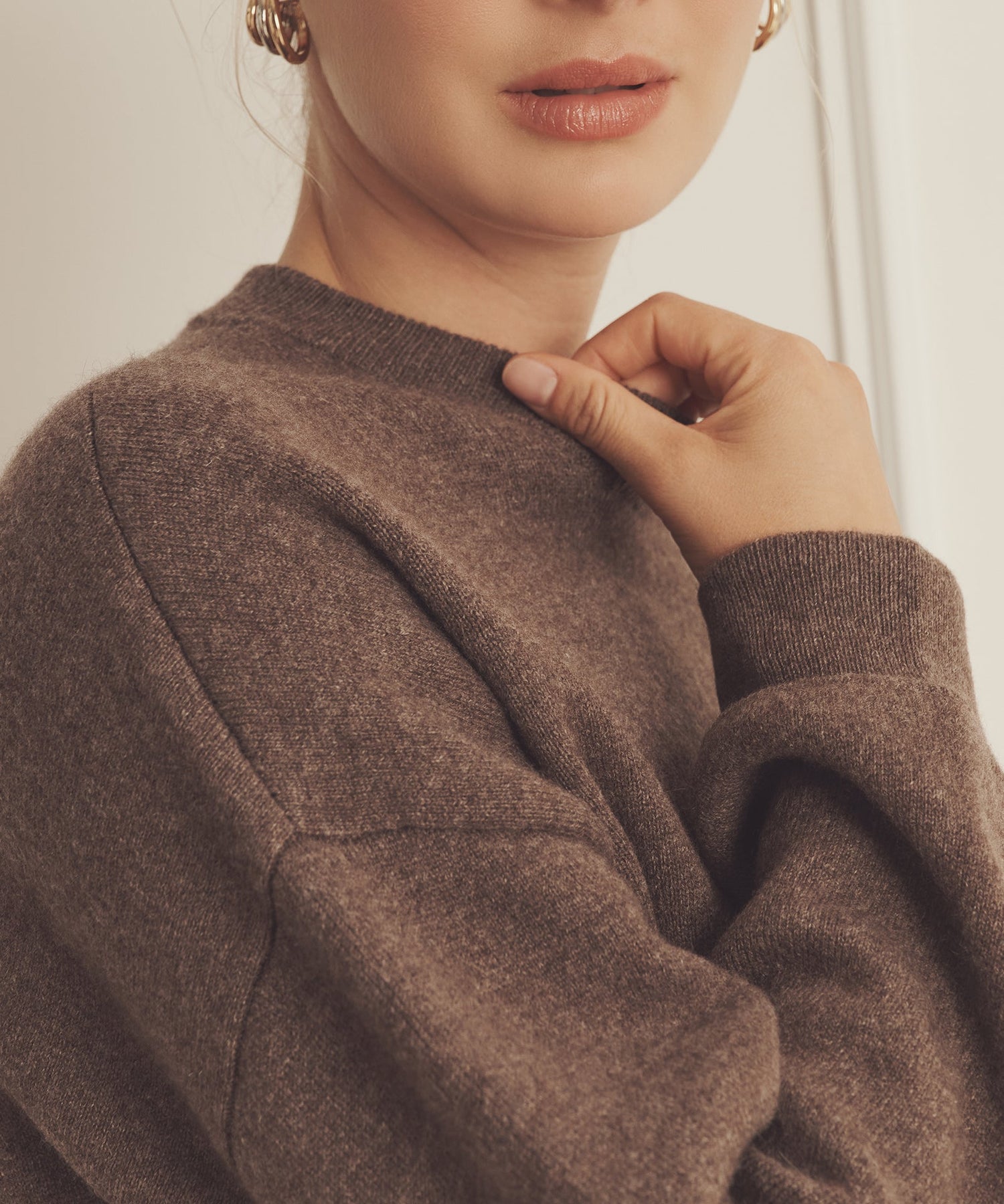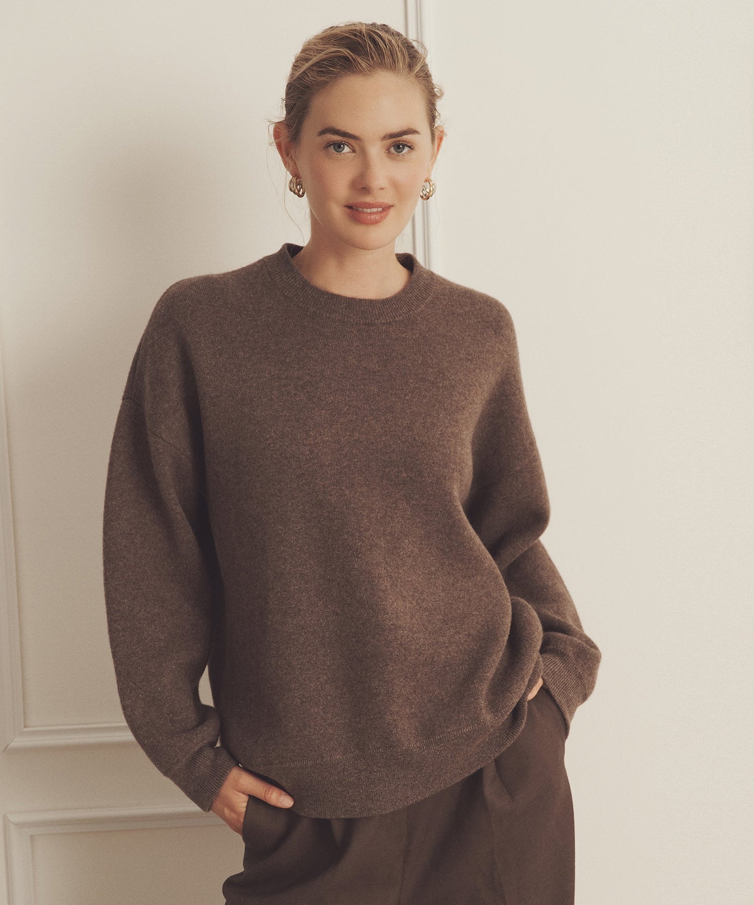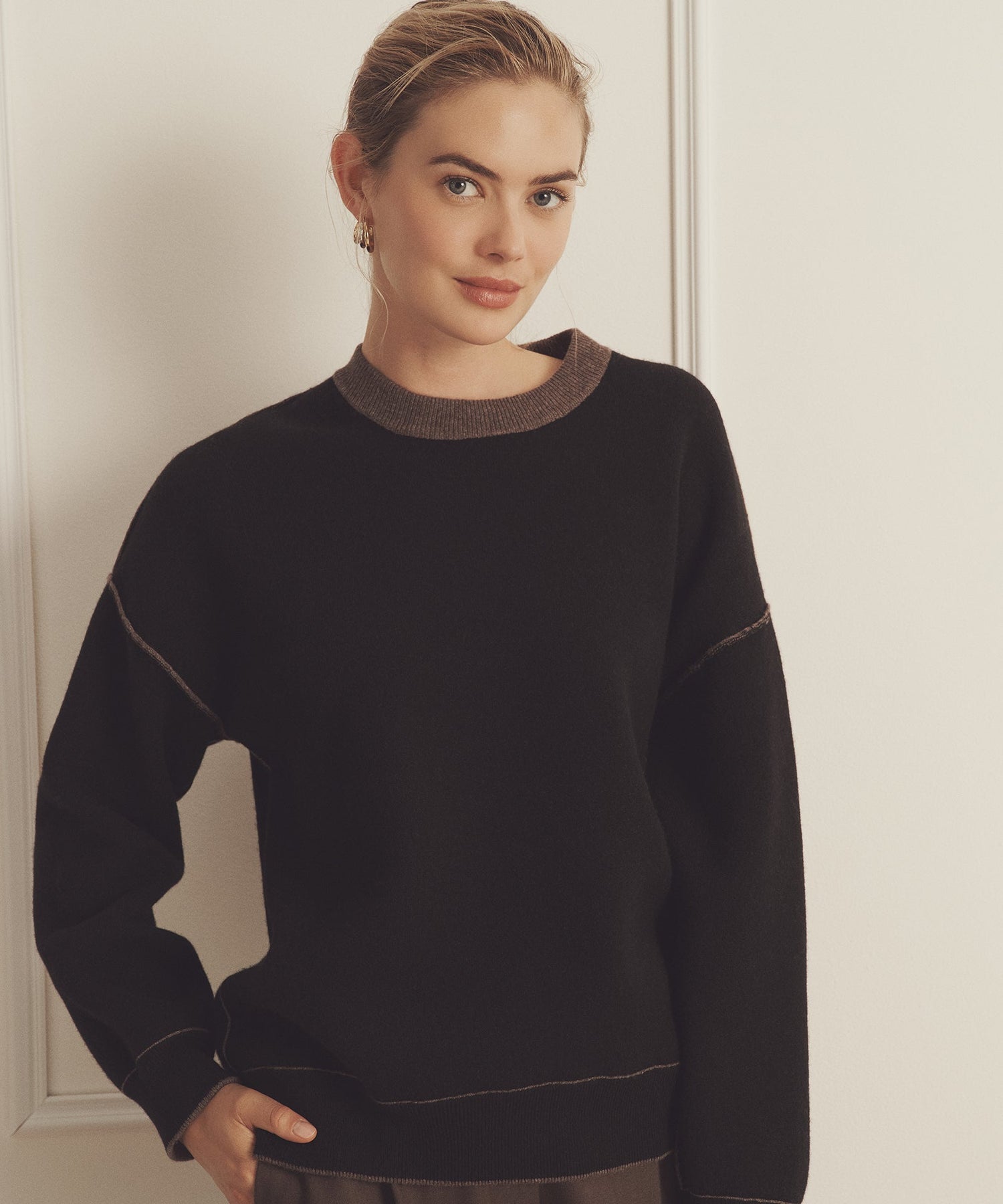 Two is better than one. The Super Luxe Cashmere Double Faced Crewneck is a two-in-one layer with an oversized fit and long classic length. It features a fully reversible construction—giving you double the colors, double the wearability, and double the cashmere. Crafted from Double-Faced Luxe Cashmere: our Signature 12gg Cashmere, doubled. It’s dense, structural, and soft AF.