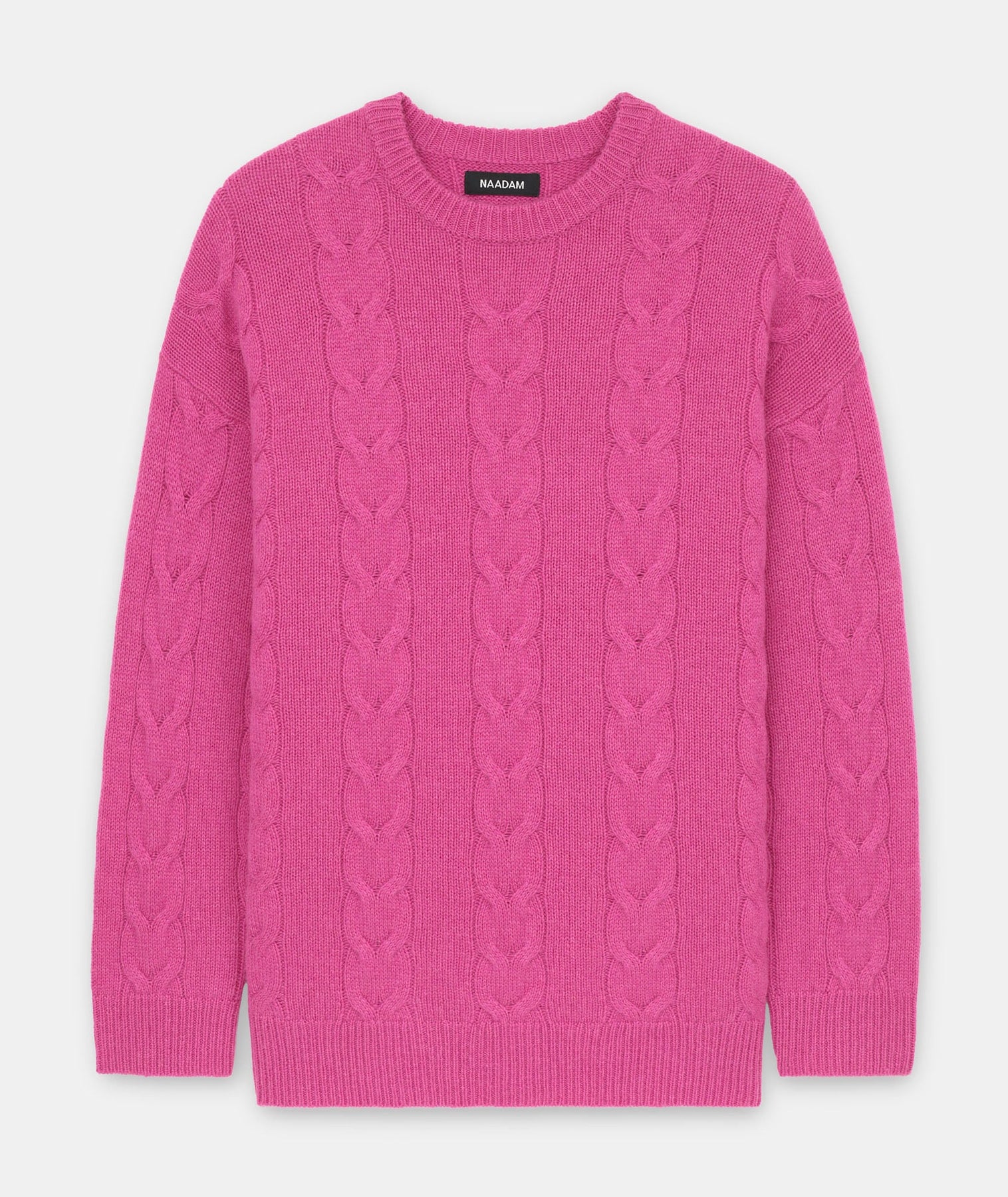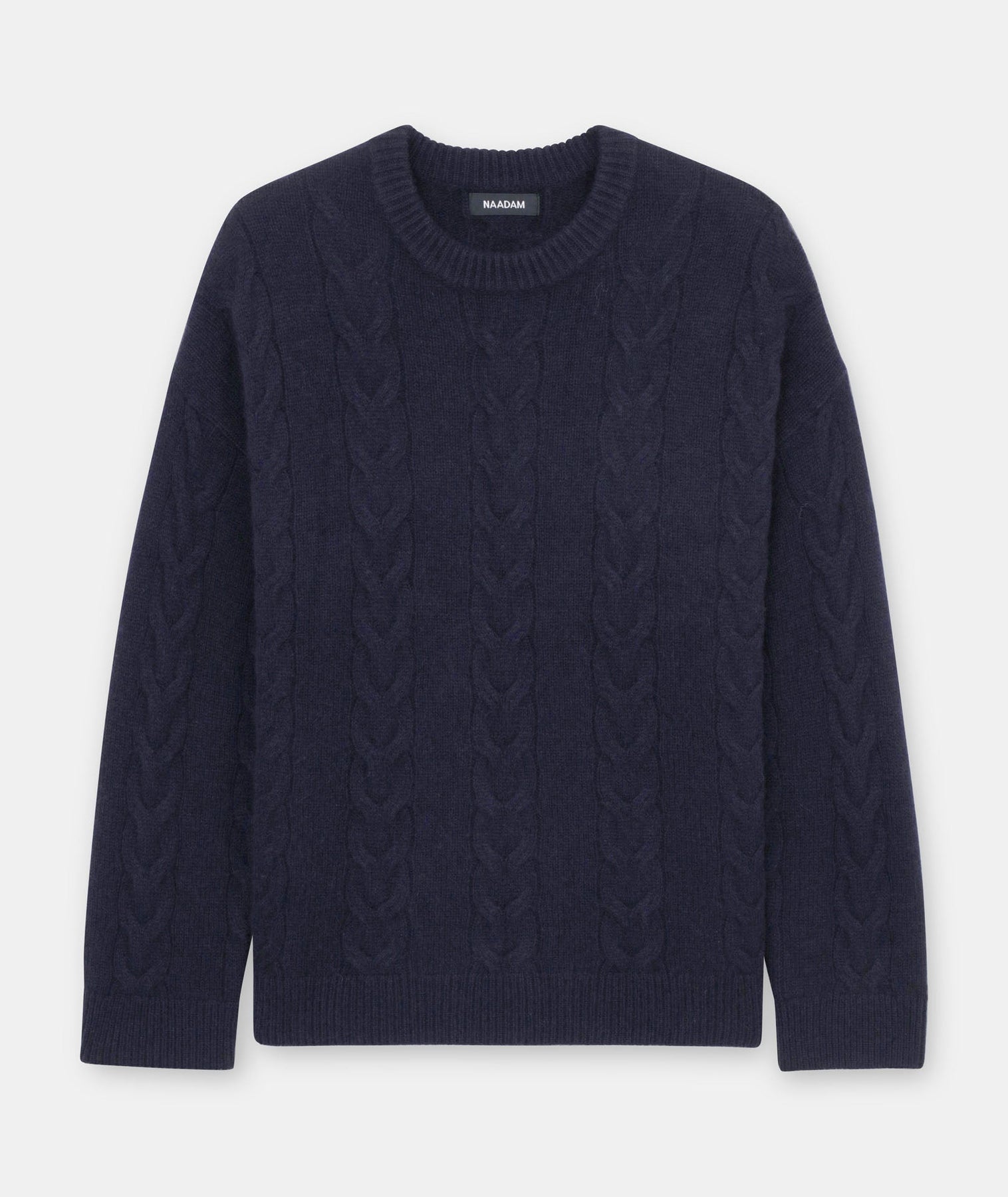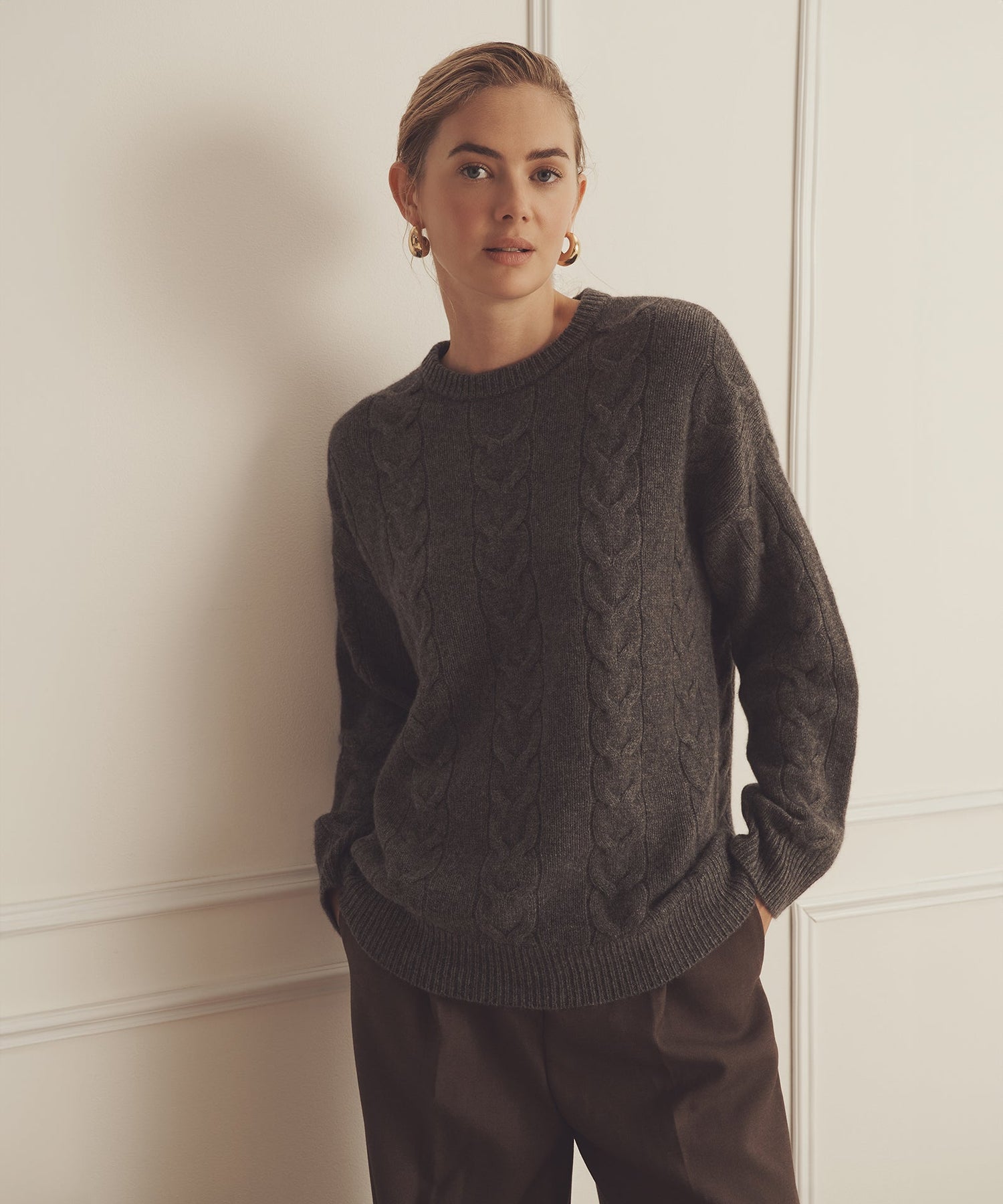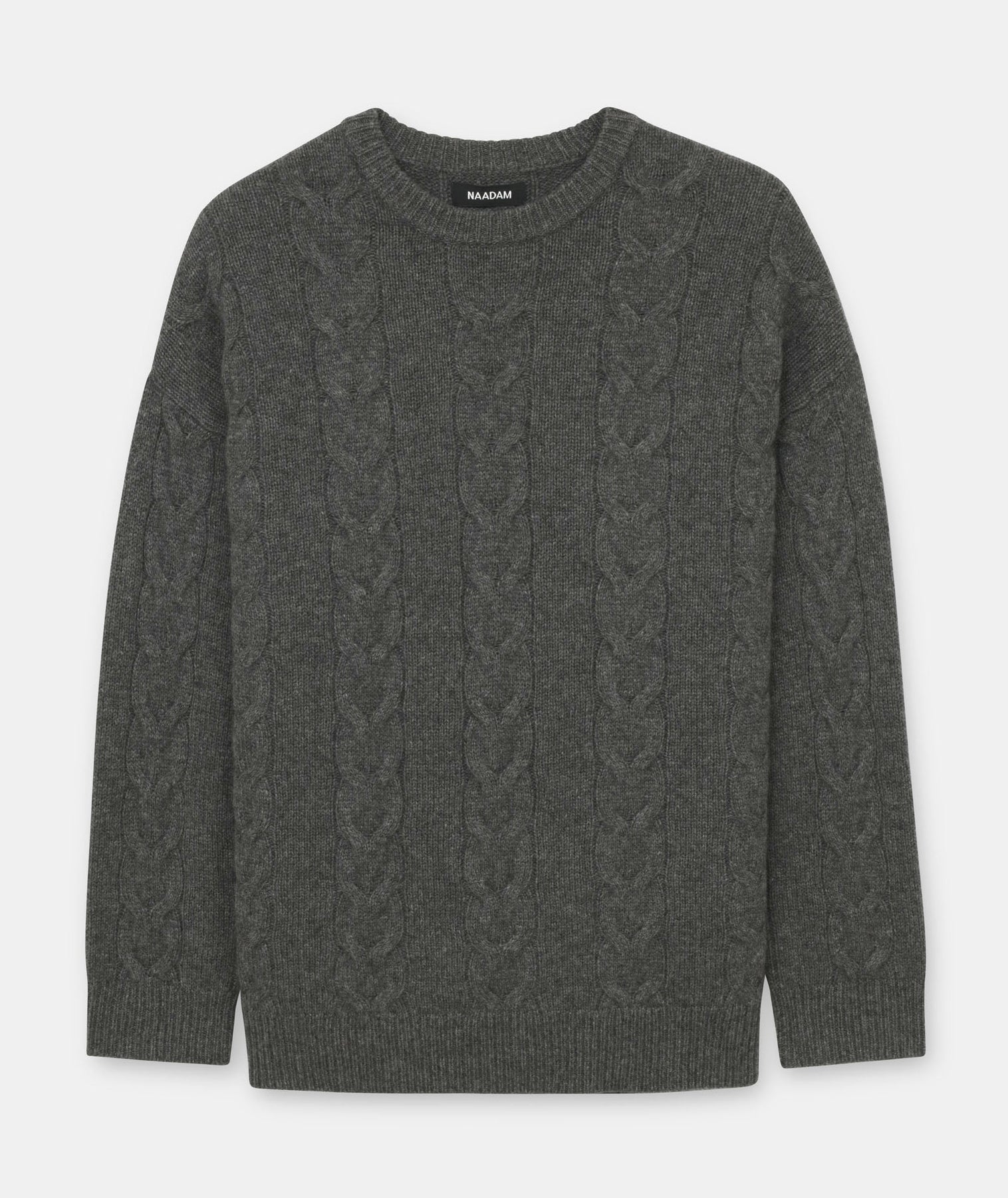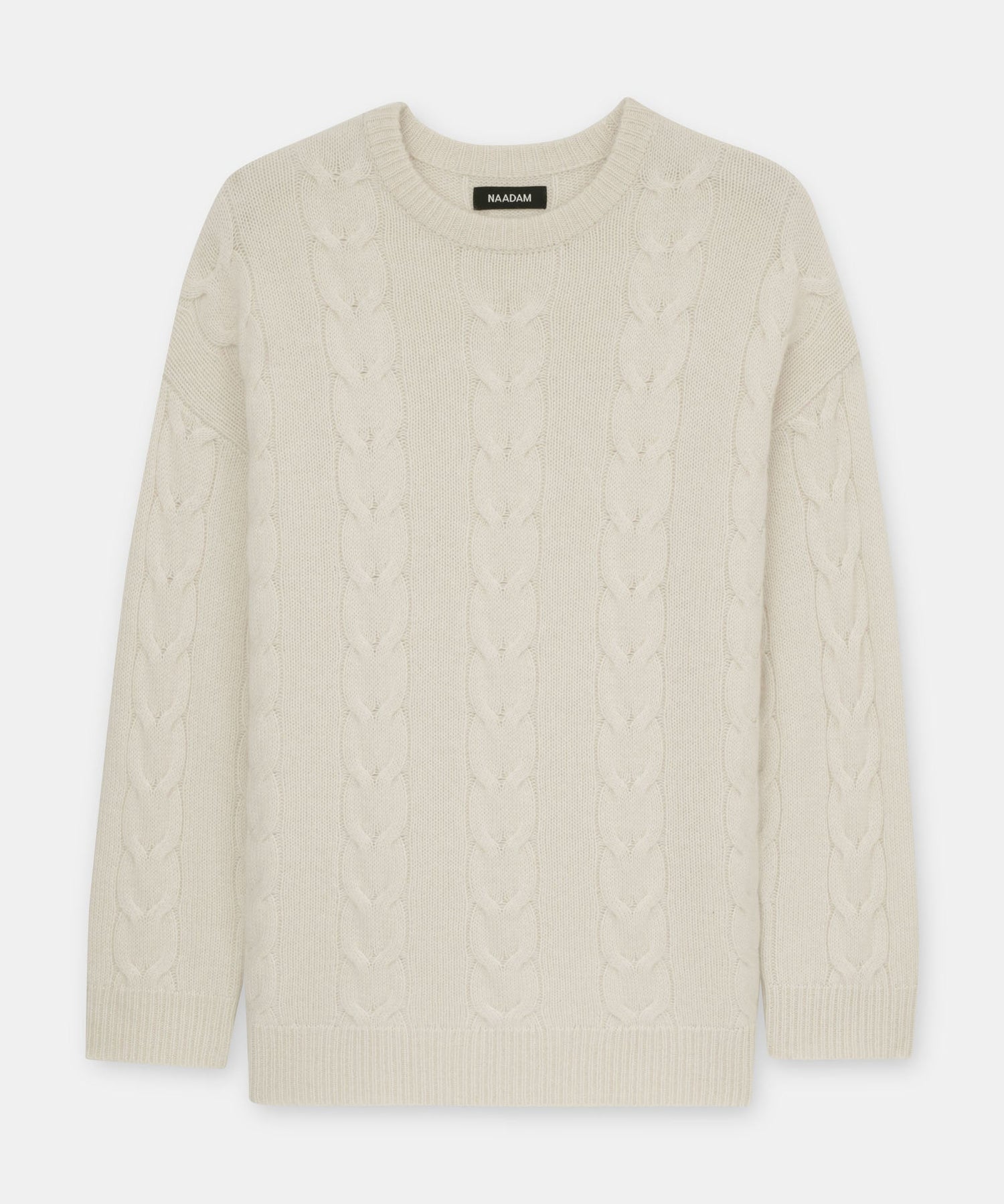 Forever sweater. The Luxe Cashmere Cable Crewneck is a timeless pullover with an oversized fit and long classic length. It features a crew neckline, drop shoulders, ribbed details, and large cables throughout. Crafted from Luxe Cashmere: our most luxurious and plushest cashmere available.