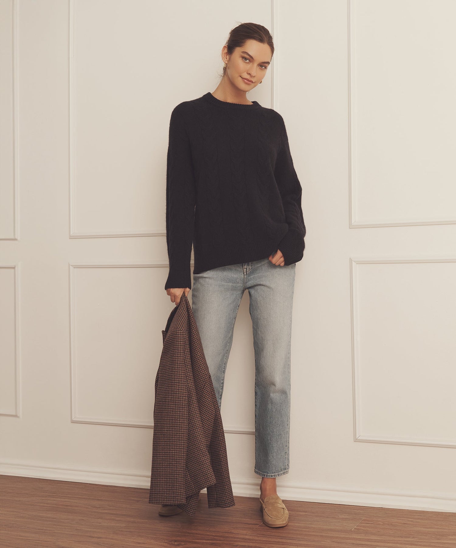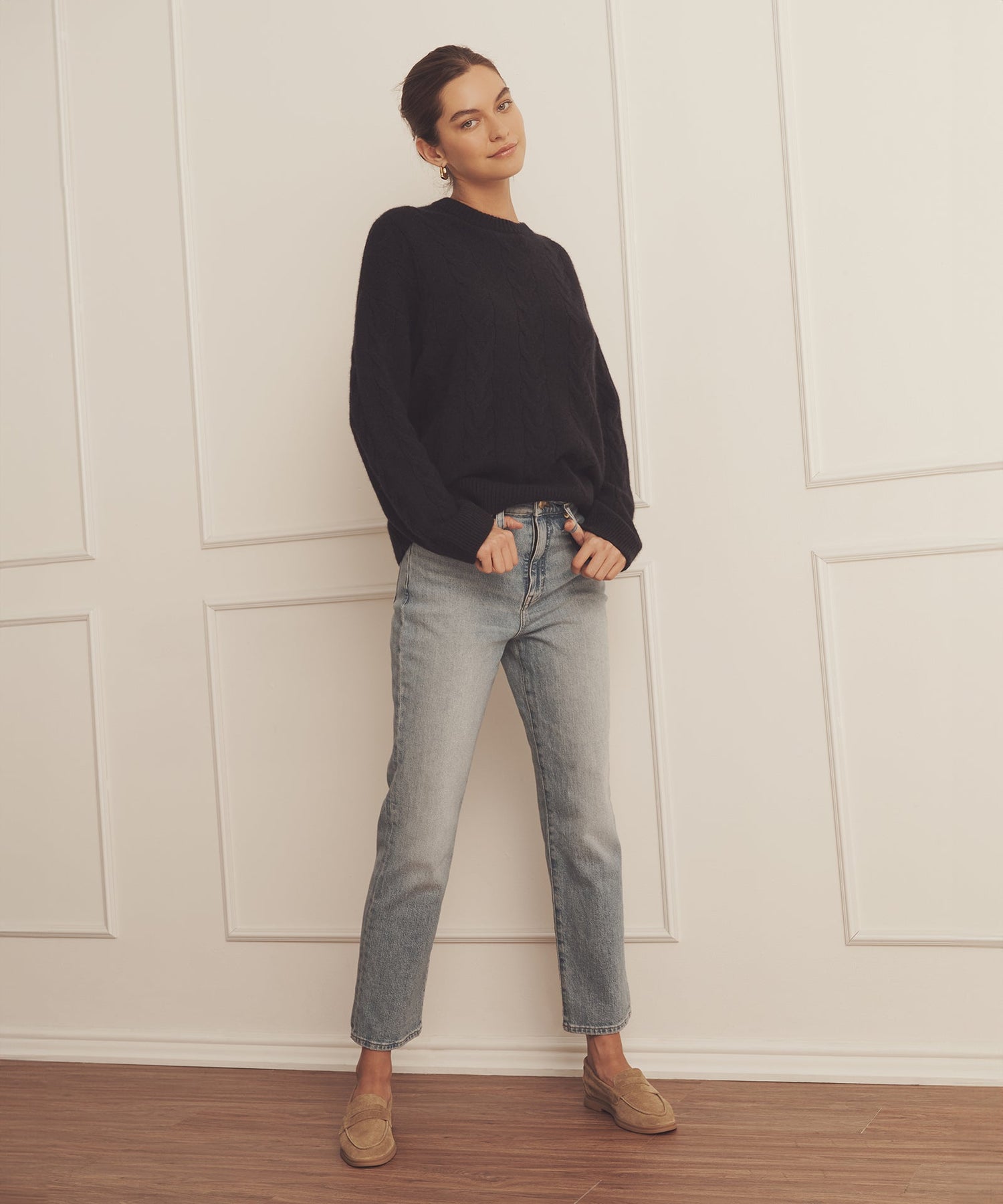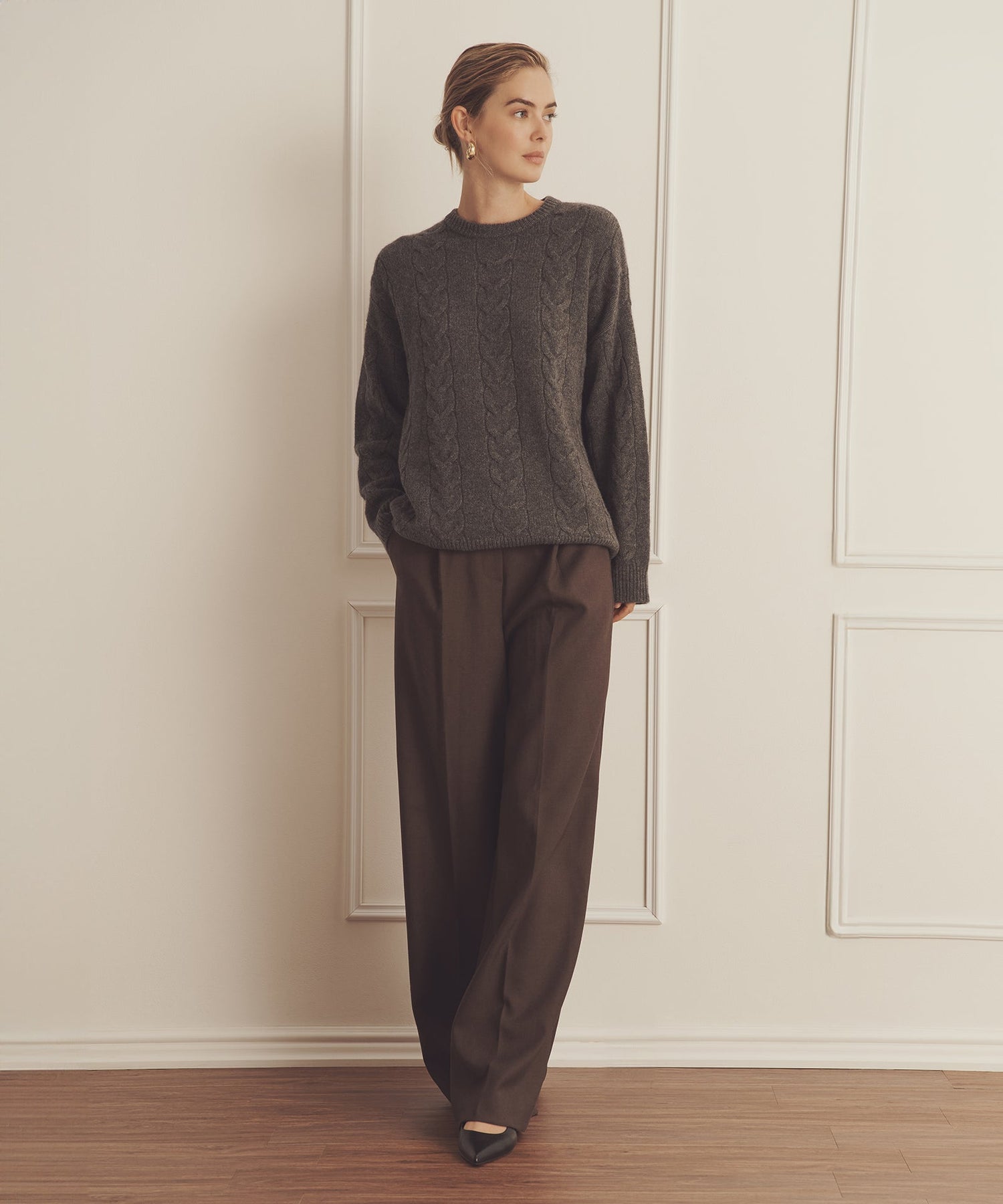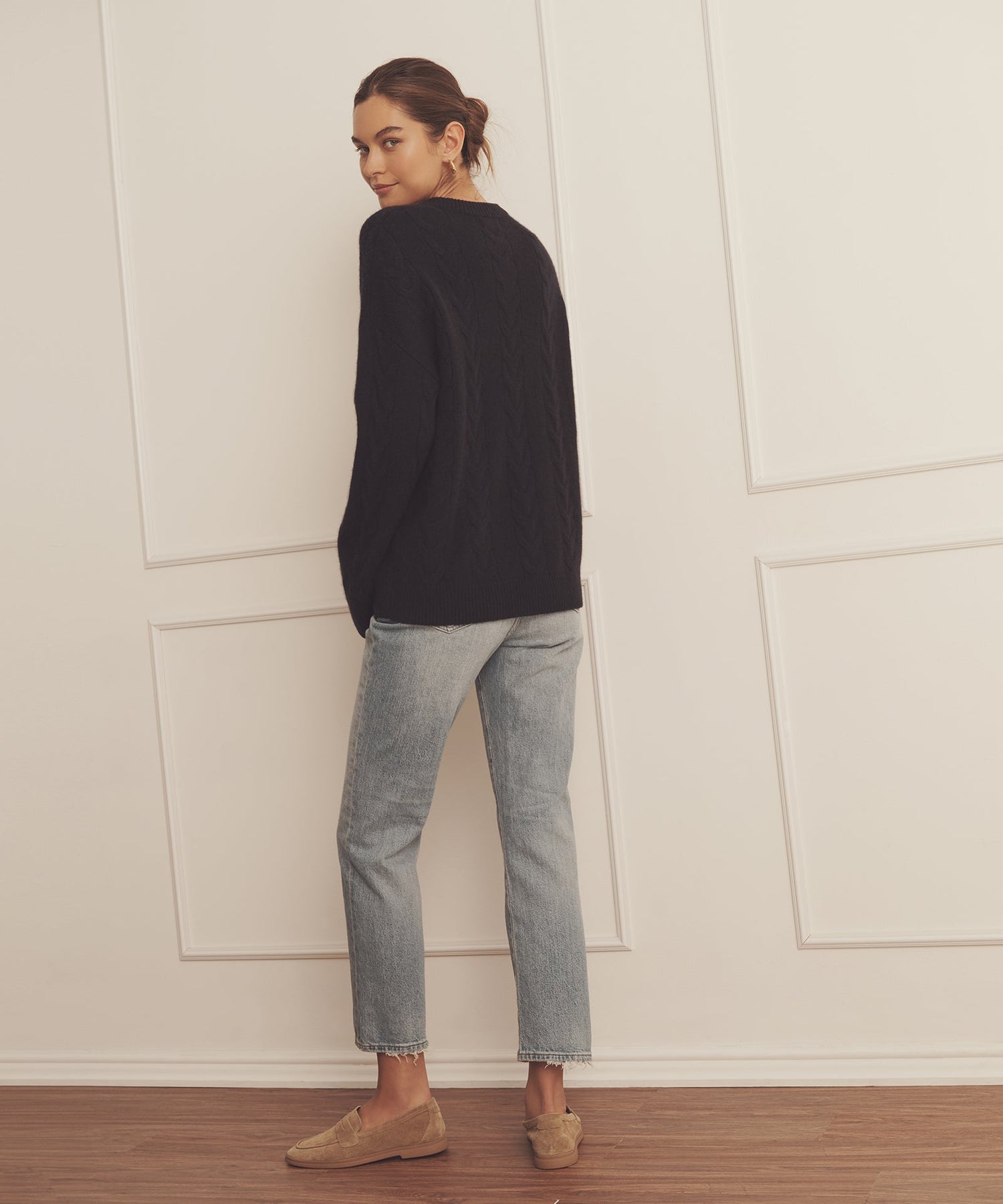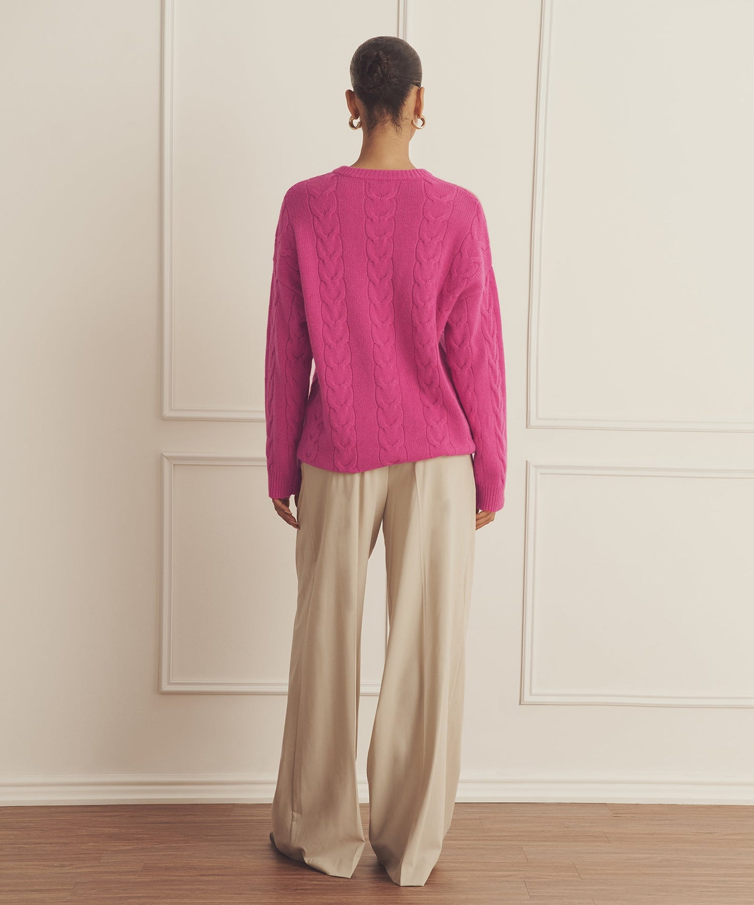 Forever sweater. The Luxe Cashmere Cable Crewneck is a timeless pullover with an oversized fit and long classic length. It features a crew neckline, drop shoulders, ribbed details, and large cables throughout. Crafted from Luxe Cashmere: our most luxurious and plushest cashmere available.