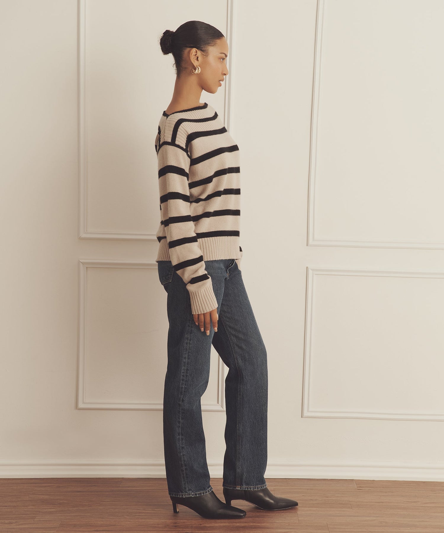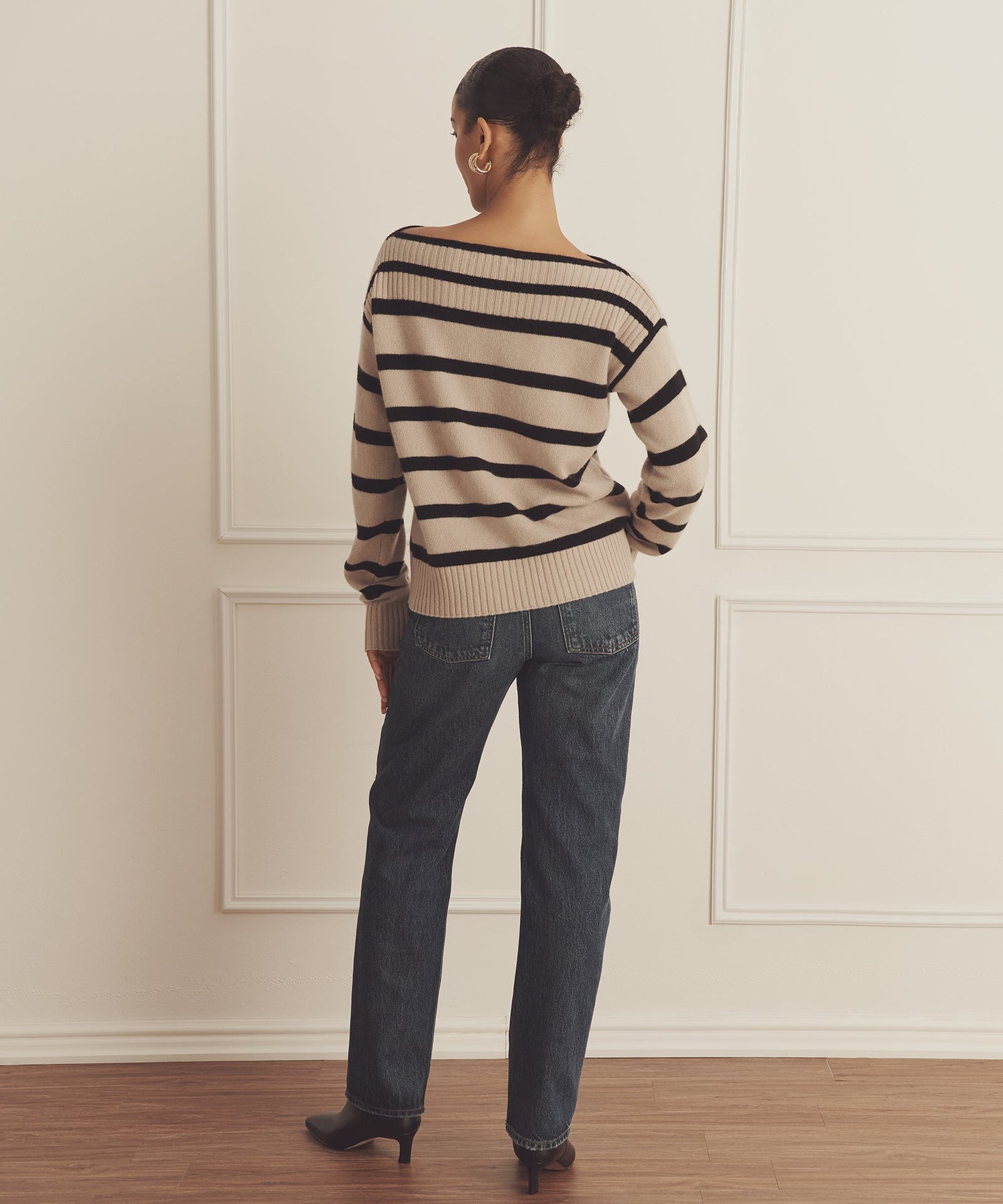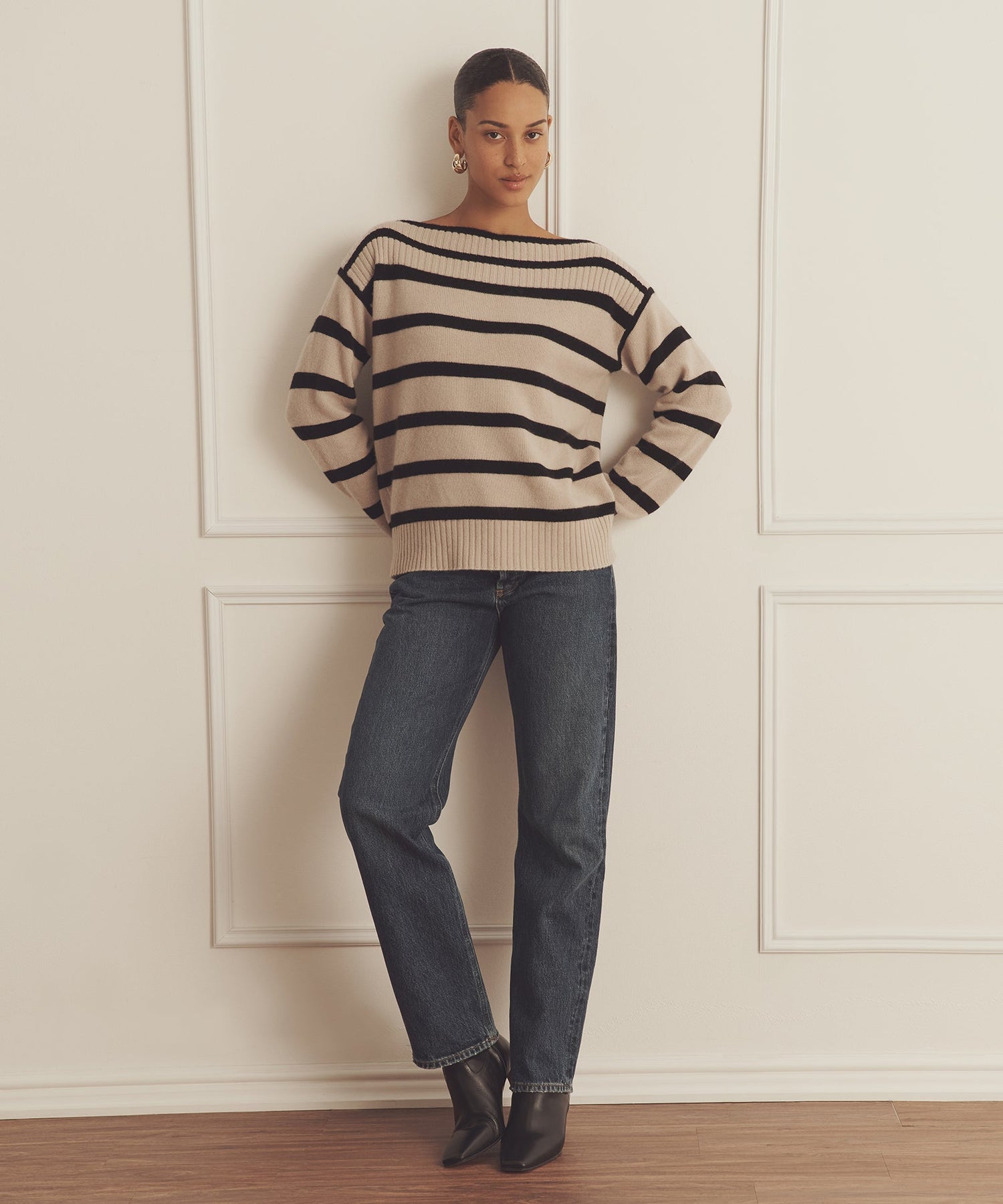 The Luxe Cashmere Striped Boatneck is a sumptuously soft piece with a relaxed classic fit and classic length. It features a wide boat neckline, drop shoulders, and stripe pattern. Each of our Luxe Cashmere pieces is distinctly knit from 100% premium, sustainable cashmere in a substantial luxury weight.