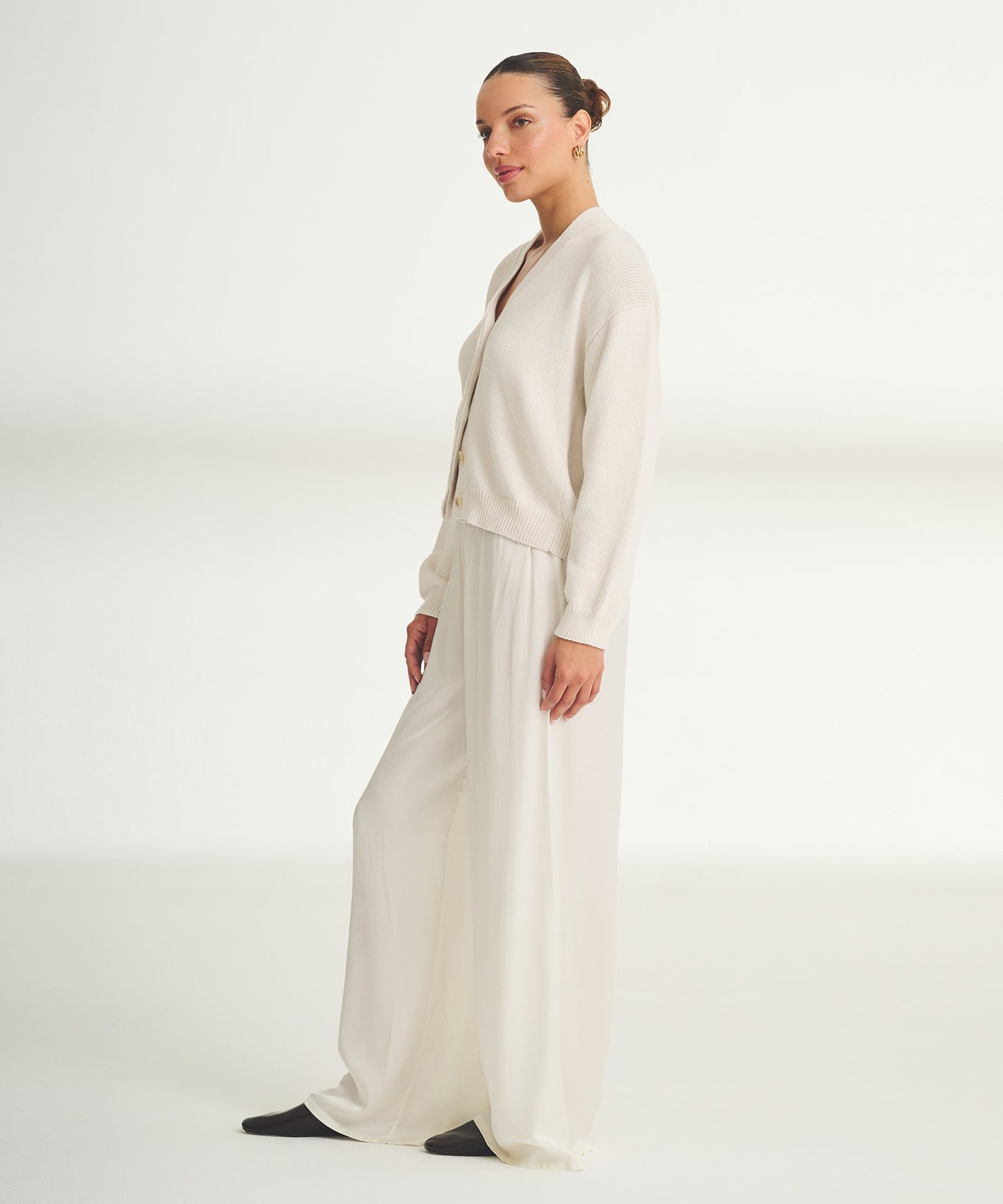 Essentials, all buttoned up. This Cotton Cardigan combines the luxury of Organic Tanguis cotton with an effortlessly refined silhouette. Naturally breathable and remarkably soft, it's the perfect layer for year-round sophistication. The relaxed fit creates an elegant drape.