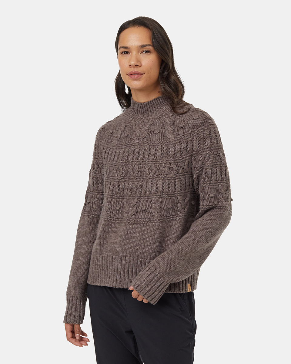 Destination? Cabin. This cozy winter sweater's earth-friendly blend of wool, organic cotton, and recycled polyester offers a sustainable take on this classic, après-ski look.