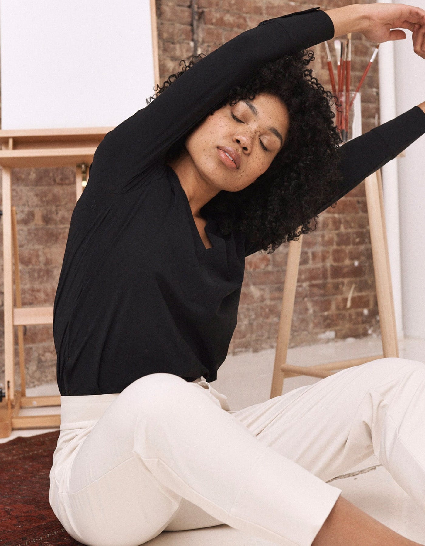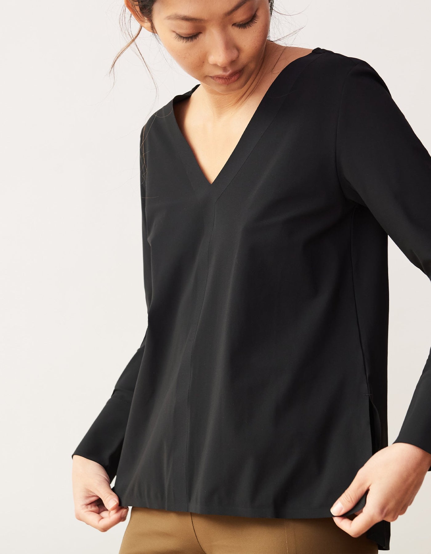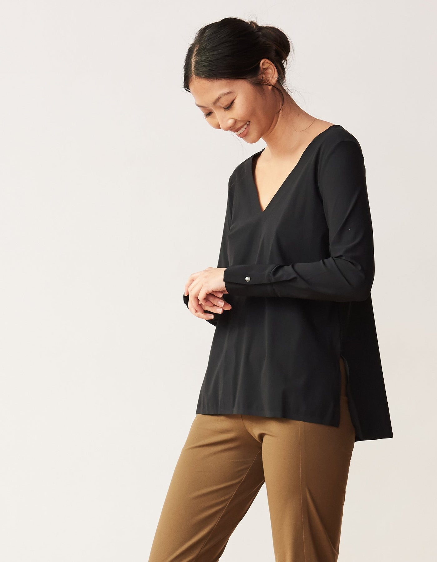 It's a best seller for a reason, the Something Tailored is the women's v-neck top of your dreams. The side slits make it easy to tuck into work pants, while the oversized cuffs can be rolled up for a more casual look.