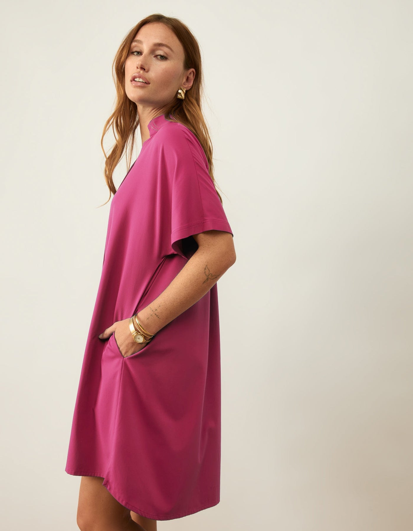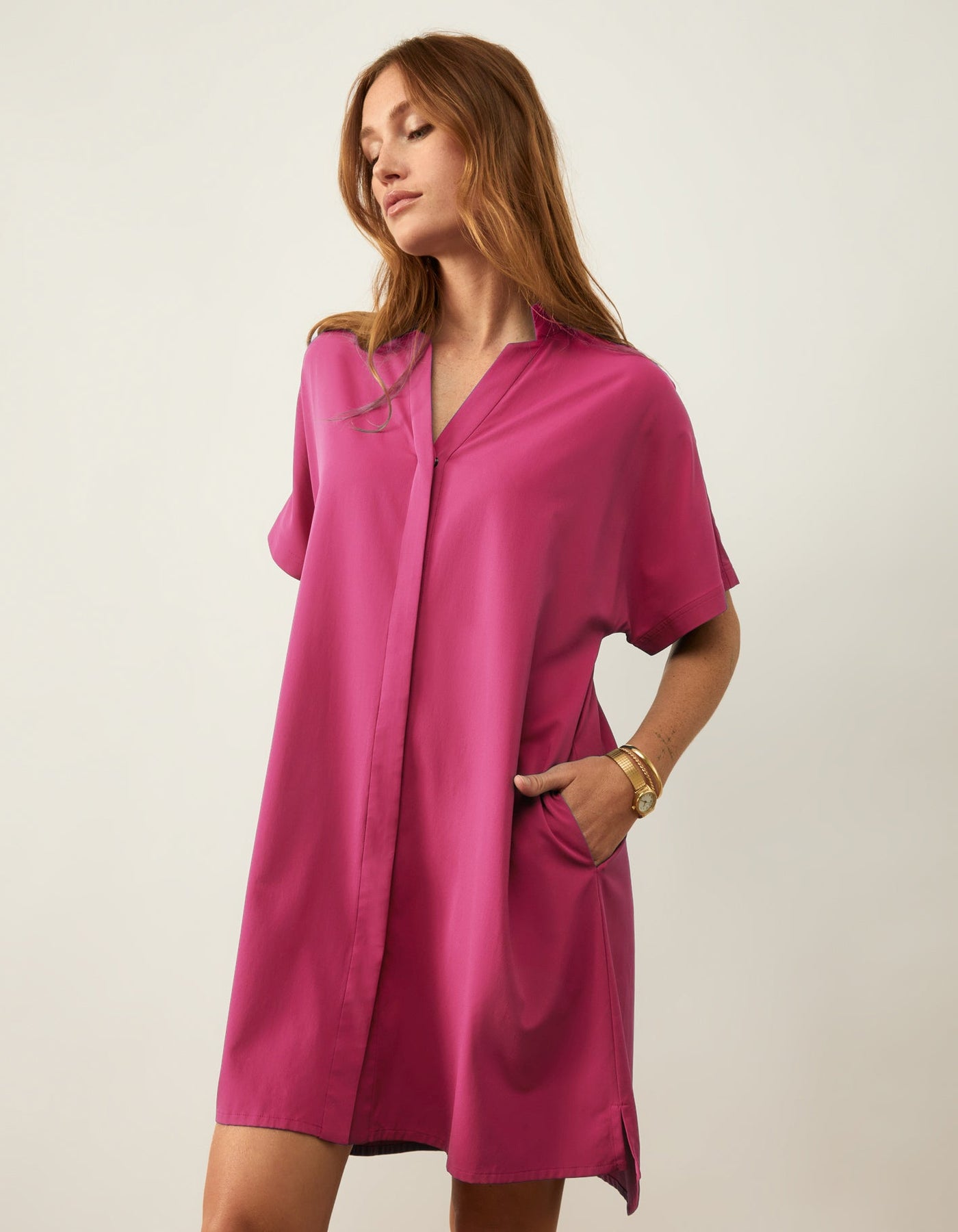 Anywhere, anytime. This silky, short-sleeve dress is the sister style to our Something Borrowed Dress. With functional pockets and a high-low hem, this dress is ready to go whenever (and wherever) you are.