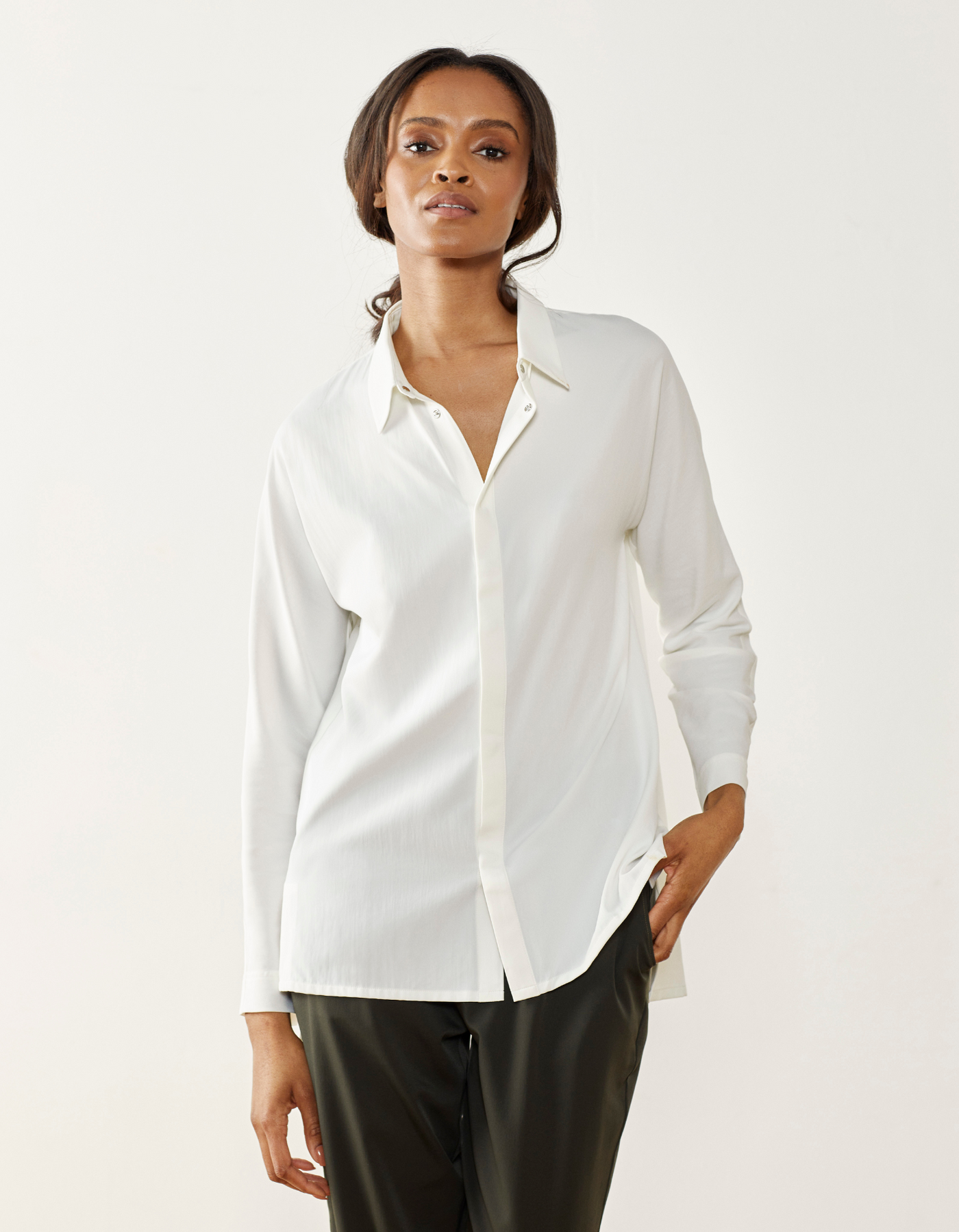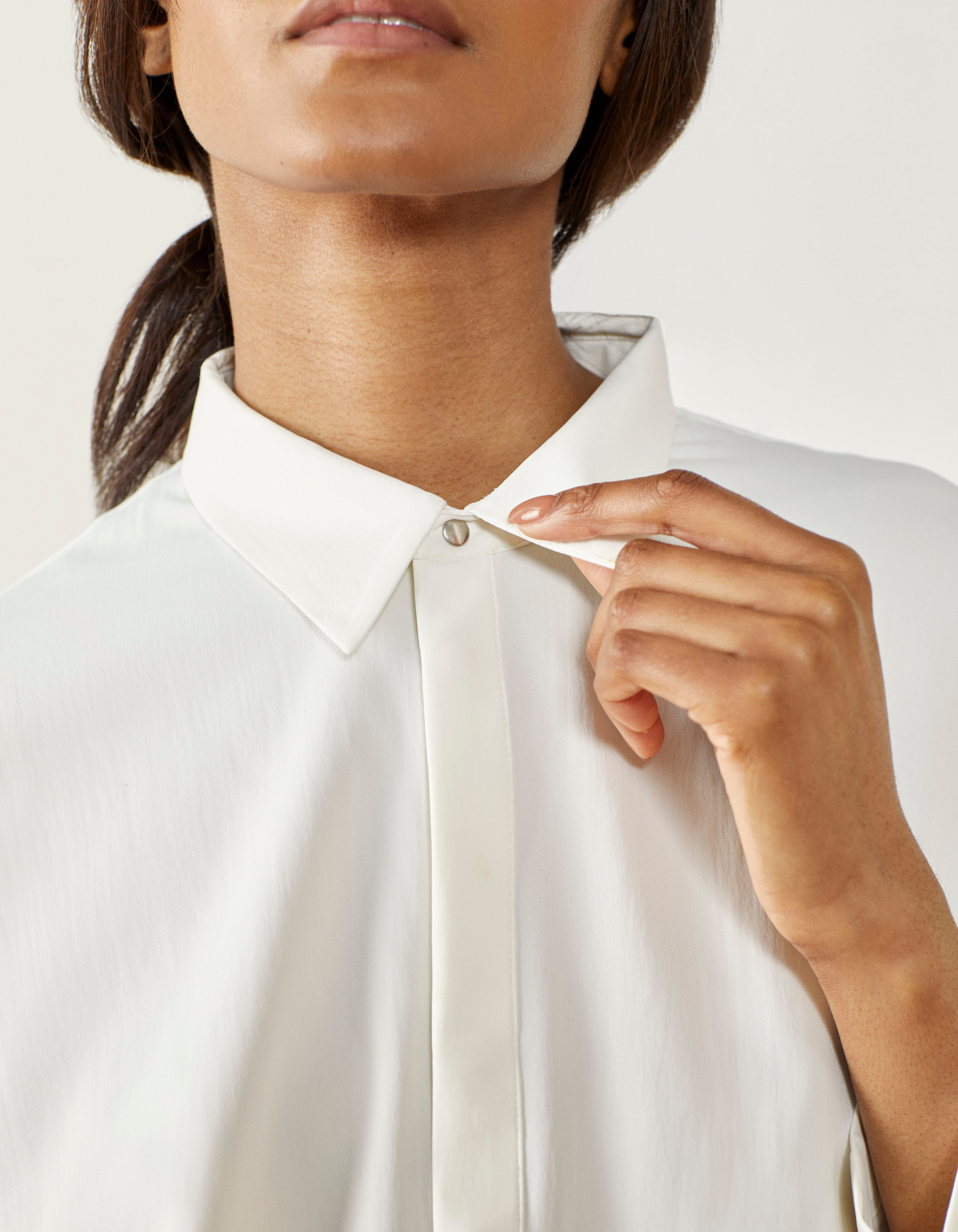 A twist on our bestselling Something Borrowed Shirt, this classic button up features a new collar, but the same universally flattering relaxed silhouette.