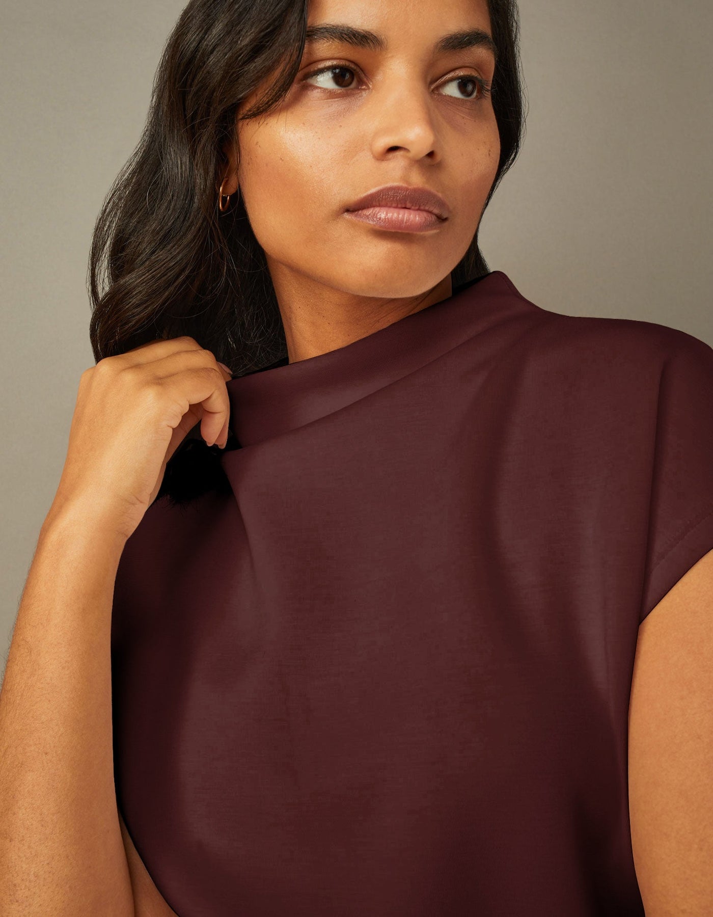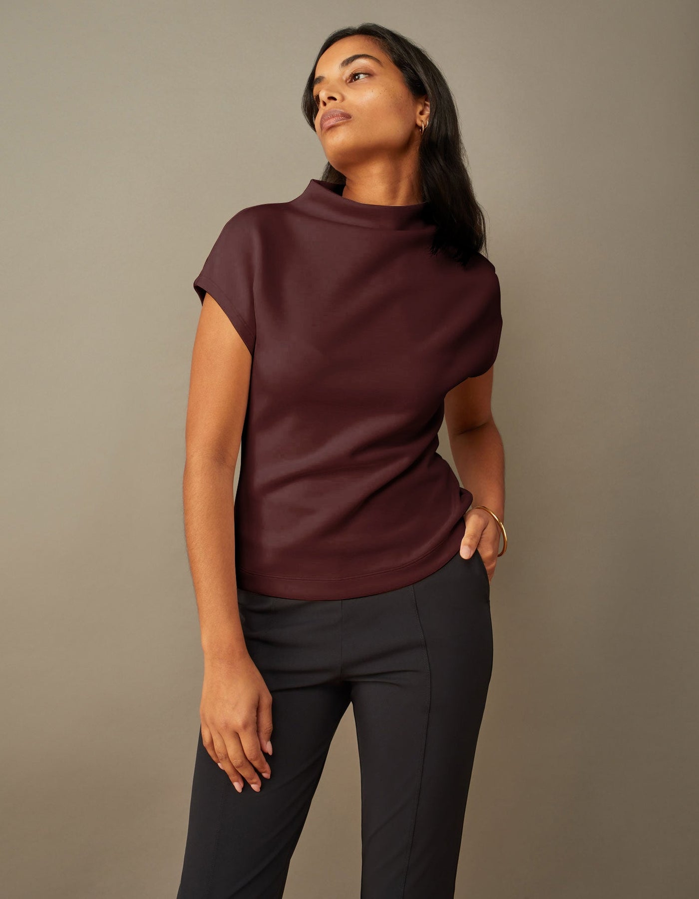 Layer if you'd like. Featuring a fitted yet flattering silhouette and polished mock neck, this cap sleeve top is the perfect lightweight top for fall.