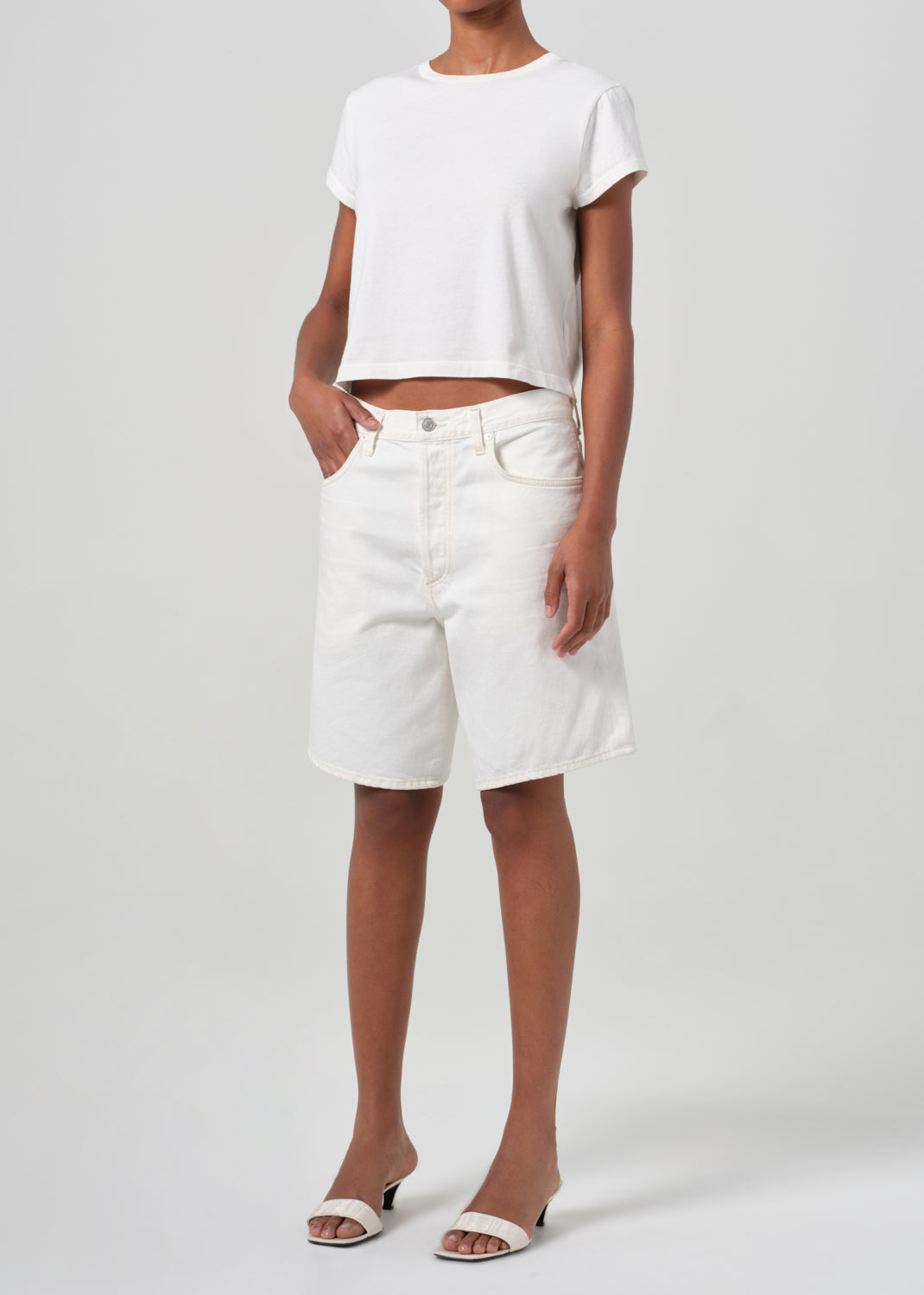 The Adine is a wardrobe essential, crafted from breathable, ultra-soft organic cotton. Perfect for wearing solo or layering, it pairs effortlessly with denim shorts or low-rise jeans for a timeless, flattering look.