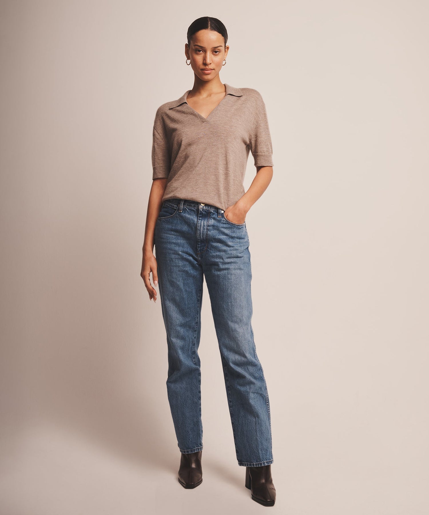 The Super Fine Cashmere Short Sleeve Polo is an elevated knit with a classic fit and short classic length. It features a relaxed point collar, v neckline, ribbed details, and silky-soft feel. Crafted from 100% premium, extra-fine cashmere on top-of-the-line machinery.
