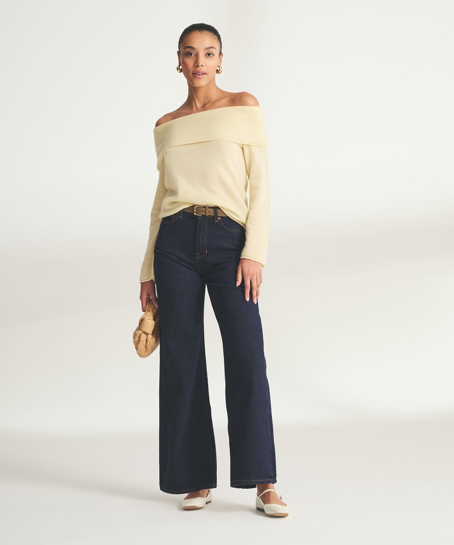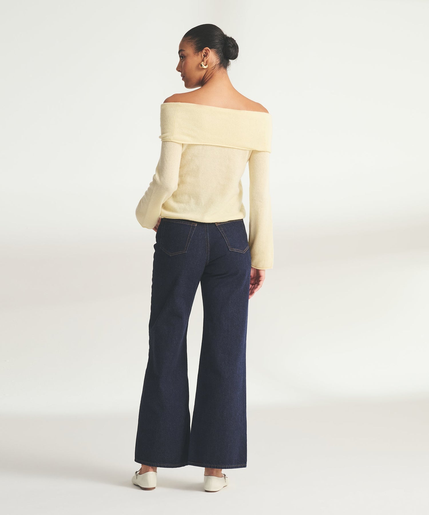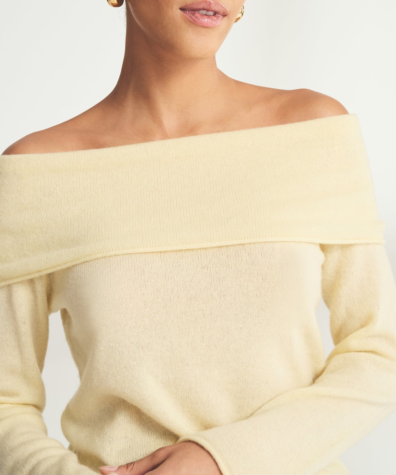 Giving the bold shoulder with an elegant fold-over neckline and oversized silhouette. Our lightweight yarn ensures airy softness and perfect drape, while the versatile fit adapts to your styling mood.