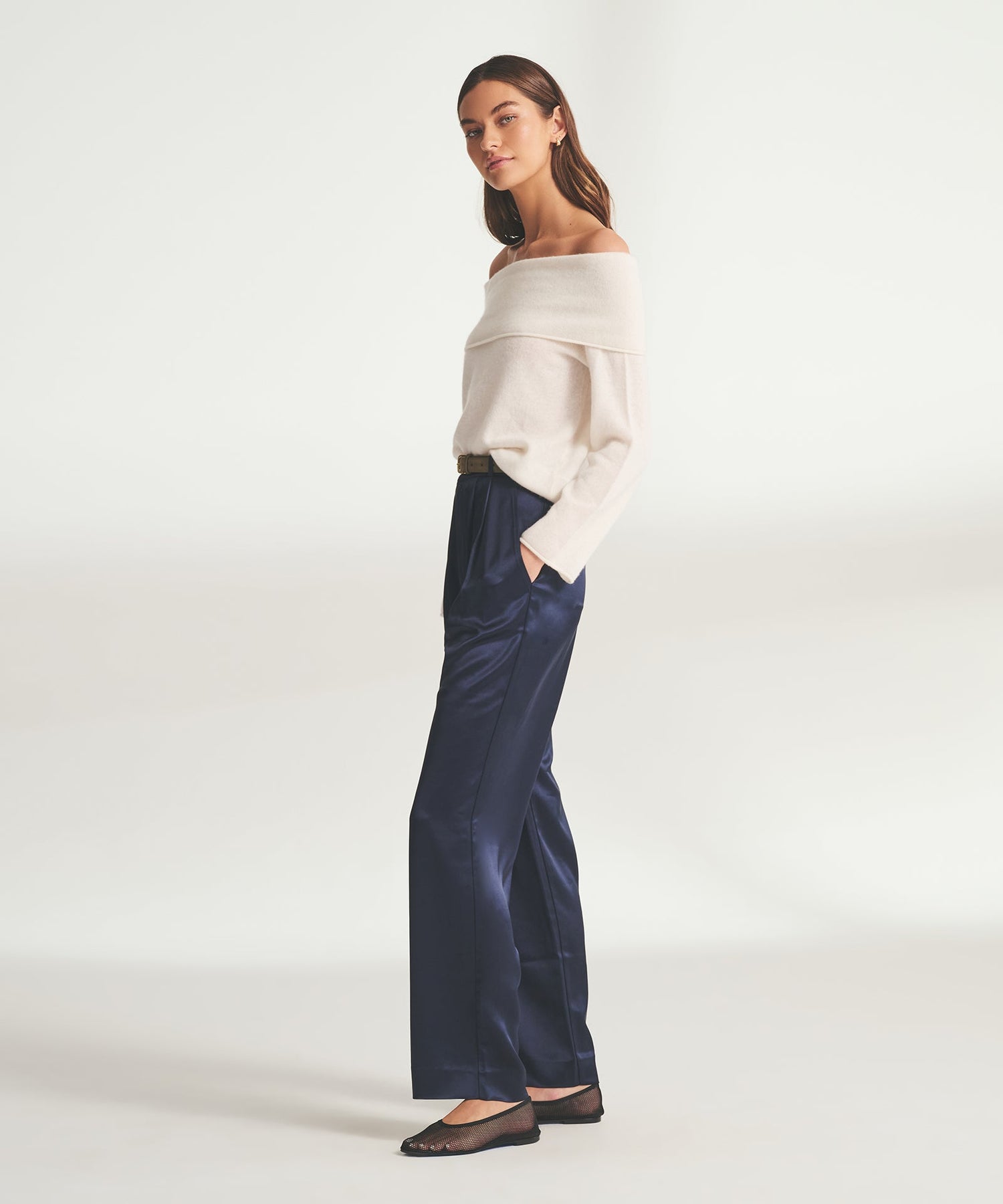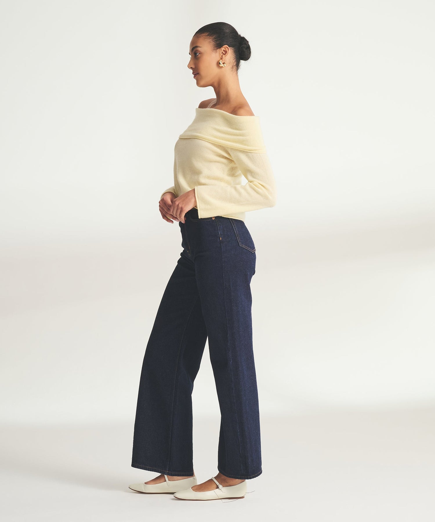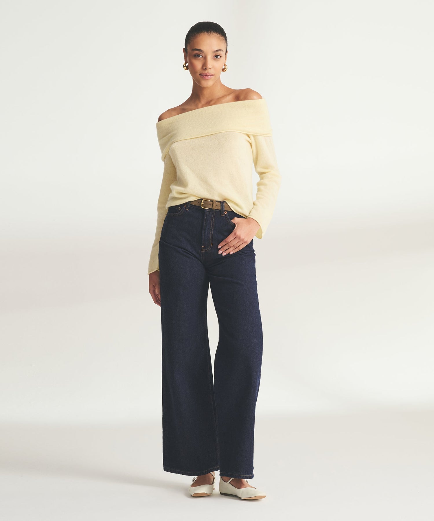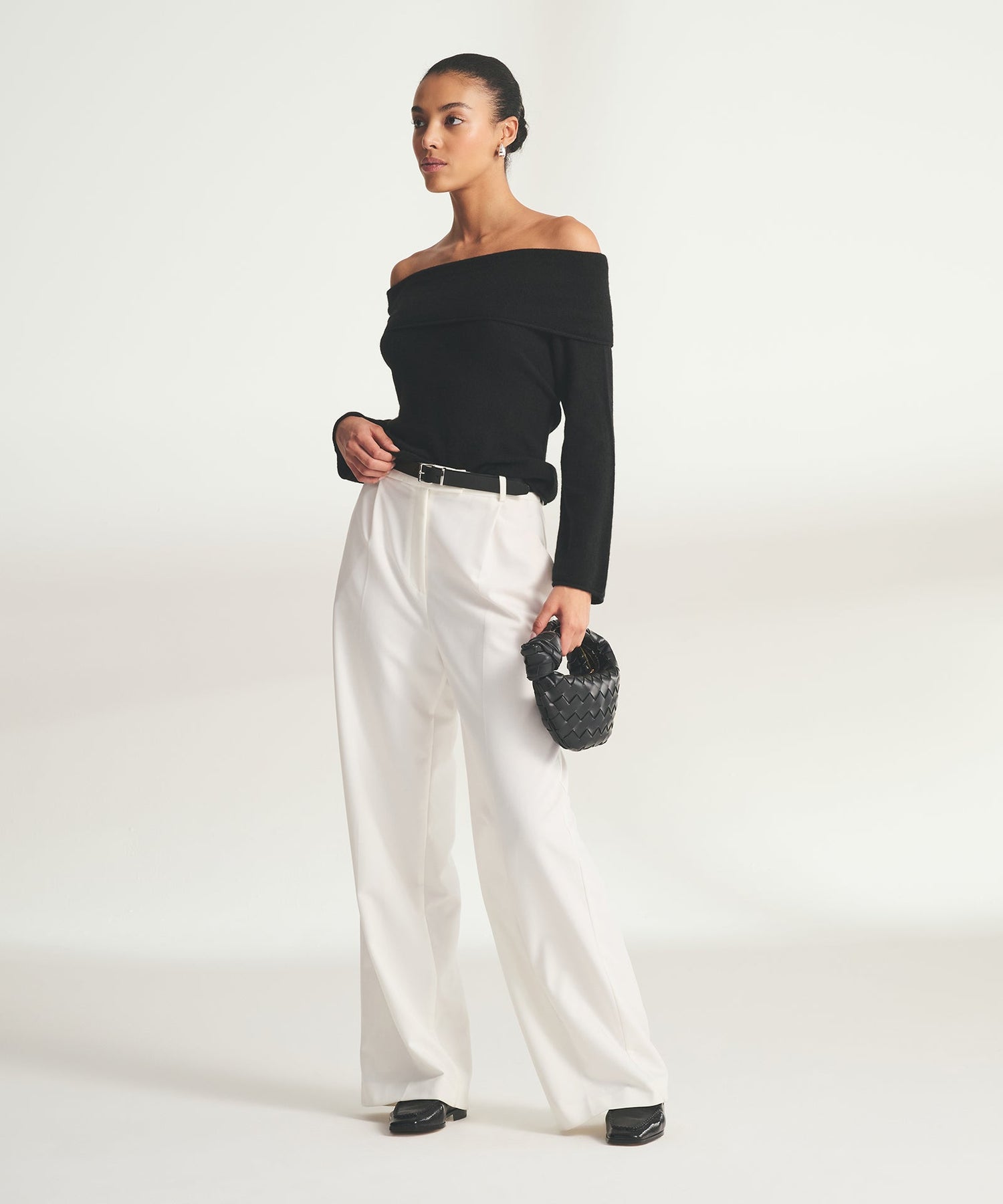 Giving the bold shoulder with an elegant fold-over neckline and oversized silhouette. Our lightweight yarn ensures airy softness and perfect drape, while the versatile fit adapts to your styling mood.