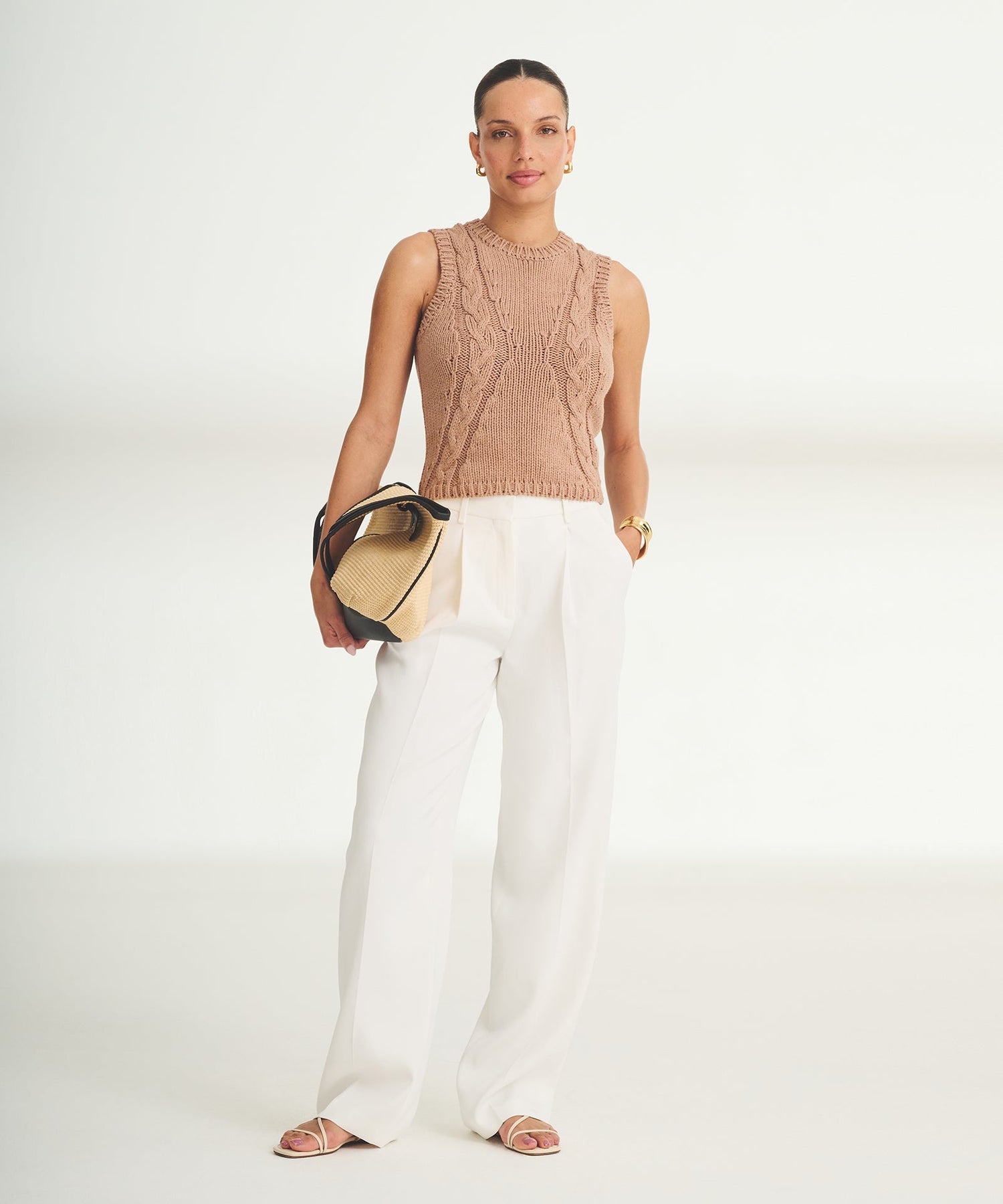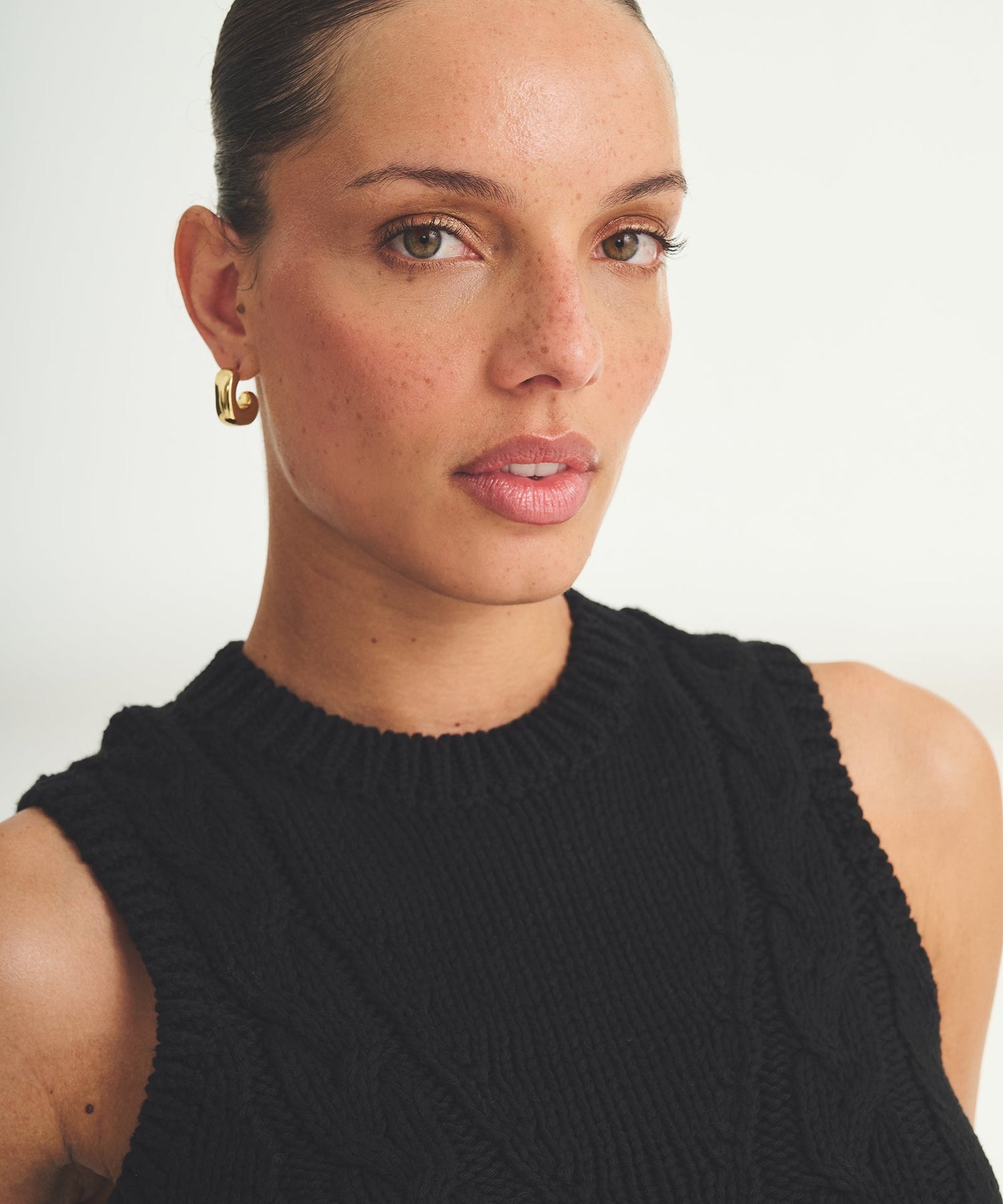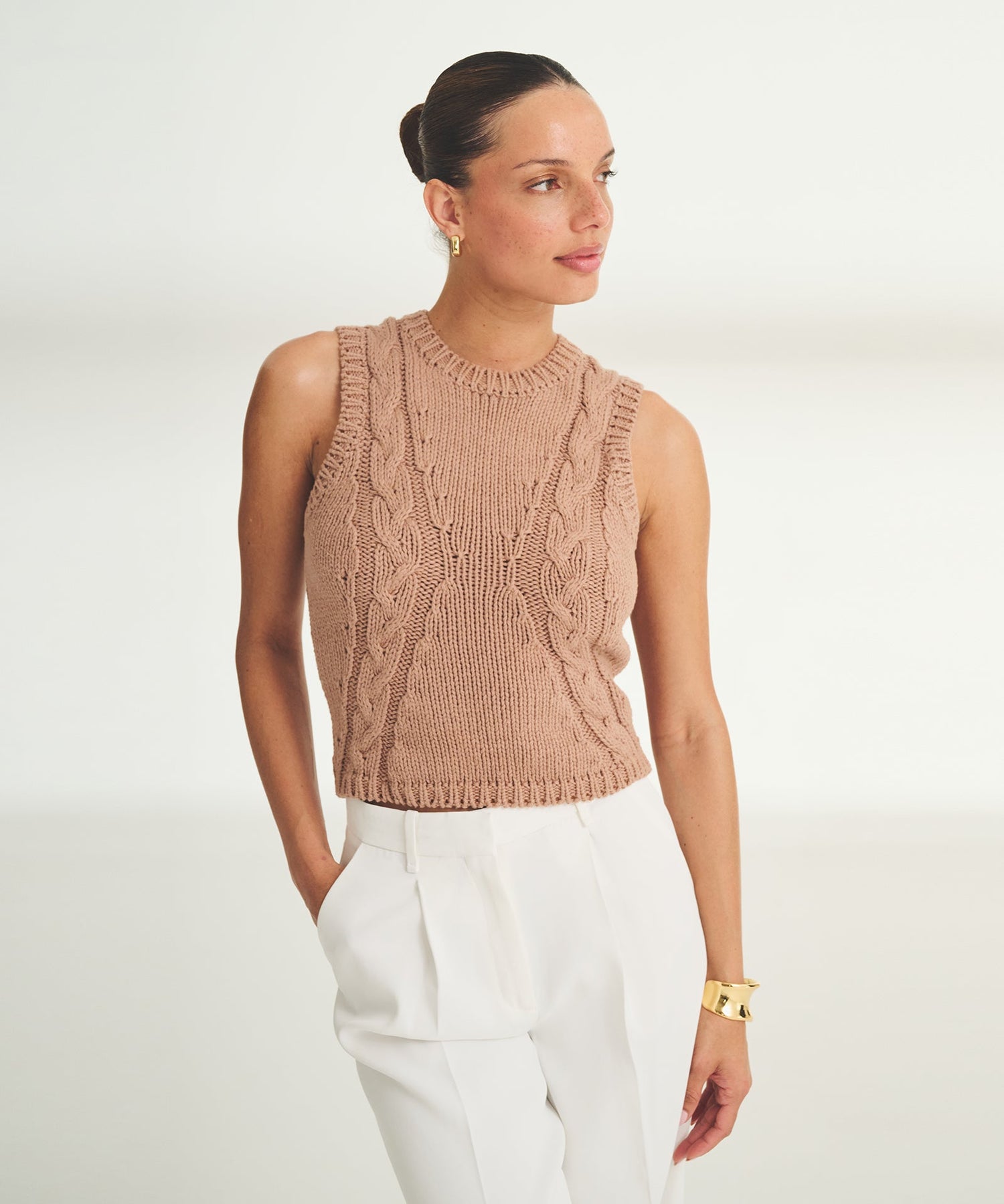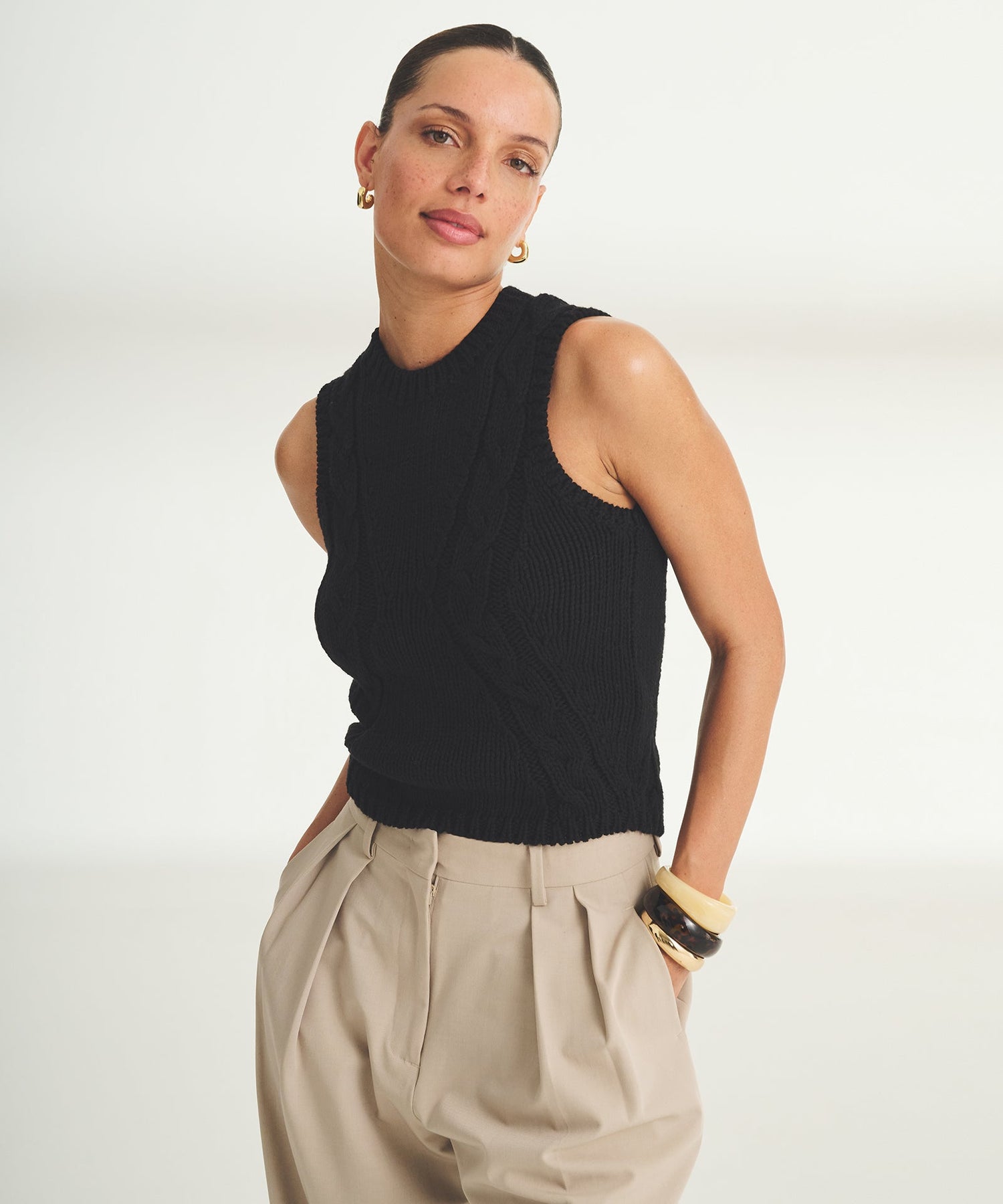Timeless texture with a modern edge. The Novelty Cotton Racer Tank is a slim-fit knit made from 100% organic cotton, featuring intricate cables and clean racer styling. Soft, sculpted, and made to stand on its own.