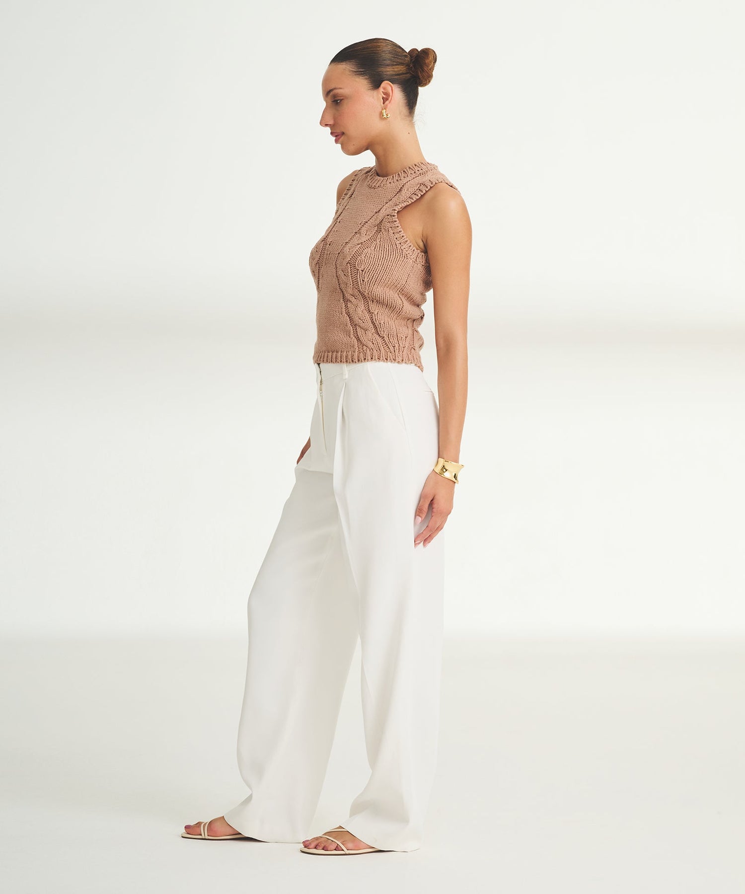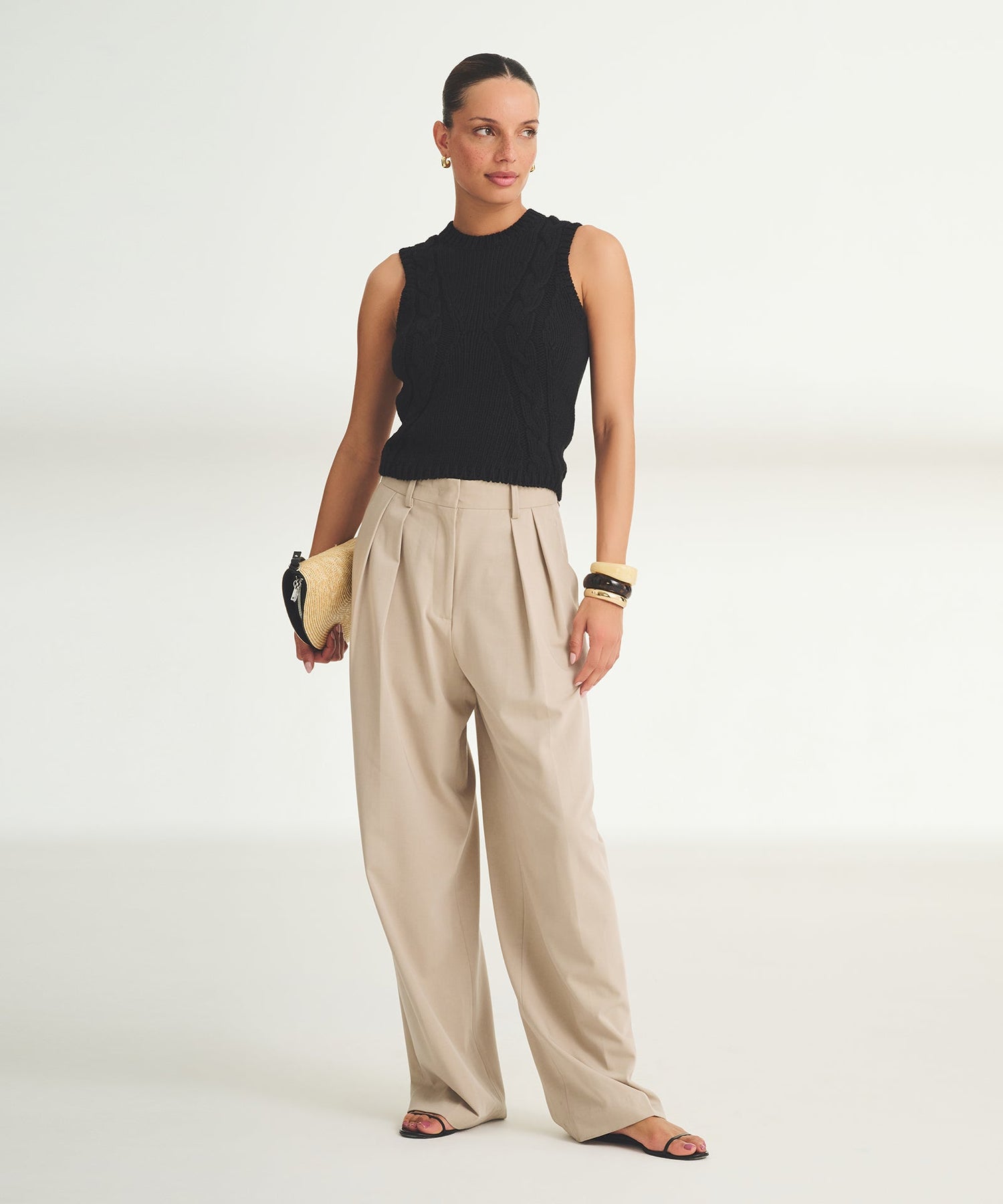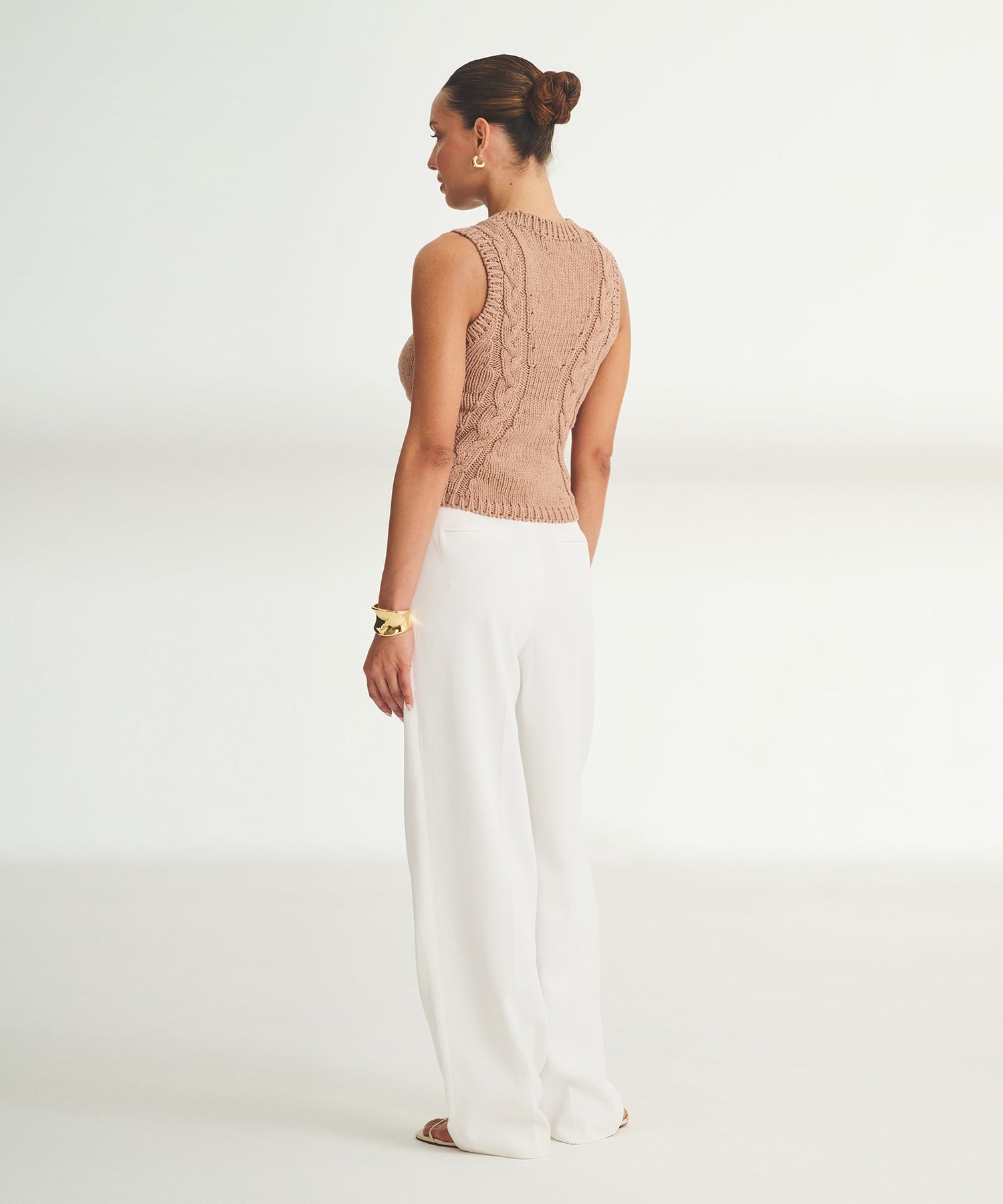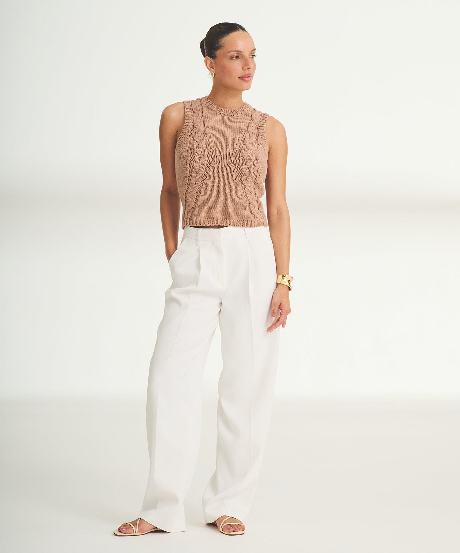Timeless texture with a modern edge. The Novelty Cotton Racer Tank is a slim-fit knit made from 100% organic cotton, featuring intricate cables and clean racer styling. Soft, sculpted, and made to stand on its own.
